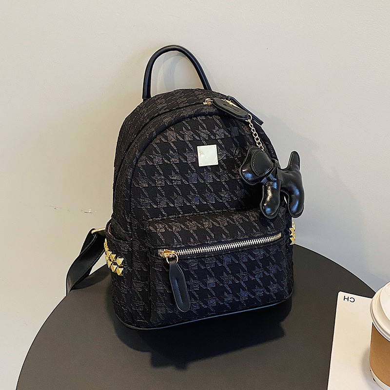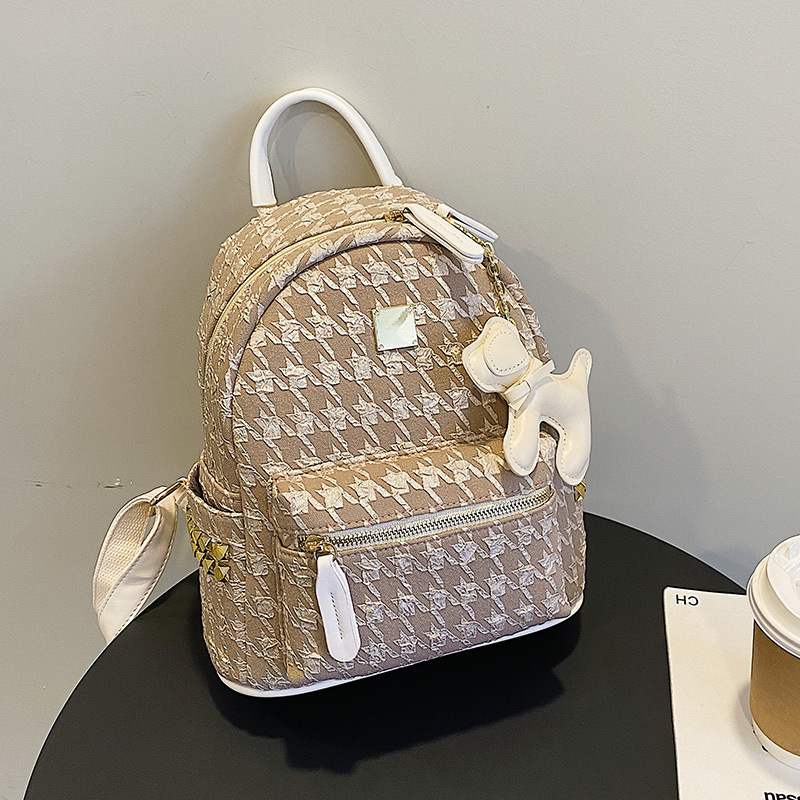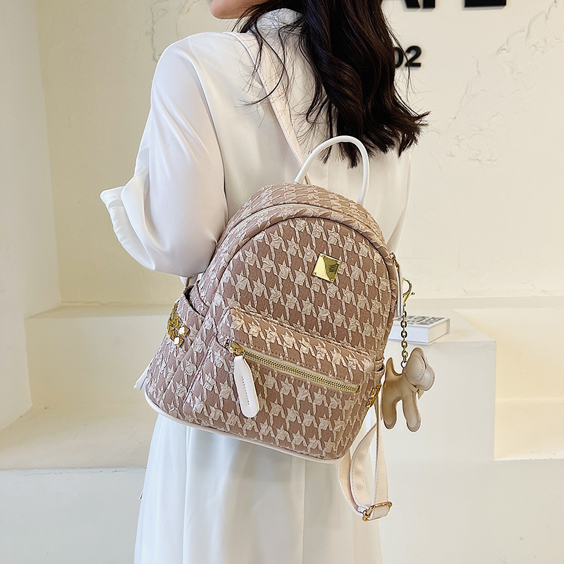 컬러블록 물떼새 격자무늬 여성용 백팩, 인스타그램 신상 패션, 독특한 백팩, 귀여운 장식, 출퇴근용 백팩