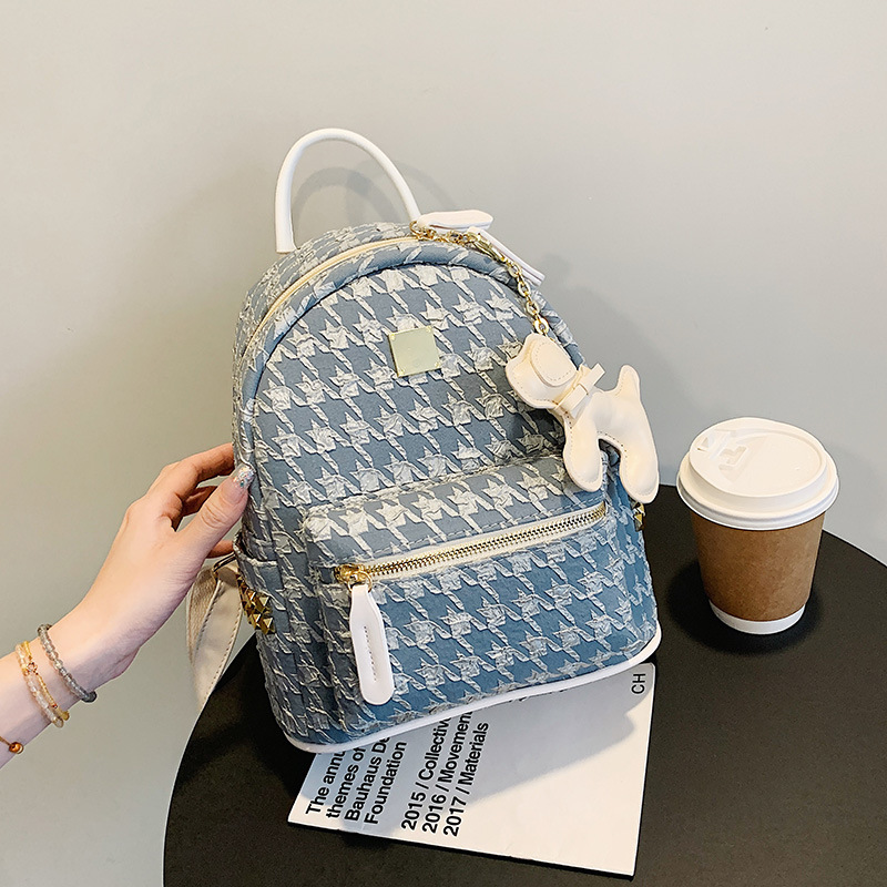 컬러블록 물떼새 격자무늬 여성용 백팩, 인스타그램 신상 패션, 독특한 백팩, 귀여운 장식, 출퇴근용 백팩스토어 가기