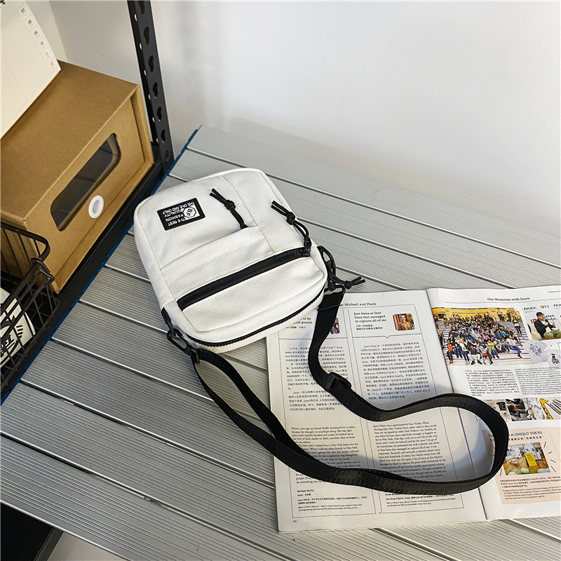 스트리트 패션 커플 작은 사첼 여성의 한국 스타일 패션 캐주얼 캔버스 가방 남자의 거리 휴대 전화 숄더백