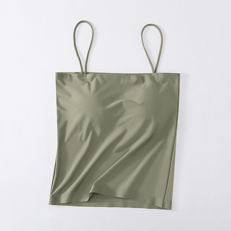 아이스 실크 캐미솔 여성용 이너웨어 가슴 패드 아우터 얇은 숄더 스트랩베이스 숄더 모여 원활한 아름다운 백 랩스토어 가기