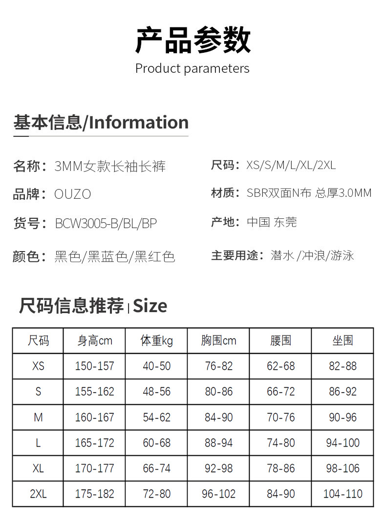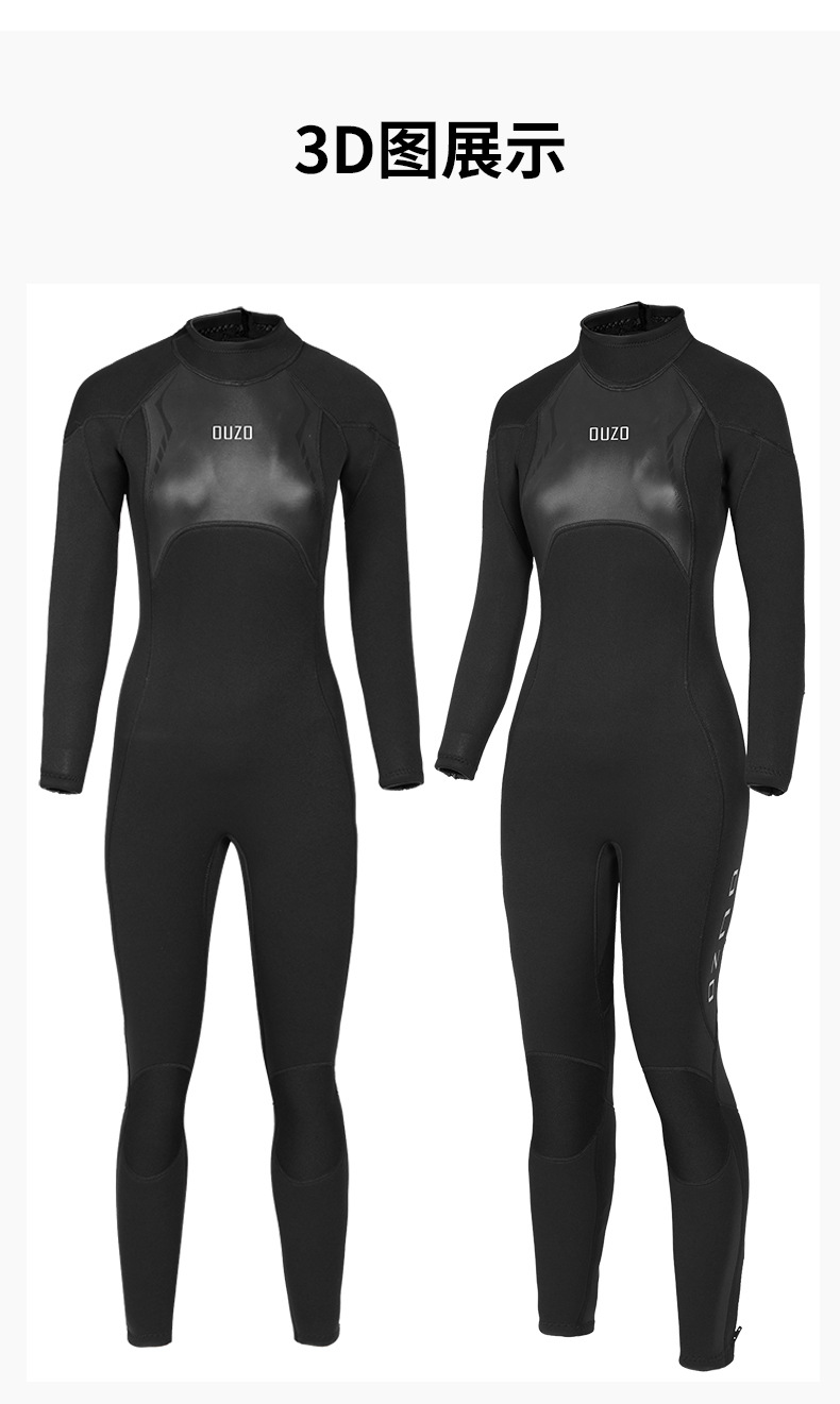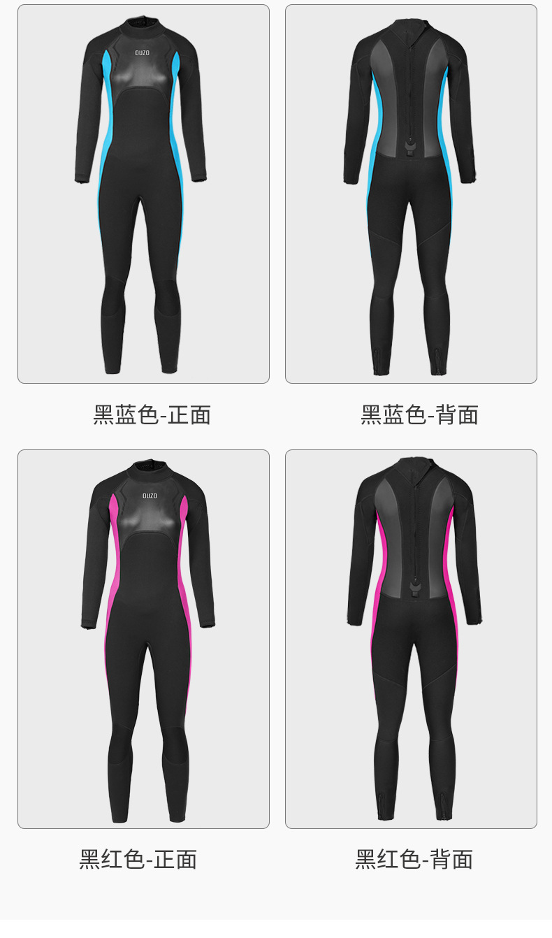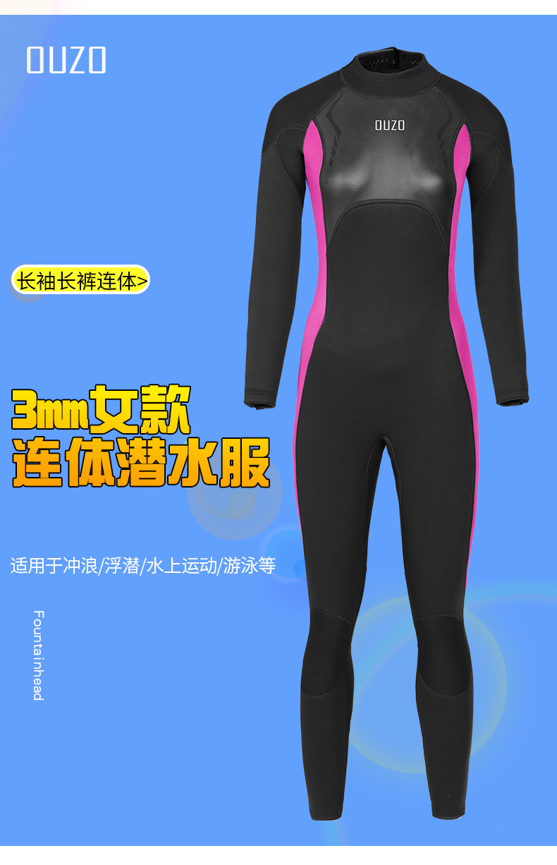 OUZO 새로운 3mm 다이빙 세트 여성용 원피스 패딩 따뜻한 다이빙 세트 서핑 세트 스노클링 해파리 세트 겨울 목욕 세트스토어 가기