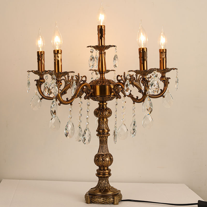 유럽식 복고풍 식당 테이블 램프 조명 럭셔리 거실 수직 아연 합금 테이블 램프 창조적 인 연구 침실 LED 침대 옆 램프