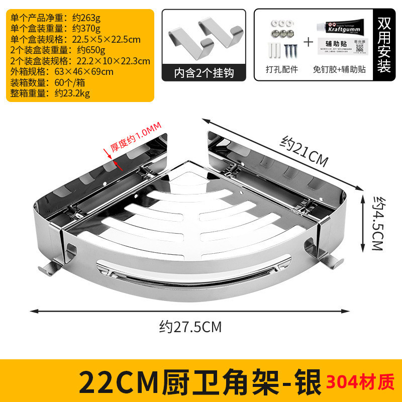 304 스테인레스 스틸 욕실 삼각대 랙 천공되지 않은 화장실 코너 선반 벽걸이 블랙 스토리지 랙스토어 가기