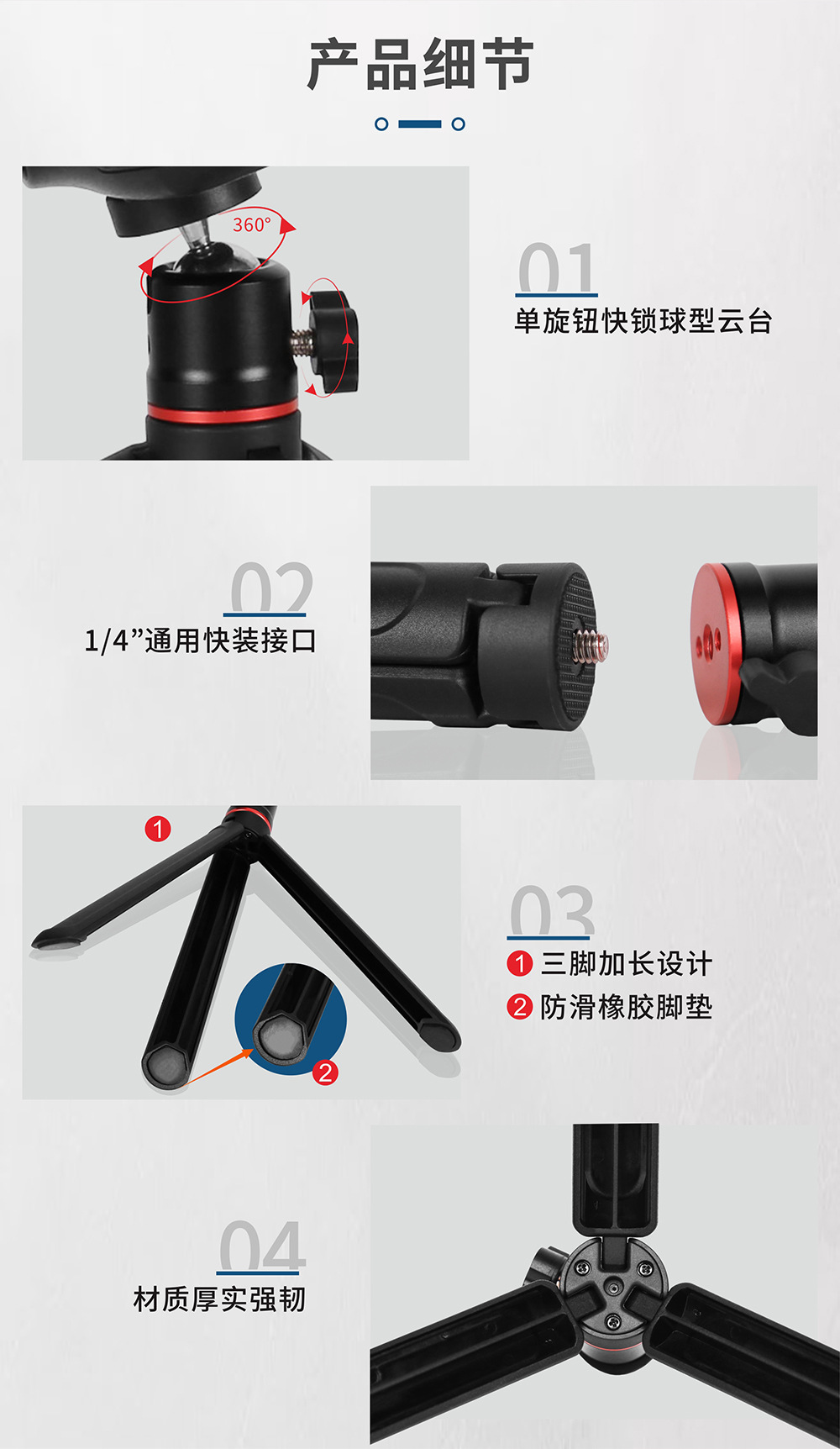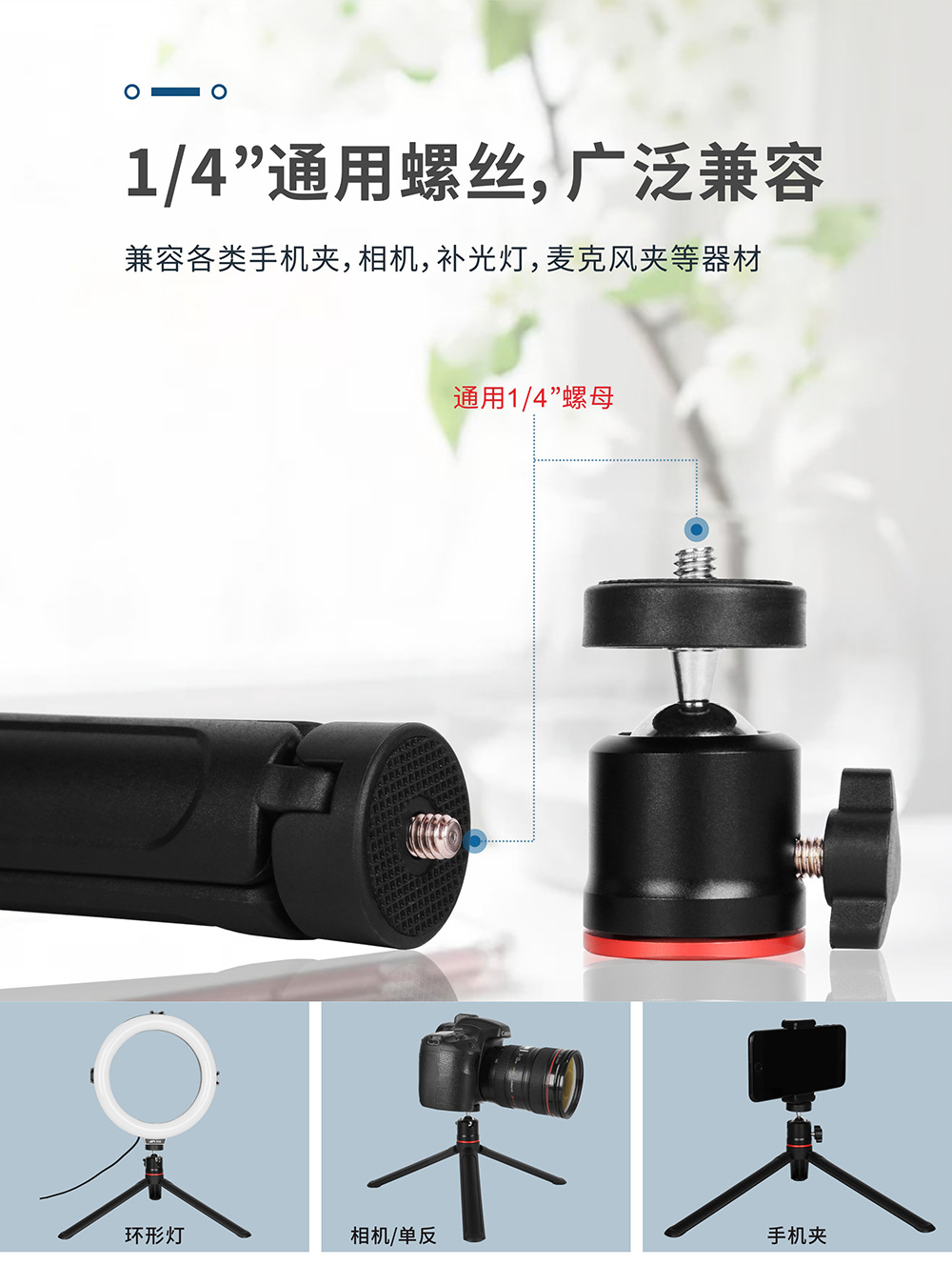 진제이티36 데스크탑 미니 삼각대 휴대폰 메이크업 조명 프로젝터 삼각대 알루미늄 합금 DSLR
