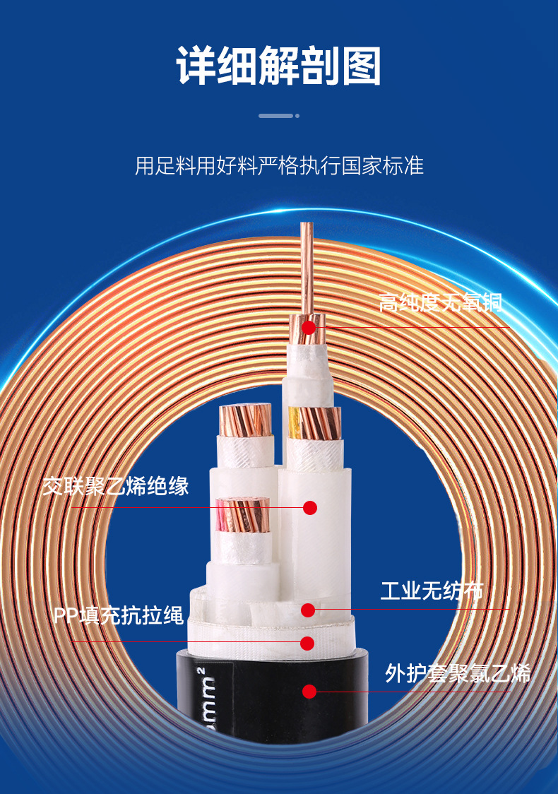 제조업체 Zhida Yunqiang 국가 표준 구리 코어 케이블 yjv 전원 케이블 3 4 5 코어 1.5-300 사각형 케이블스토어 가기