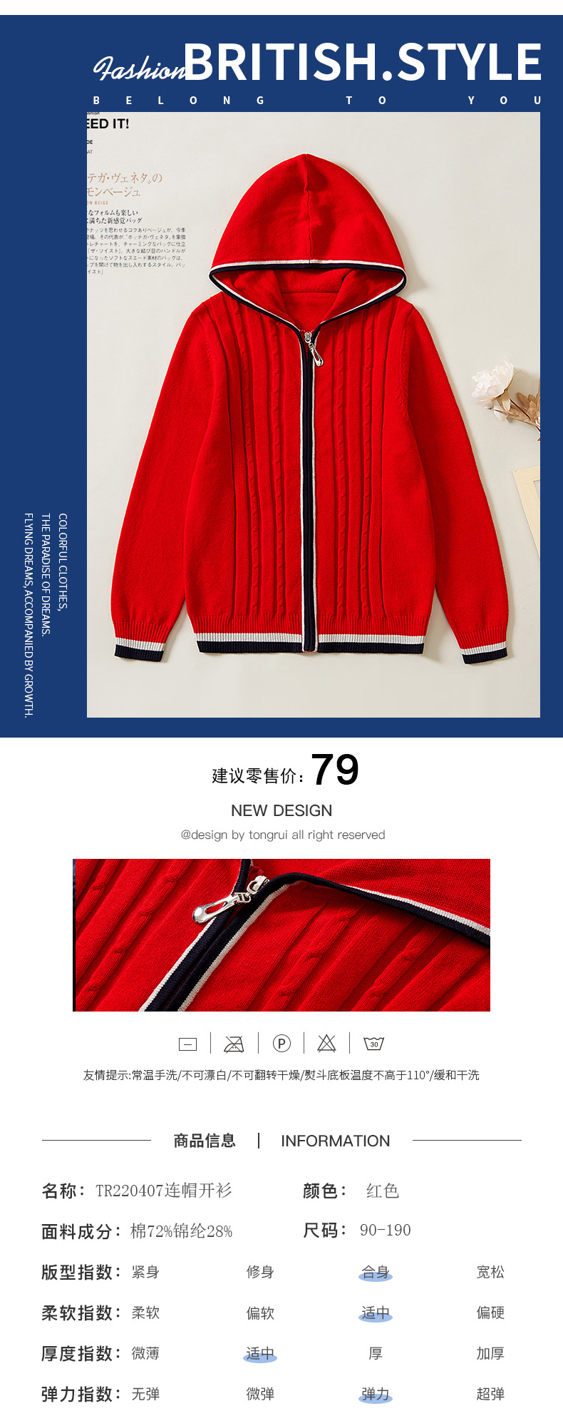 중대형 아동용 맞춤형 한국 아동복 스웨터 가디건, 트렌디한 컬리지 스타일 지퍼 가디건, 학생용 니트 재킷