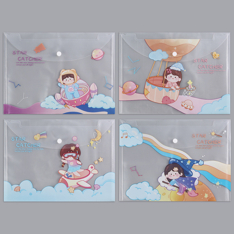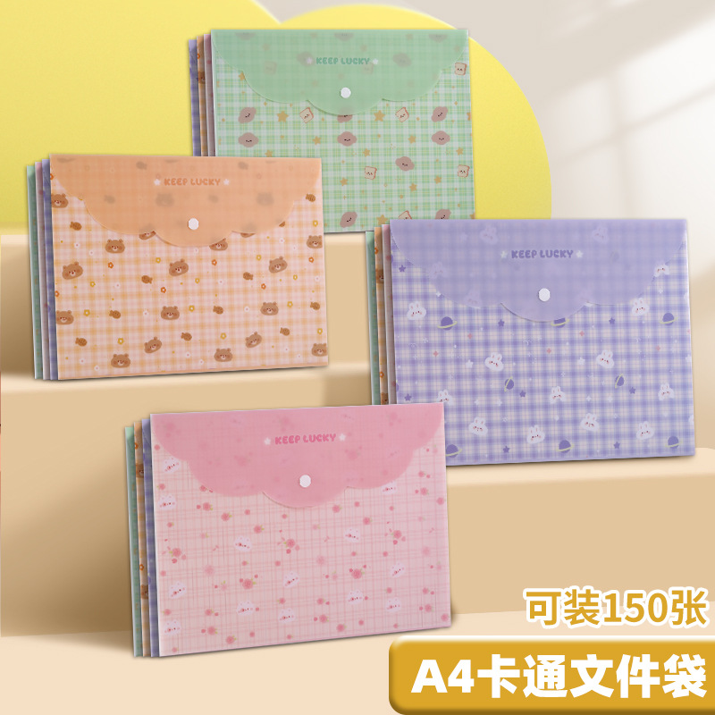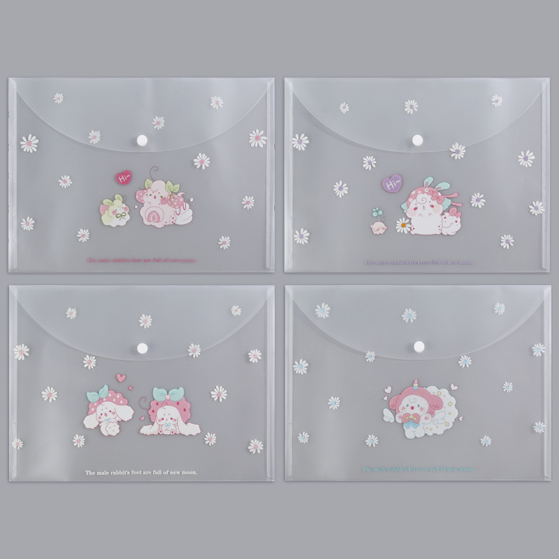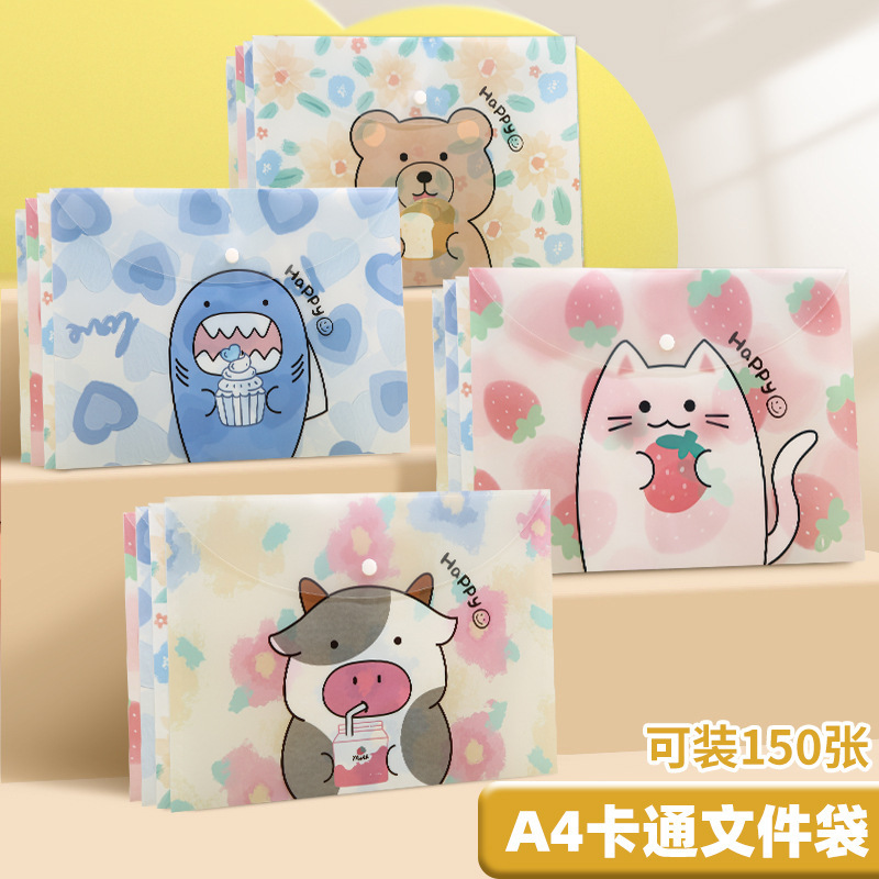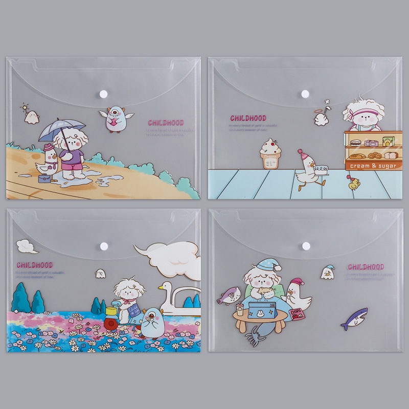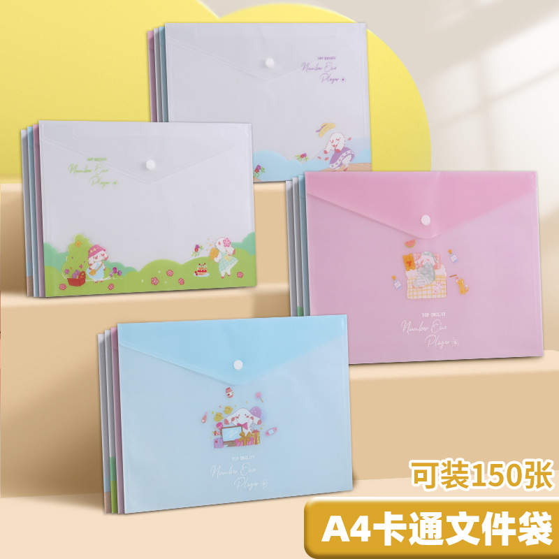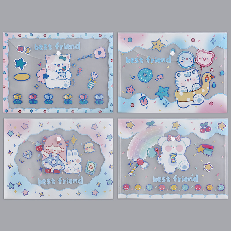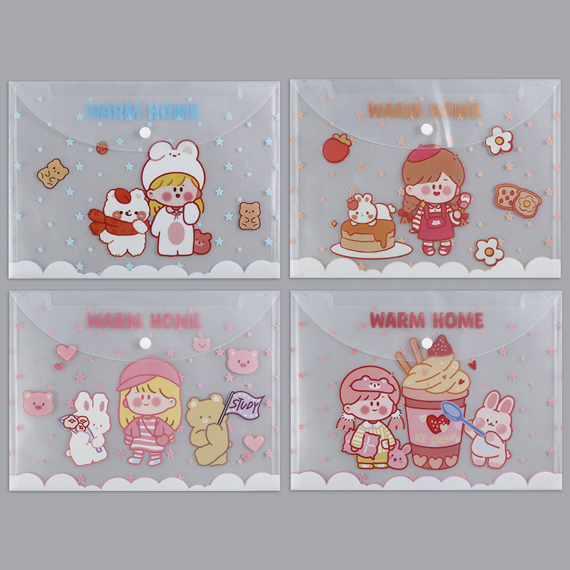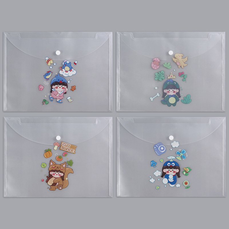 A4 파일 가방 투명 방수 크로스 보더 스냅 보관 가방 귀여운 만화 학생 파일 티켓 시험지 보관 가방스토어 가기