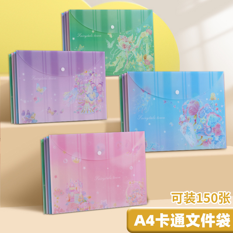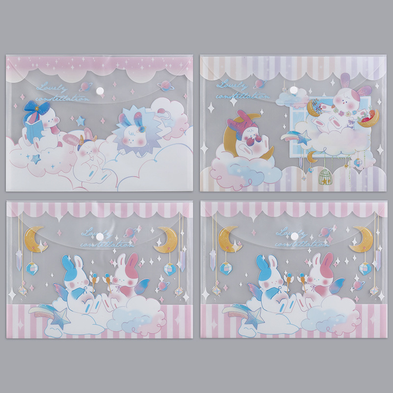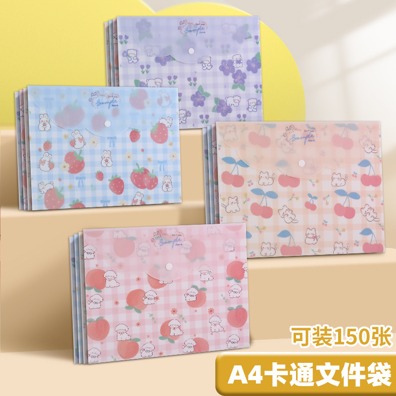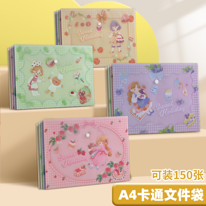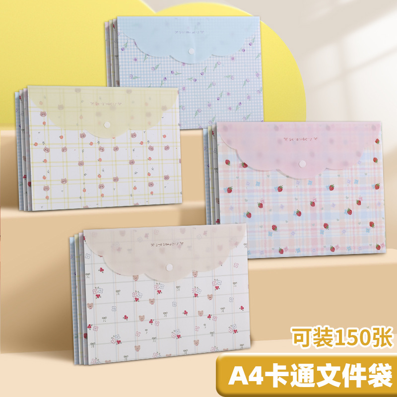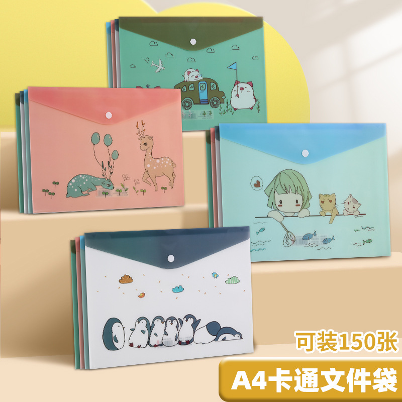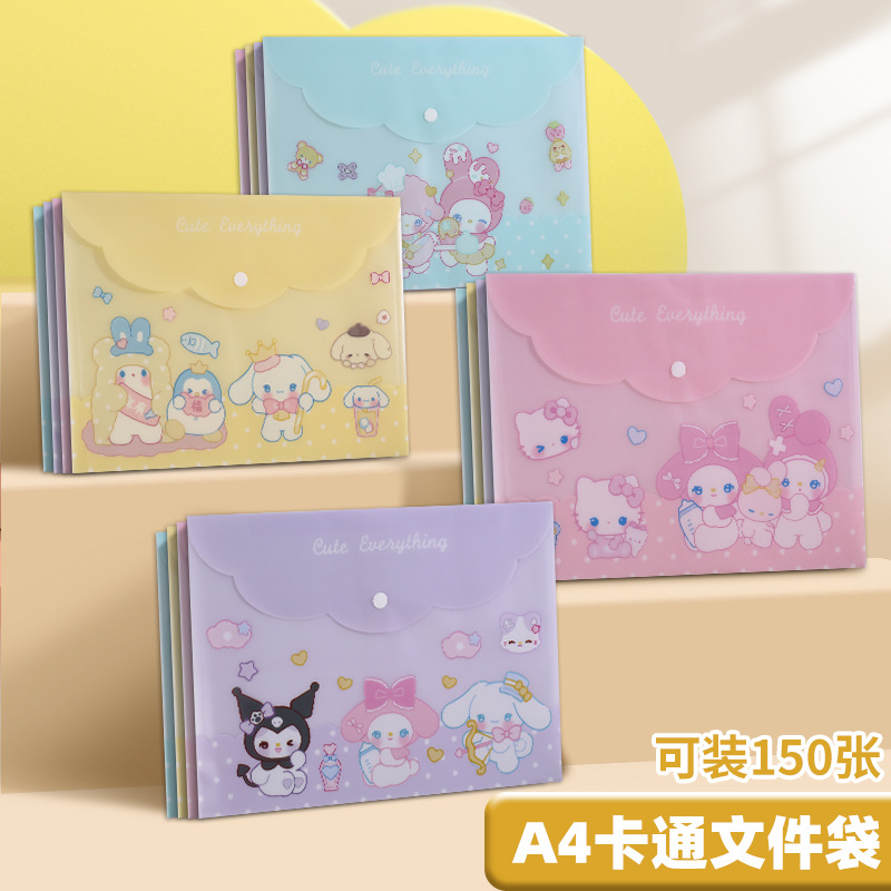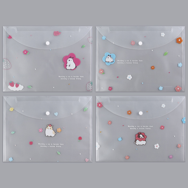 A4 파일 가방 투명 방수 크로스 보더 스냅 보관 가방 귀여운 만화 학생 파일 티켓 시험지 보관 가방스토어 가기