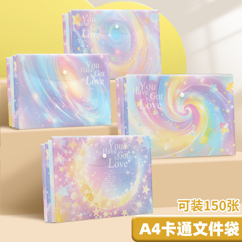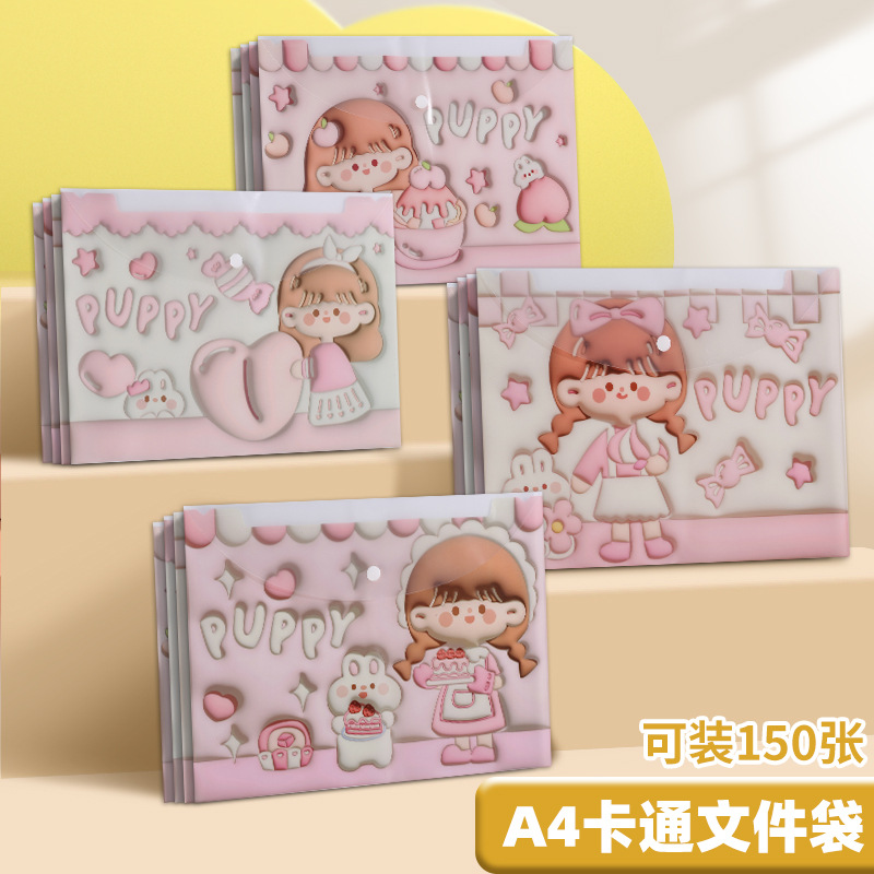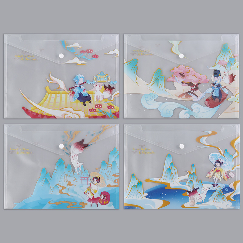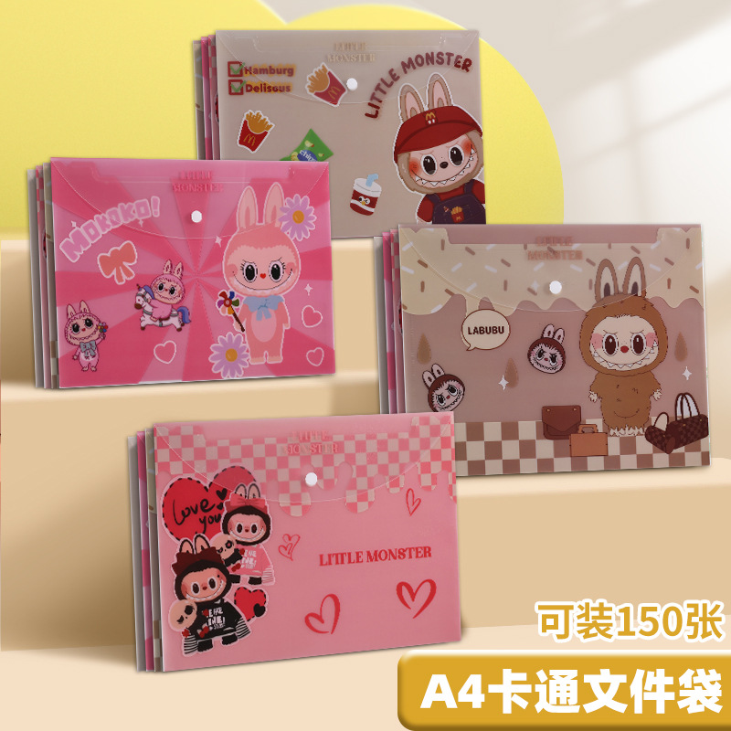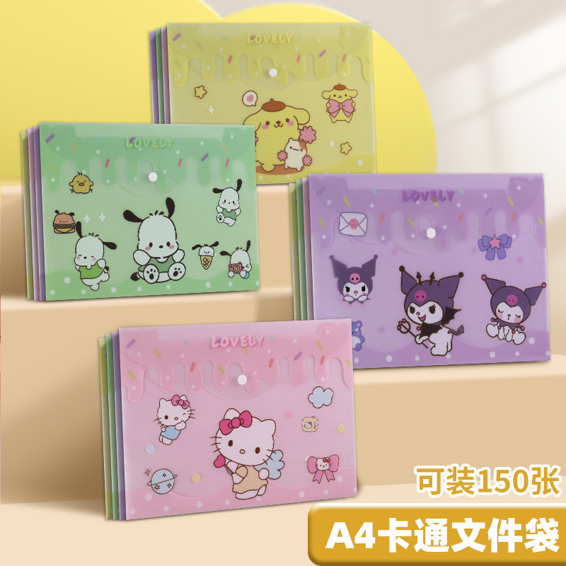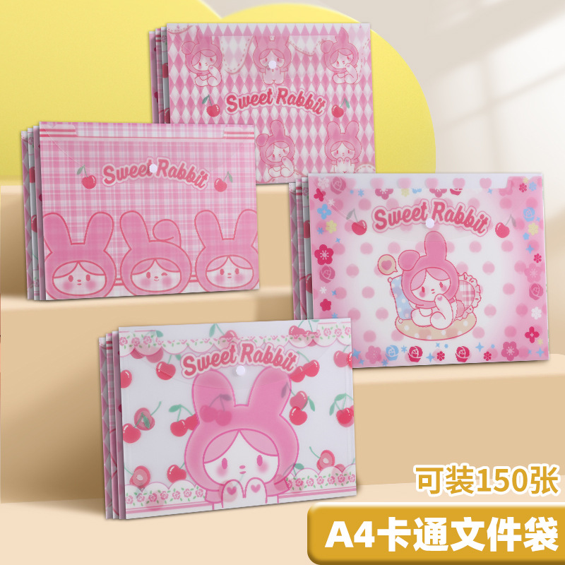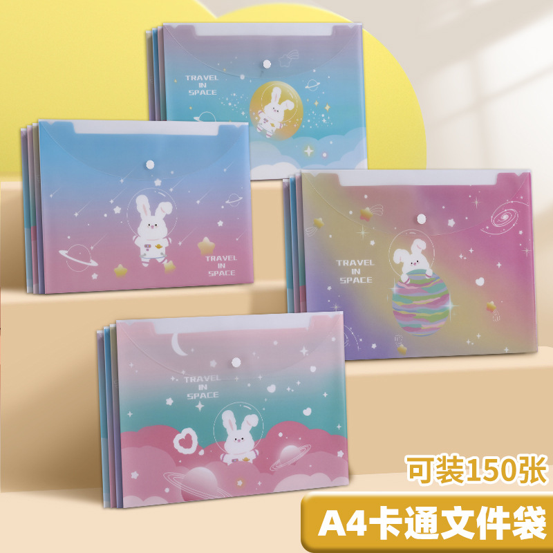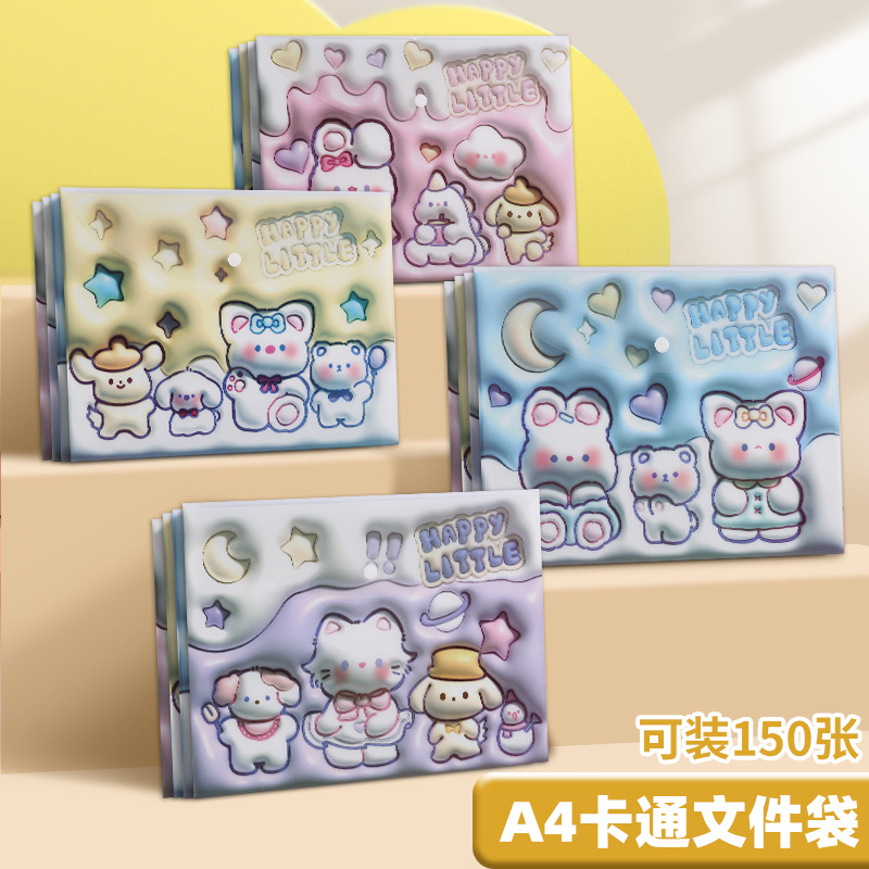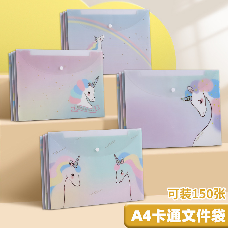A4 파일 가방 투명 방수 크로스 보더 스냅 보관 가방 귀여운 만화 학생 파일 티켓 시험지 보관 가방스토어 가기