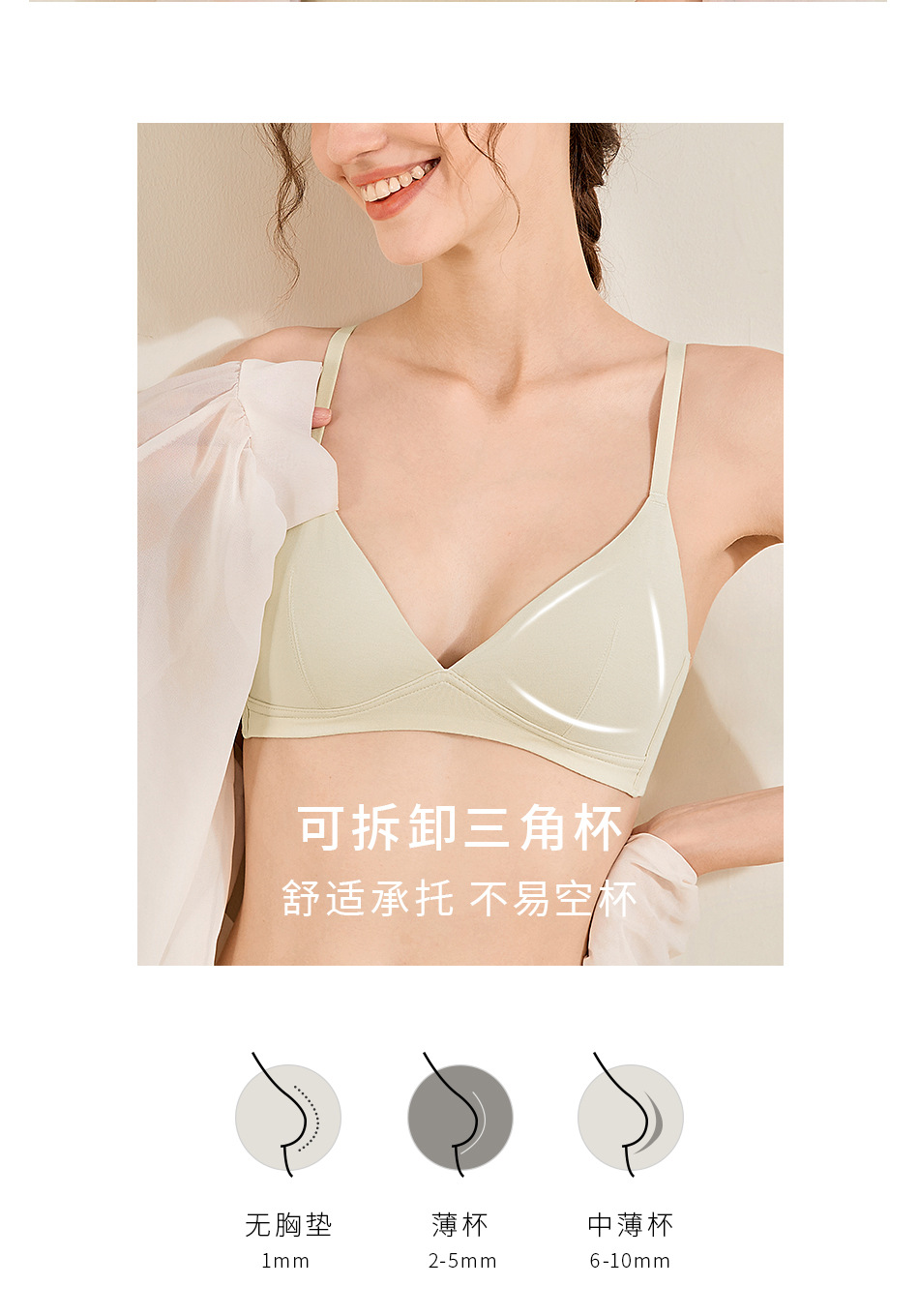 모달 프렌치 걸스 심리스 브라 트라이앵글 컵 통기성 와이어 프리 속옷 여성용 작은 가슴 푸시 업 브라