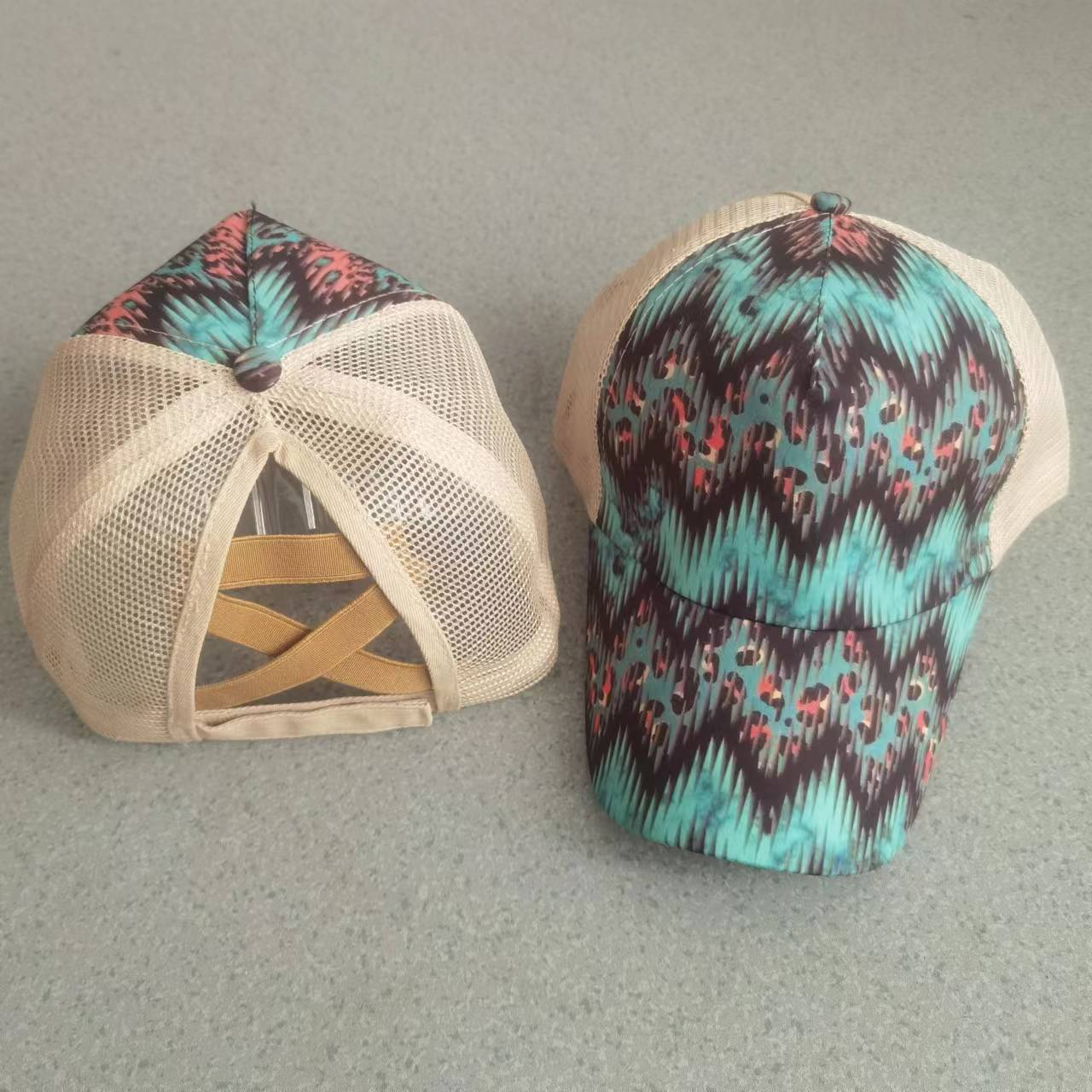 대외 무역 핫 모자 인쇄 오픈 크로스 포니 테일 캡 컬러 낙서 태양 보호 여성을위한 피크 캡 야구 모자