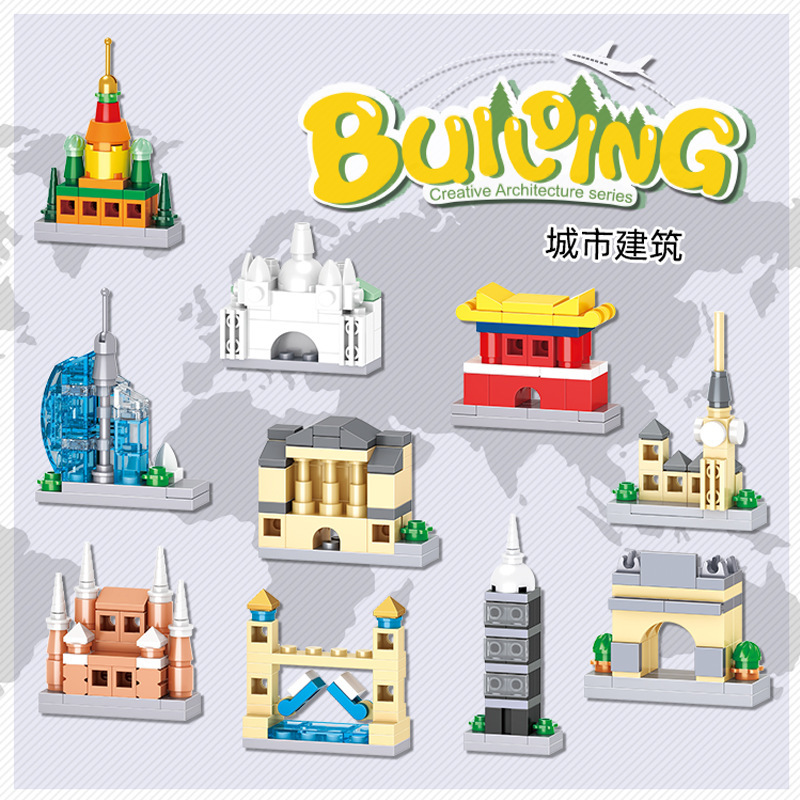 Heng Sanhe 빌딩 블록 6035 미니 작은 입자 도시 스트리트 뷰 소년과 소녀 어린이 조립 장난감 기관 선물