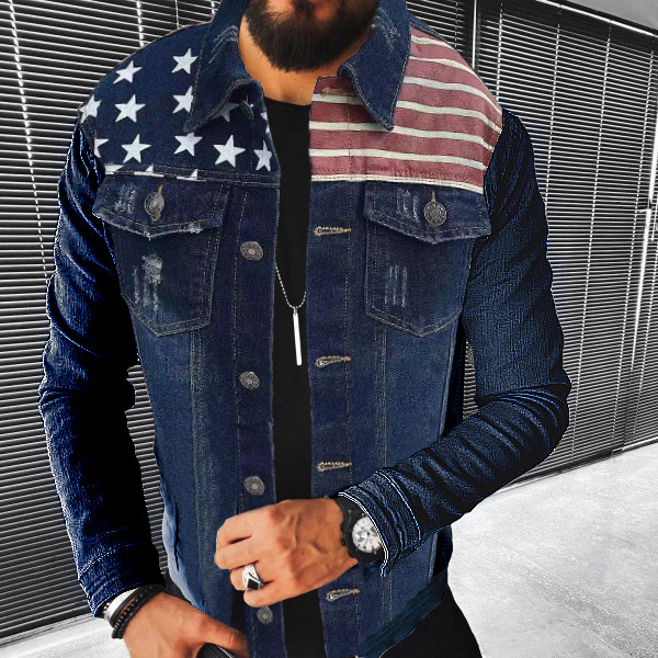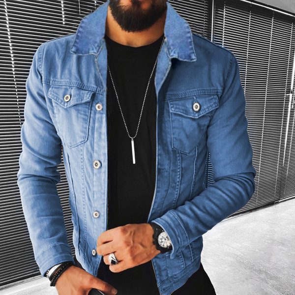 2517 * 대외 무역 남자의 유럽과 미국 남성 자켓 라펠 가을과 겨울 어두운 바람 데님 코트스토어 가기
