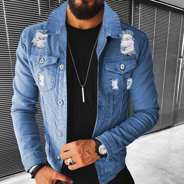 2517 * 대외 무역 남자의 유럽과 미국 남성 자켓 라펠 가을과 겨울 어두운 바람 데님 코트