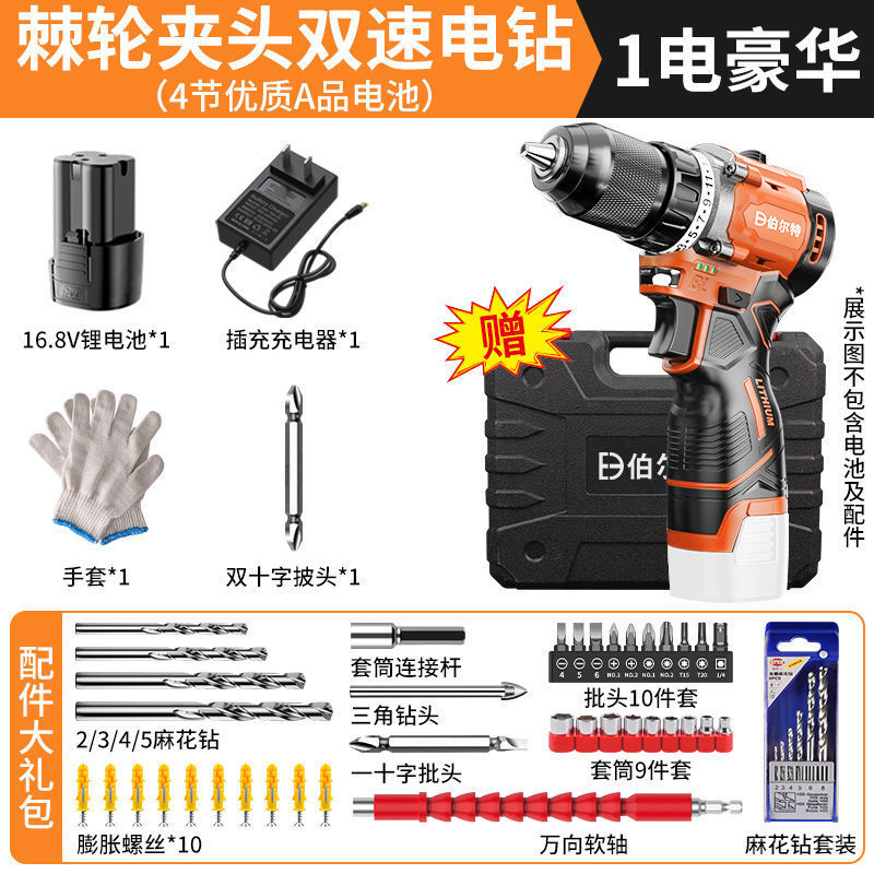 • 16.8v 더블 스피드 [미세 스틸 래칫 척] 1 전기 1 충전 + 고급 선물 가방 + 플라스틱 상자