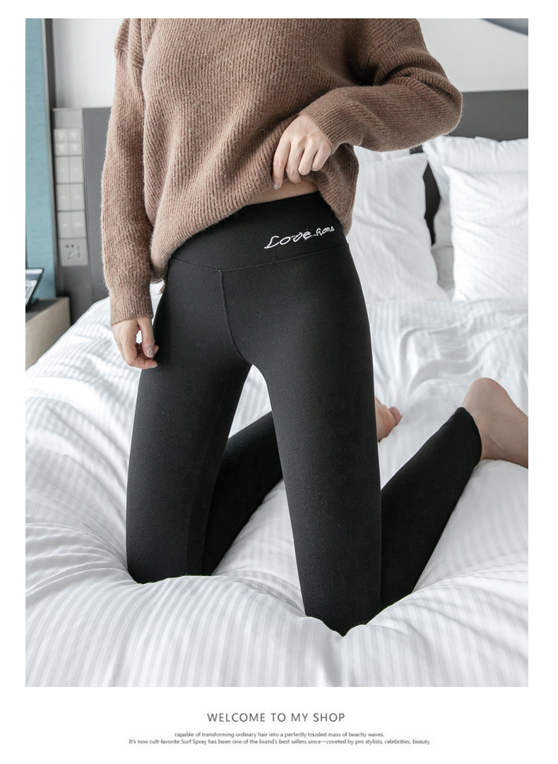 하이 웨이스트 따뜻한 바지 가을 바지 여성용 벨벳 양면 벨벳 가을과 겨울 실 바지 외부 착용 원활한 하이 웨이스트 레깅스 여성용 하이