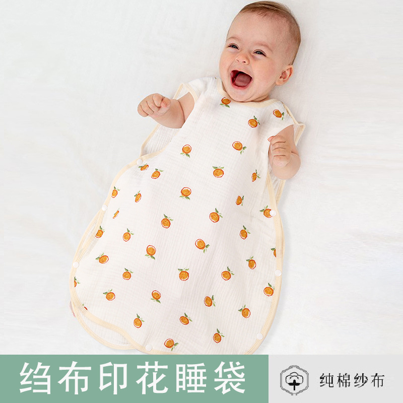 크레이프 아기 침낭 여름 얇은 아기 면 거즈 민소매 조끼 민소매 잠 잠자는 옷 어린이 킥 방지 이불스토어 가기