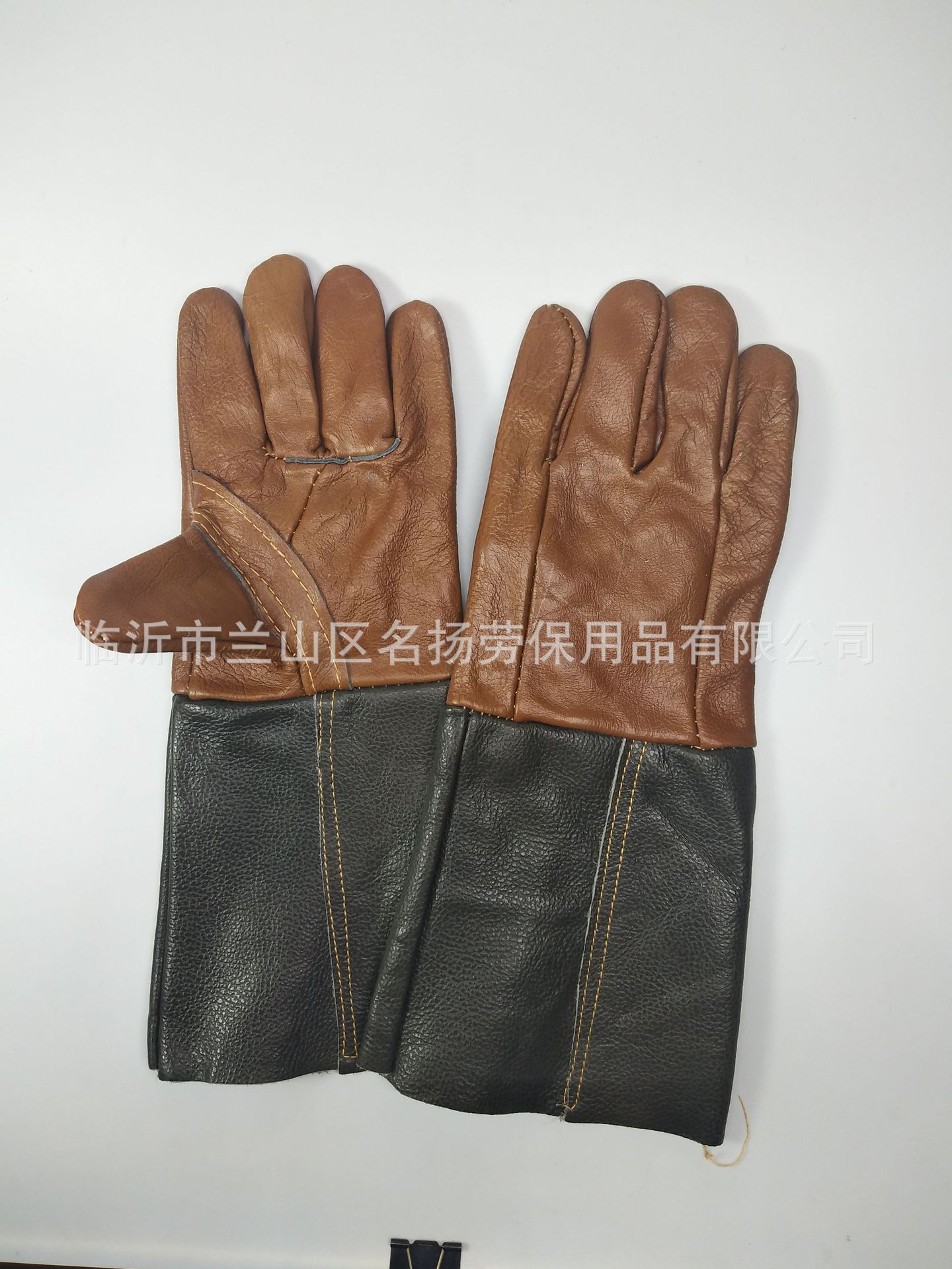공장 판매 긴 첫 번째 레이어 소 가죽 어두운 완전한 가죽 소매 용접 노동 보호 장갑 용접기 부드럽고 내구성스토어 가기