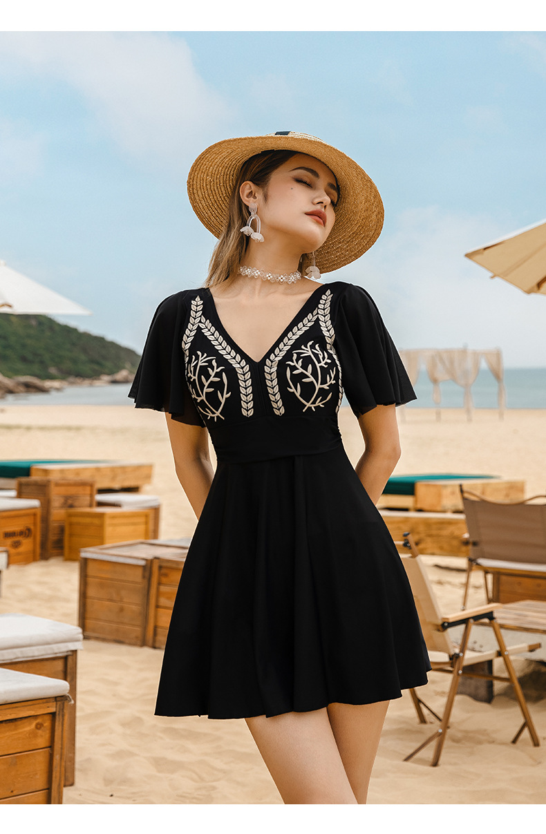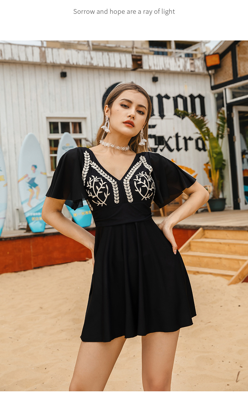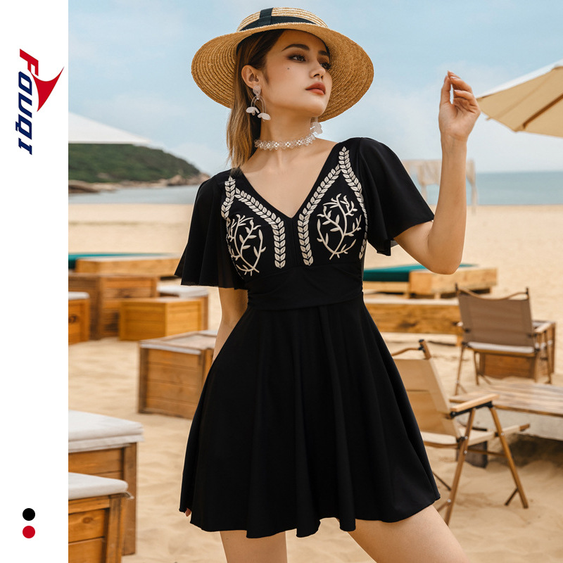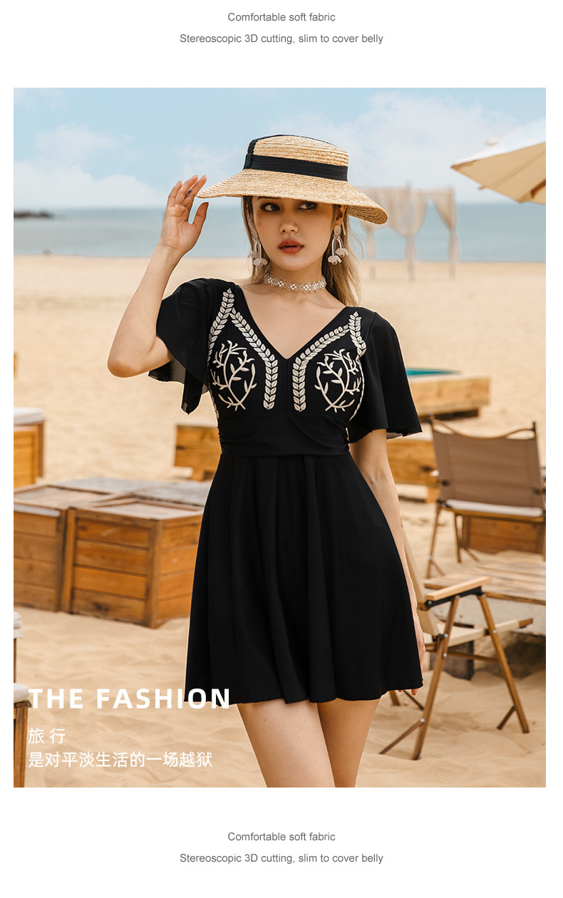여성용 플러스 사이즈 수영복 2023 프렌치 스타일 원피스 드레스, 보수적이고 날씬해 보이는 휴가용 비치 수영복, 원피스 배송, 스포츠 스타일스토어 가기