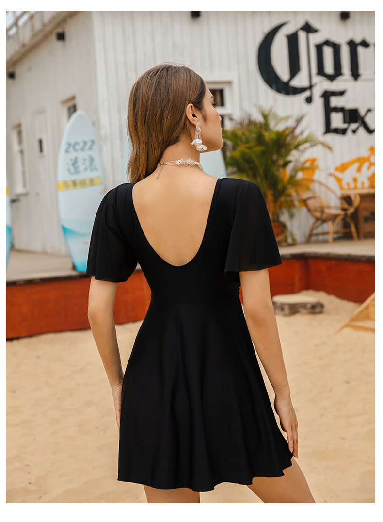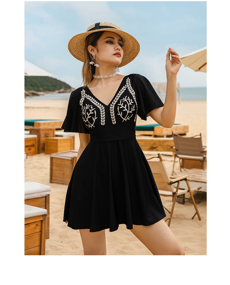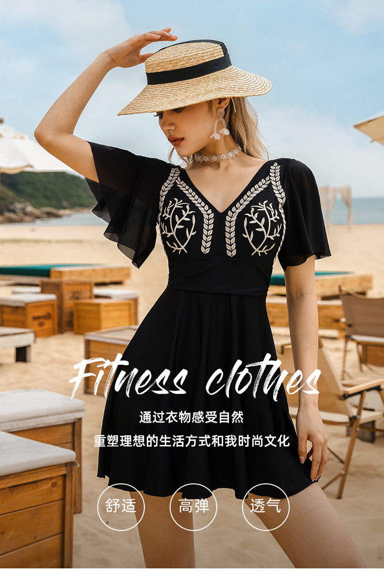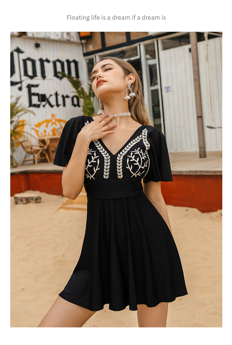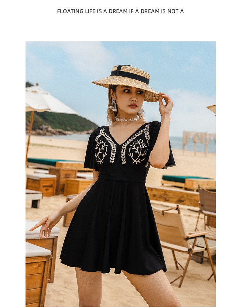 여성용 플러스 사이즈 수영복 2023 프렌치 스타일 원피스 드레스, 보수적이고 날씬해 보이는 휴가용 비치 수영복, 원피스 배송, 스포츠 스타일스토어 가기