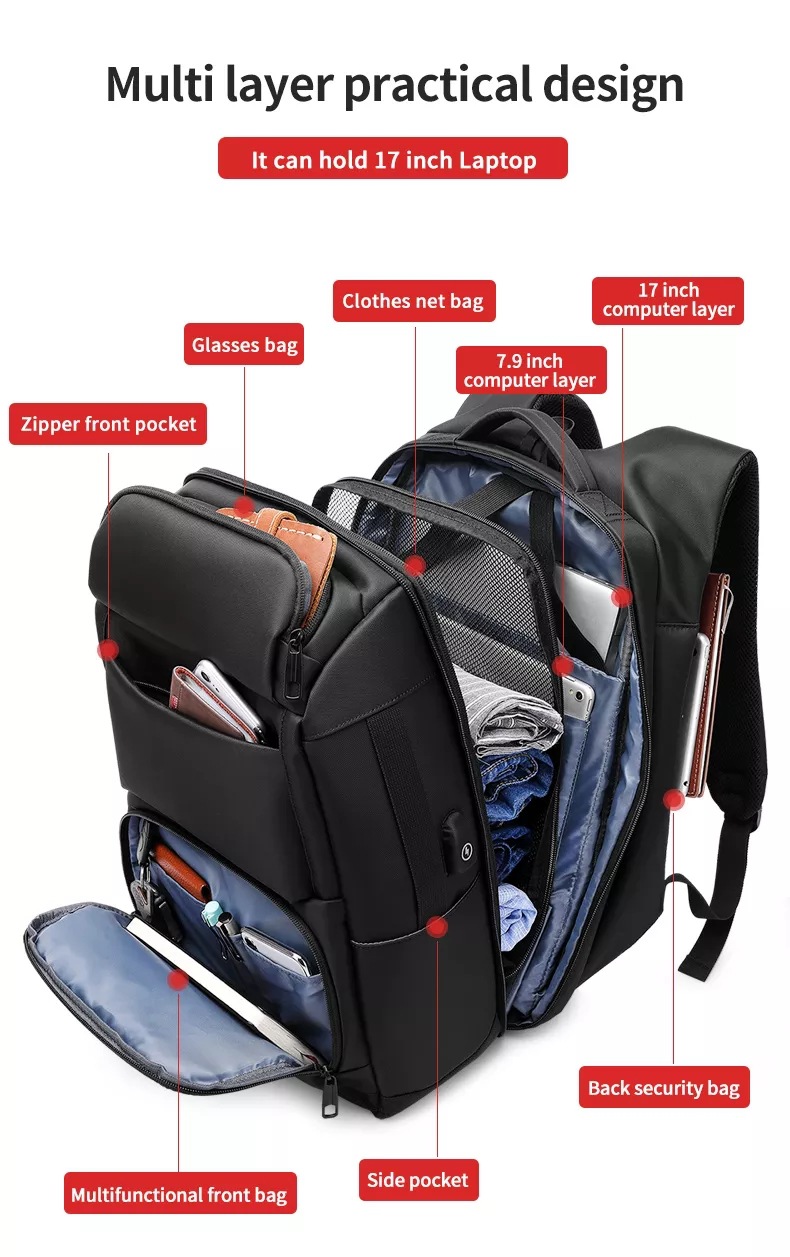 공장 배낭 남자 비즈니스 인쇄 가능한 로고 초대형 용량 여행 야외 다기능 편리한 컴퓨터 배낭스토어 가기