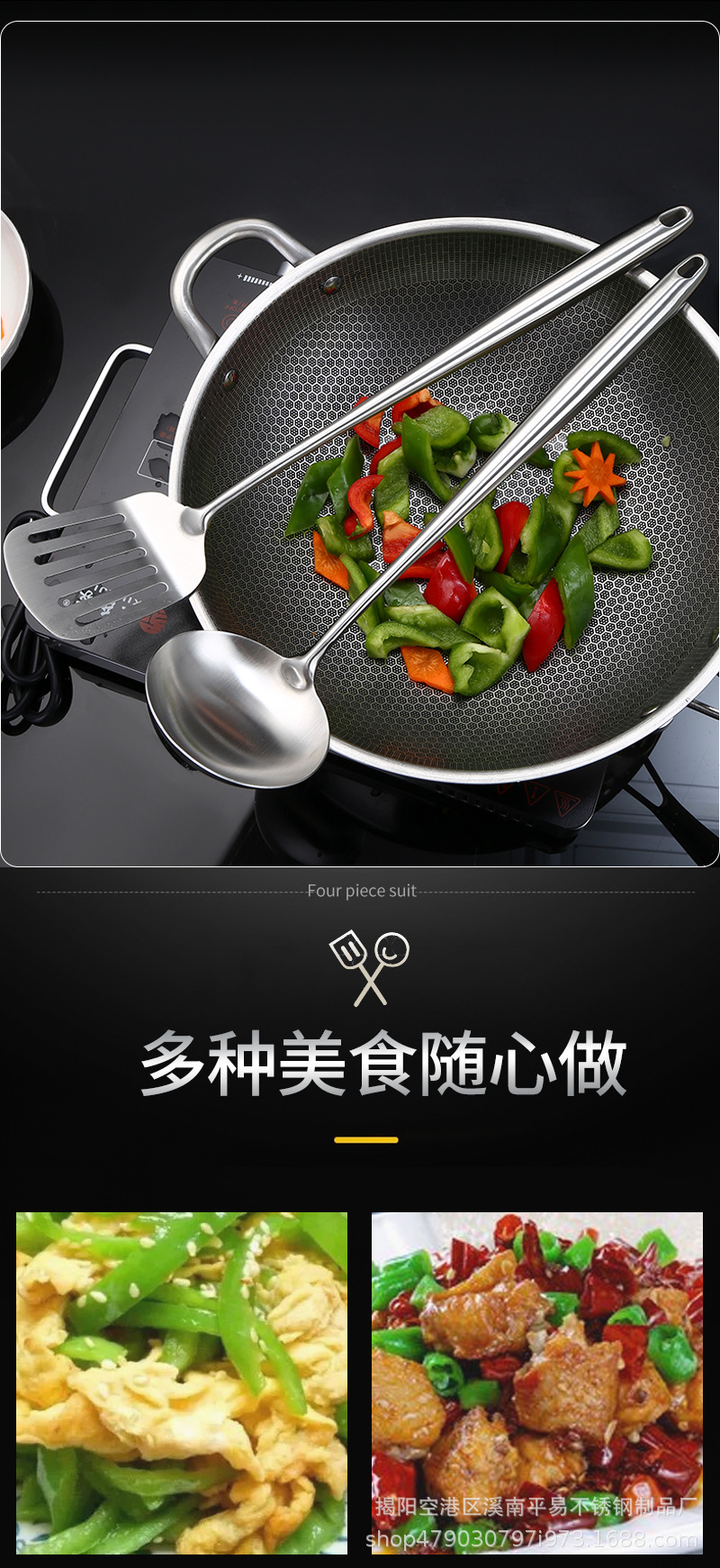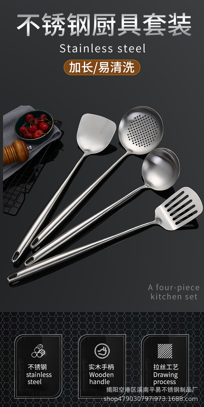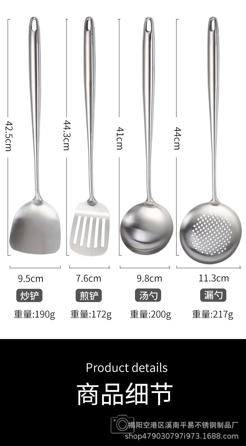 304 스테인레스 스틸 주걱 수프 스푼 소쿠리 확장 풀 스틸 핸들 볶음 주걱 통합 요리 주걱 세트스토어 가기