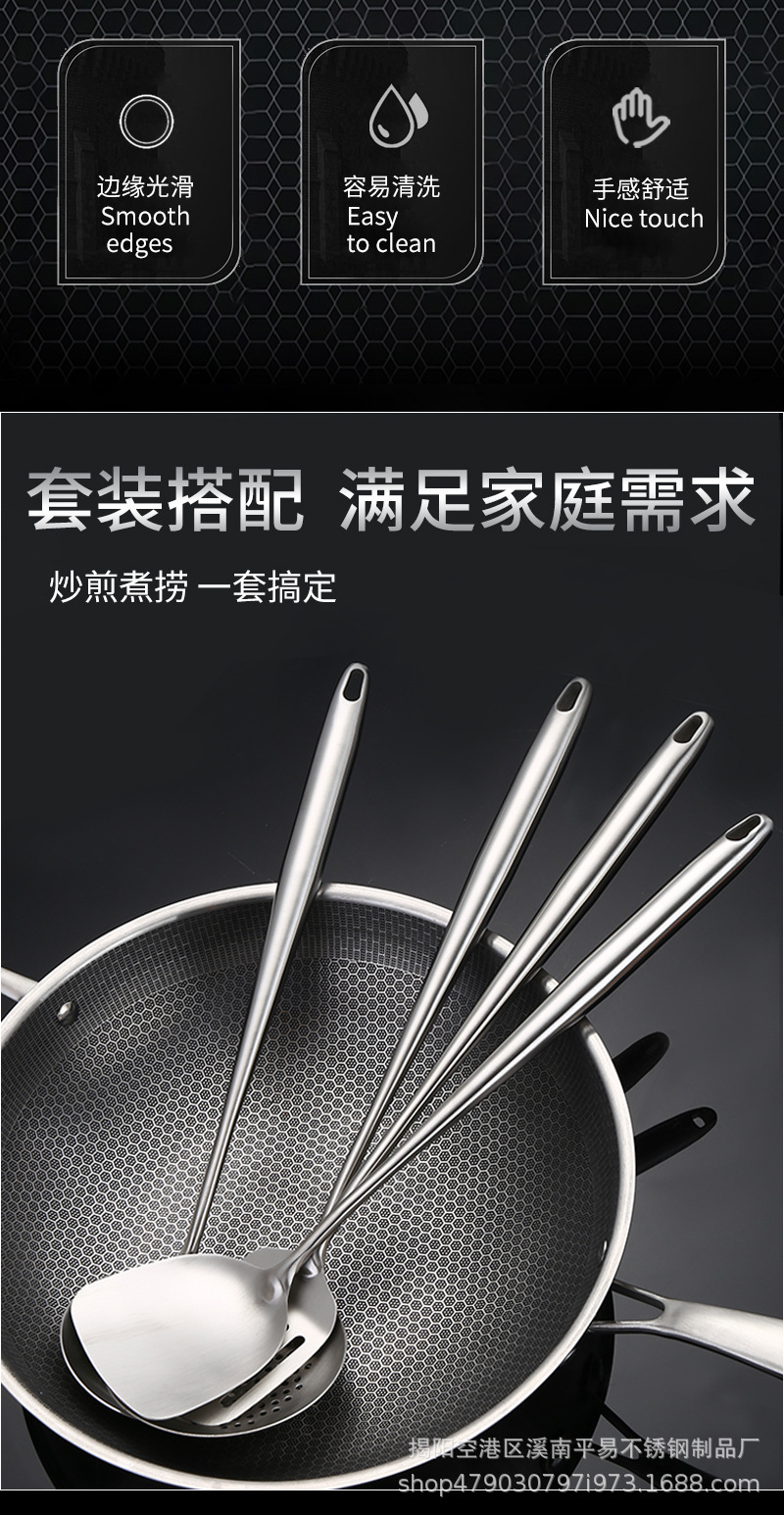 304 스테인레스 스틸 주걱 수프 스푼 소쿠리 확장 풀 스틸 핸들 볶음 주걱 통합 요리 주걱 세트