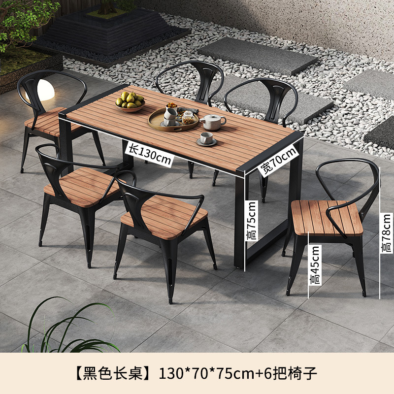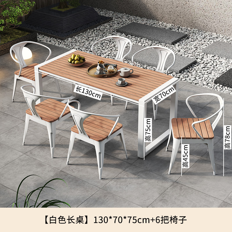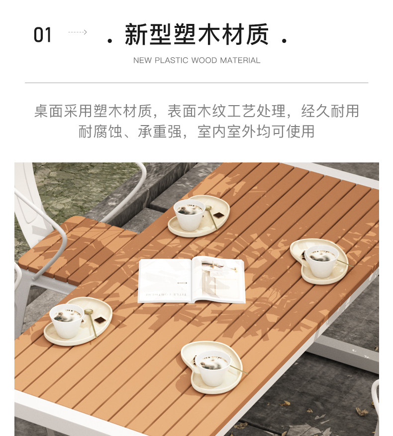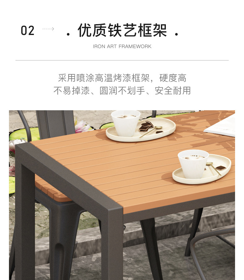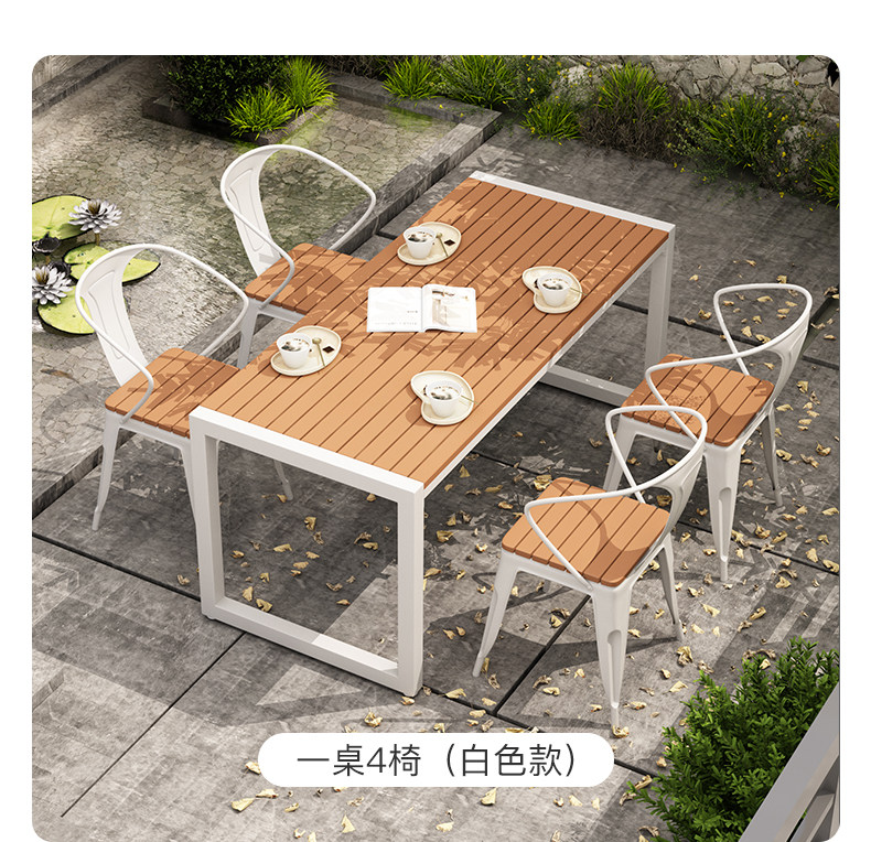 야외 안뜰 야외 테이블 및 의자 조합 테라스 정원 발코니 플라스틱-목재 방수 자외선 차단제 공원 레저 철제 테이블 및 의자