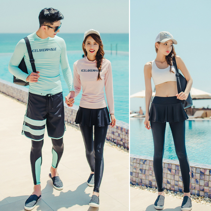 한국 분할 다이빙 세트 해파리 세트 남자와 여자의 긴 소매 수영복 서퍼 세트 커플 비치 세트 휴가 수영복스토어 가기
