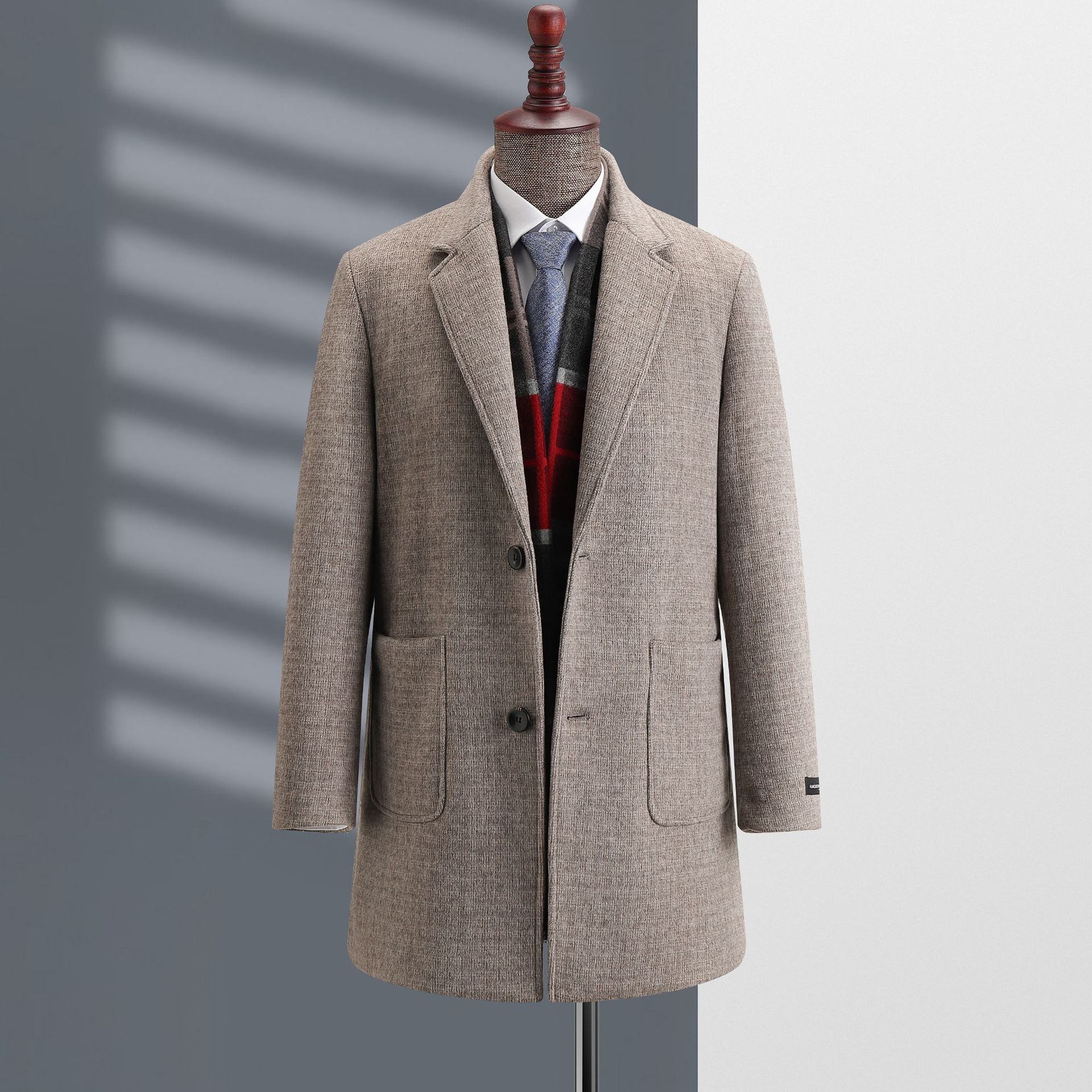 가을과 겨울 새로운 중간 길이 비즈니스 울 트렌치 코트 초대형 팻 재킷 남성 울 격자 무늬 코트스토어 가기