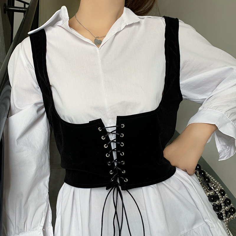 허리 물개 여자의 여름 패션 디자인 감각 캐주얼 모든 일치 장식 원피스 셔츠 틈새 블랙 우아한 와이드 벨트