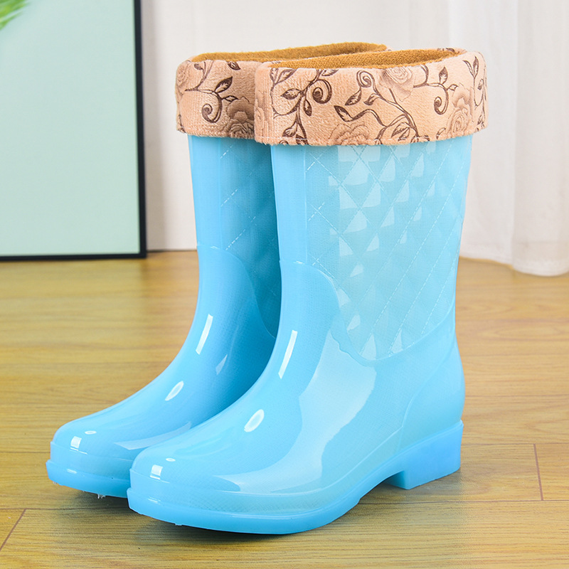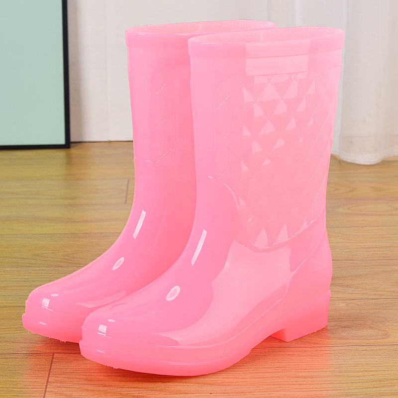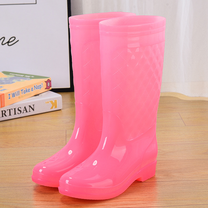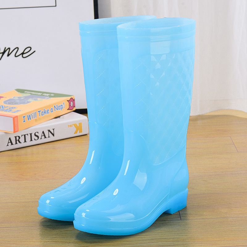 젤리 워터 부츠 고층 방수 신발 크리스탈 고무 신발 미끄럼 방지 오버슈즈 여성 여름 패션 레인 부츠 투명 두꺼운 장화스토어 가기