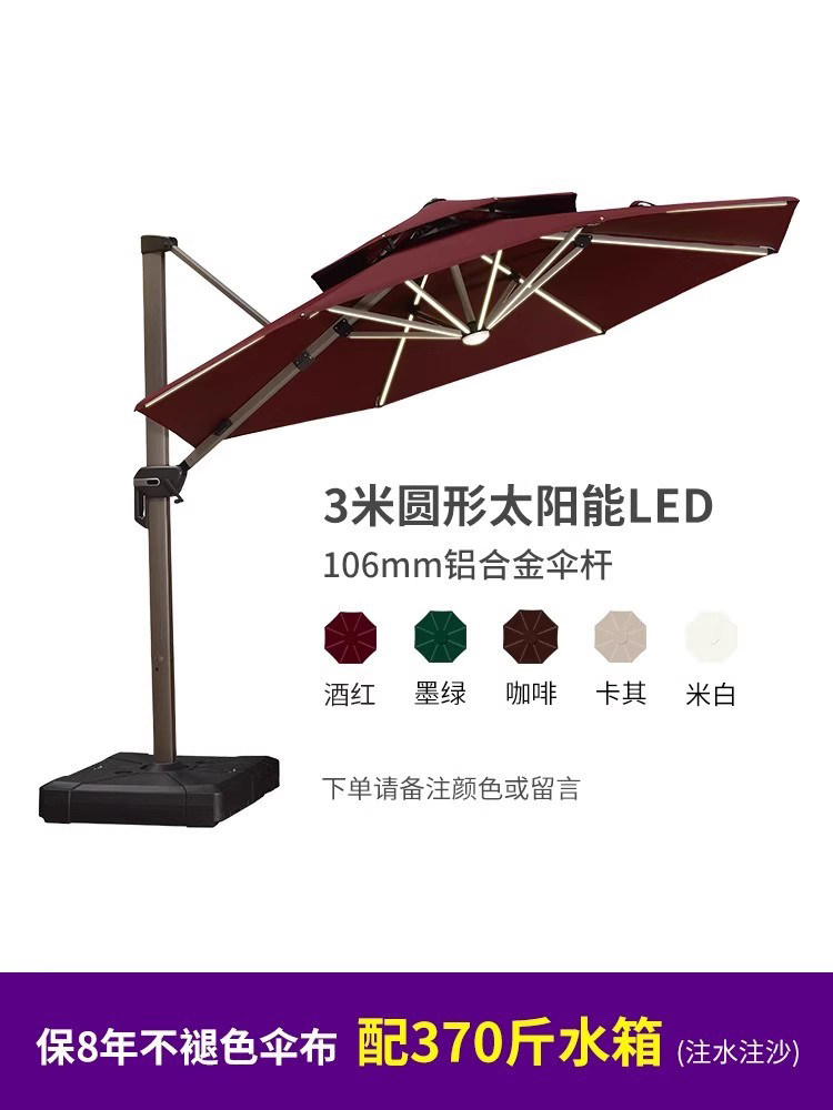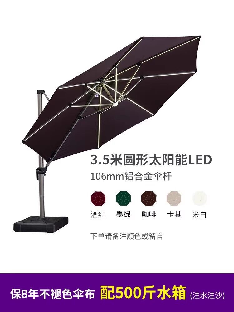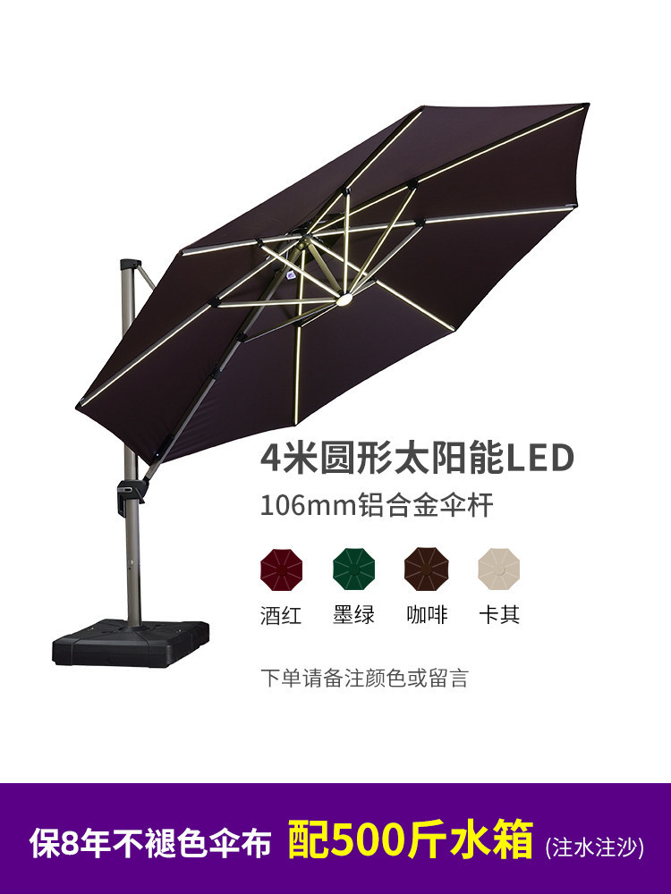 보라색 잎사귀 모양 야외용 태양광 정원 파라솔, 조명이 있는 로마식 파라솔, 안뜰 파라솔, 야외 태양광 파라솔, 발코니 테라스용 차양 파라솔스토어 가기