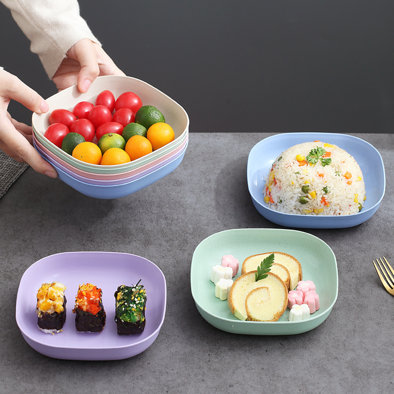 북유럽 스타일 뼈 뱉기 접시 밀 밀짚 깊어 사각 접시 주방 플라스틱 접시 데스크탑 스낵 플레이트