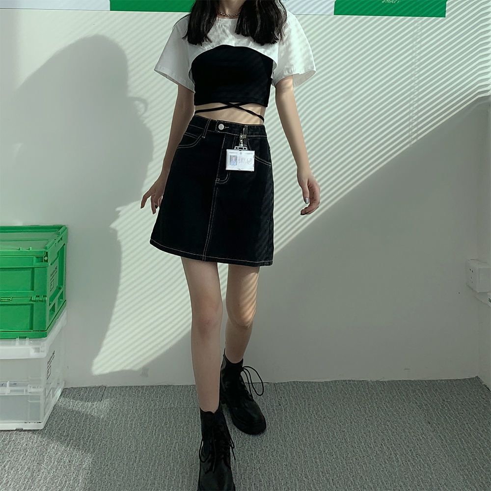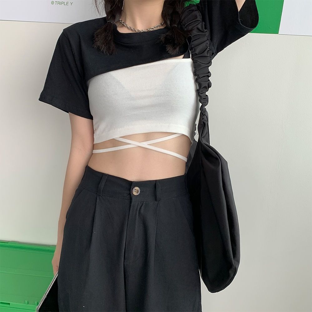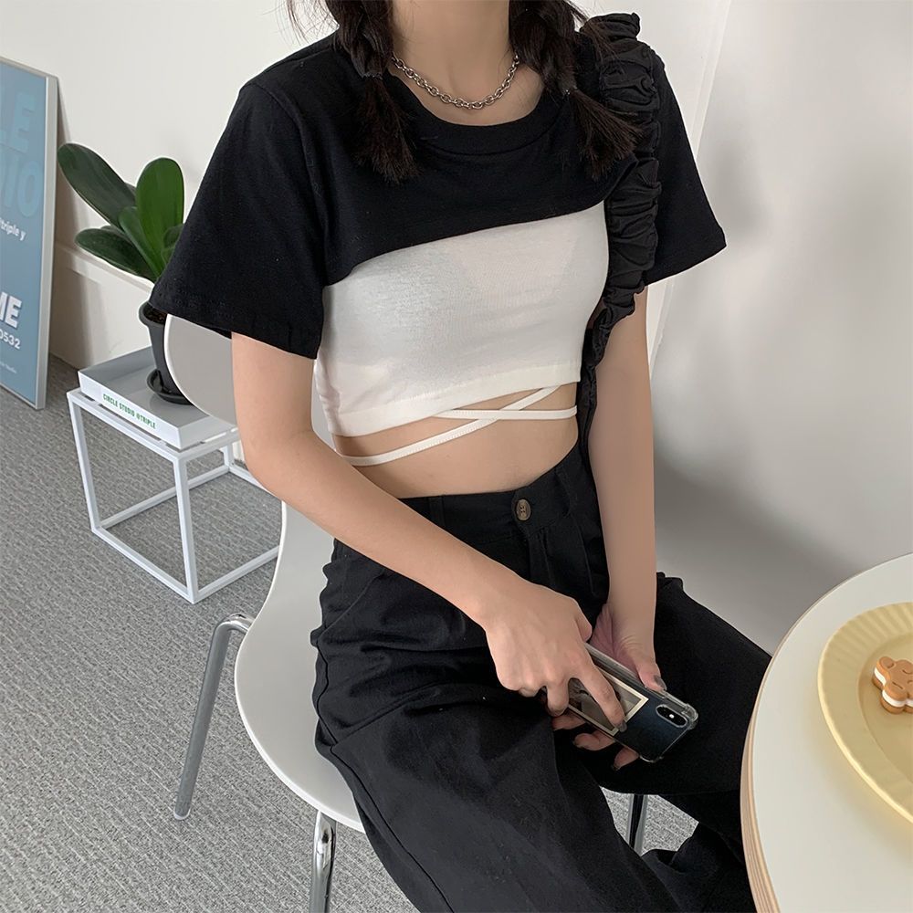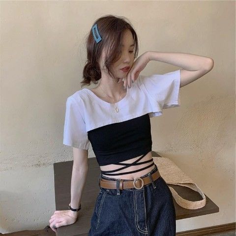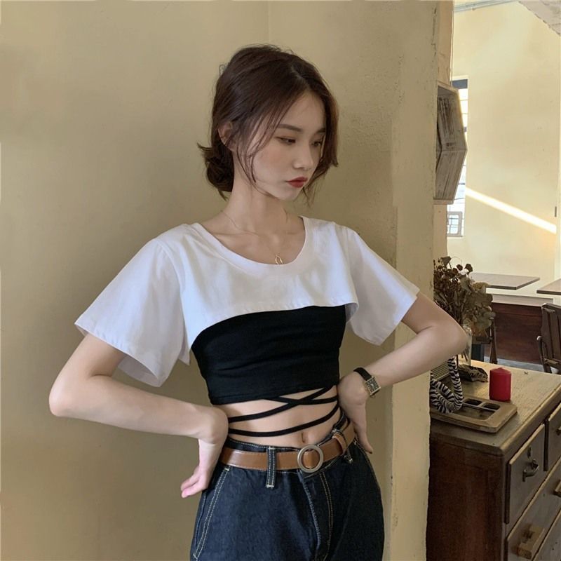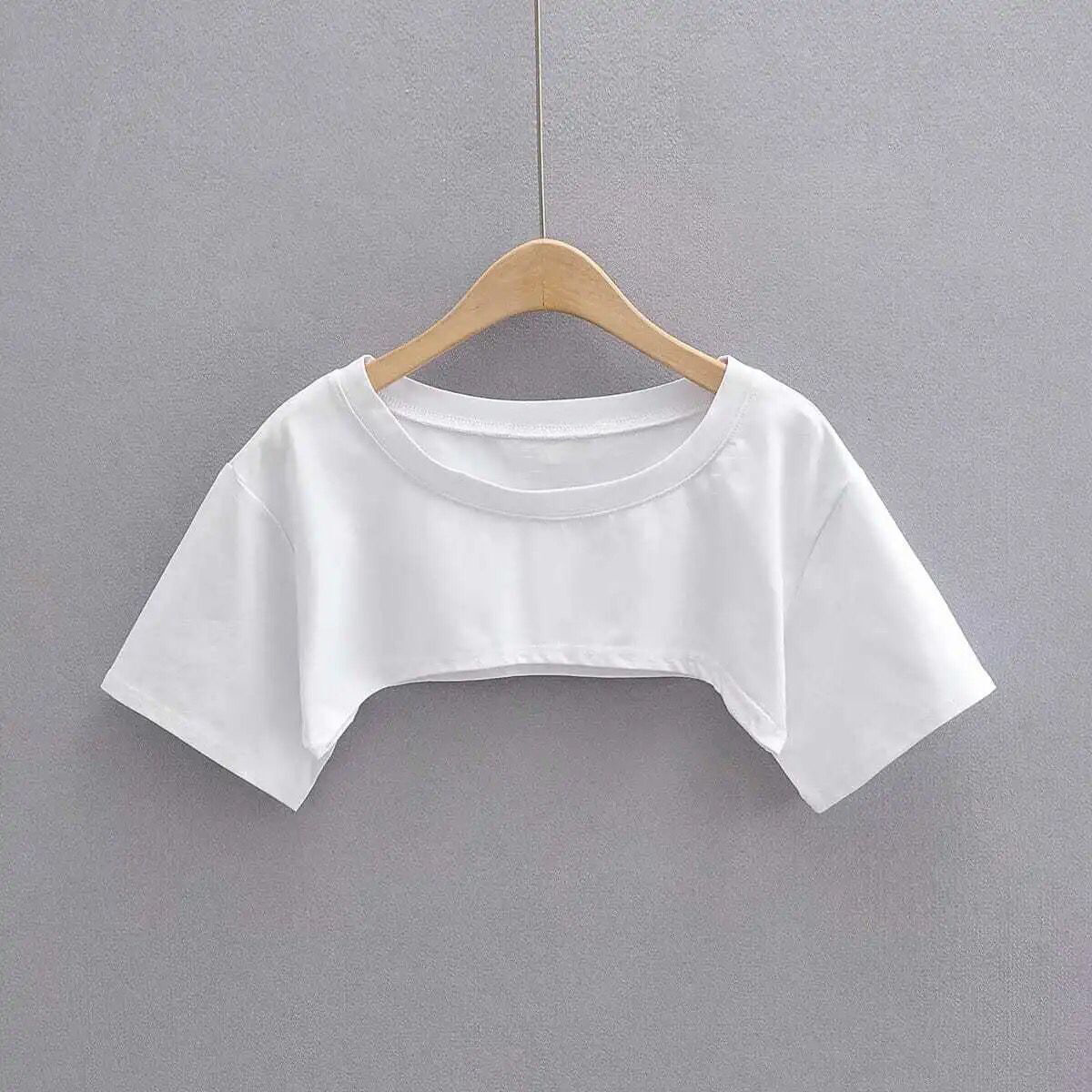 단색 면 슈퍼 반팔 티셔츠 여자의 여름 새로운 간단한 한국 스타일 디자인 감각 틈새 블라우스 핫 걸 탑