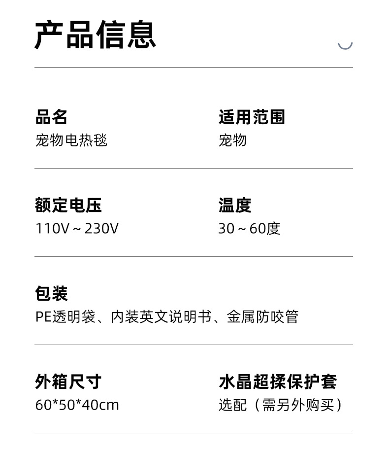 아마존 대외 무역 국경 애완 동물 난방 패드 110V 미국 규제 호주 규제 유럽 규정 일본 규제 방수 애완 동물 전기 담요