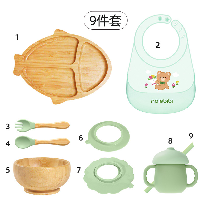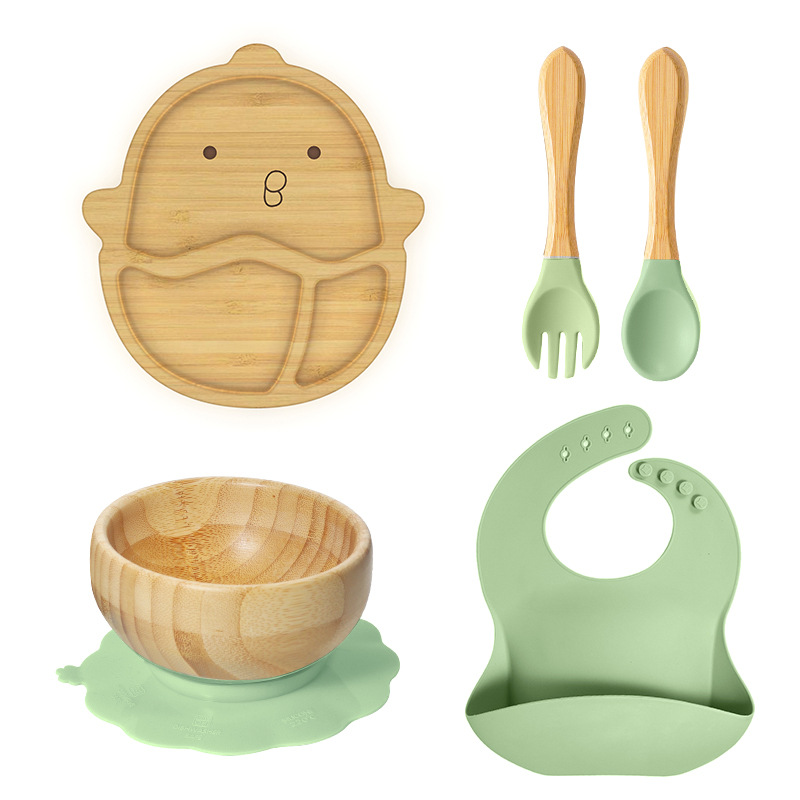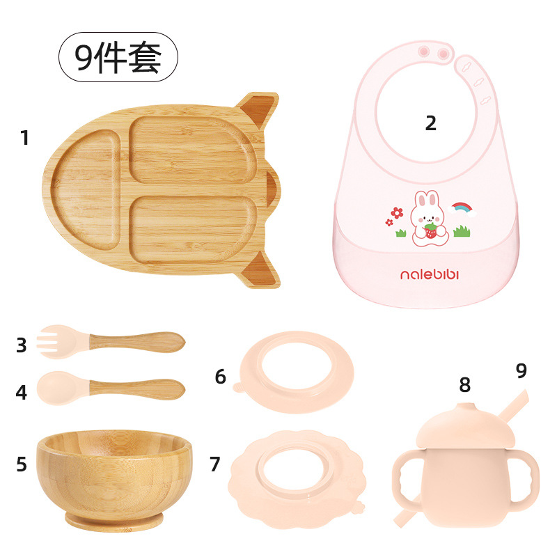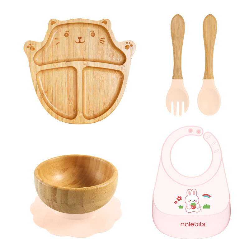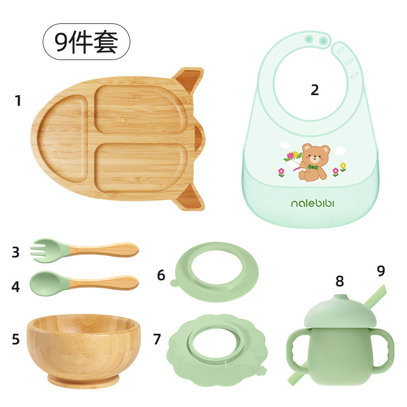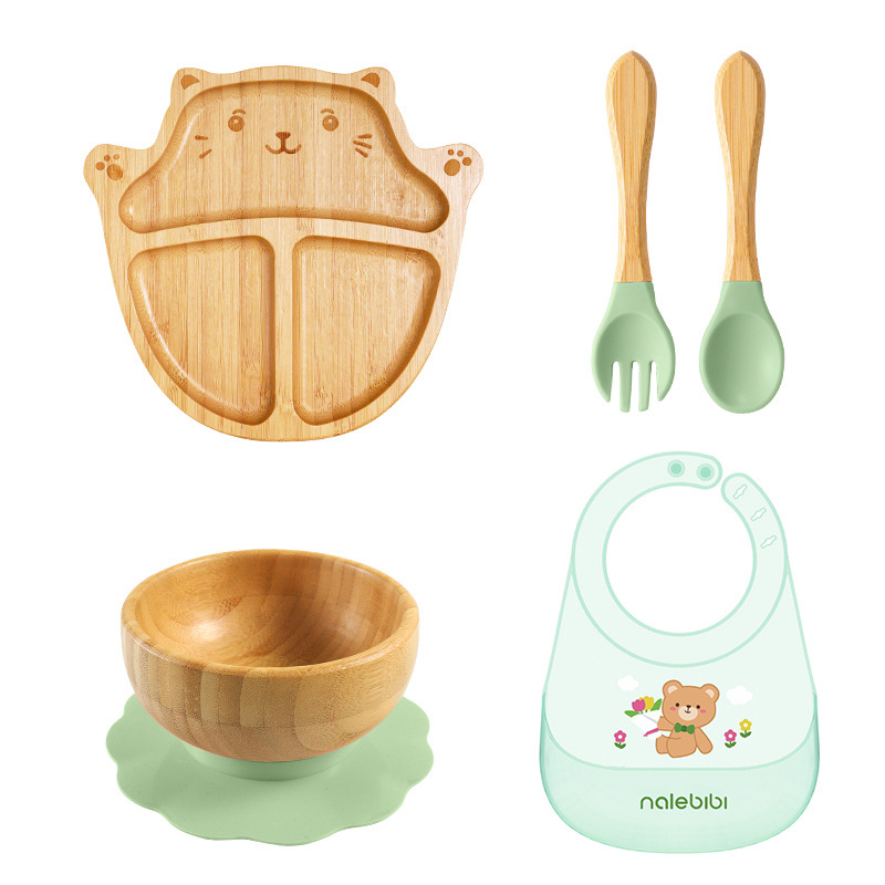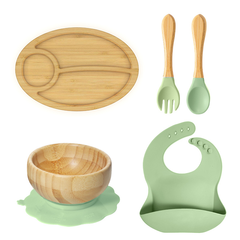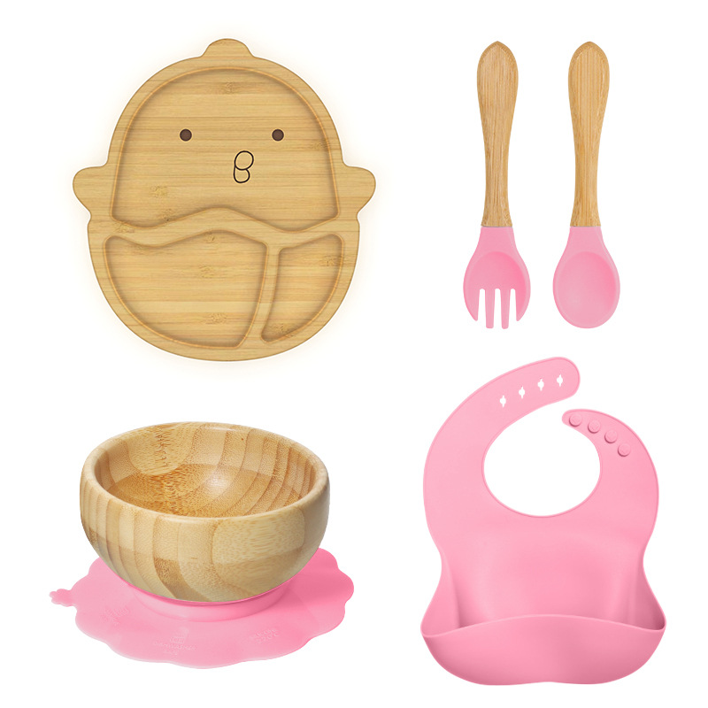 套装:7件(婴儿竹盘+竹碗+小圆吸盘+大花吸盘+竹勺+竹叉+围兜套装