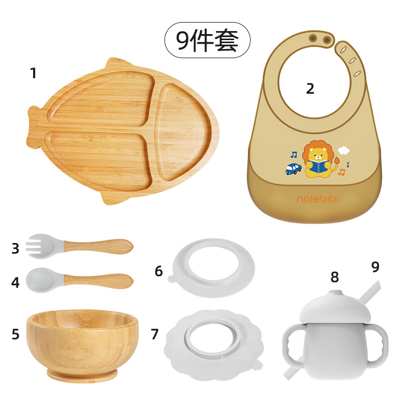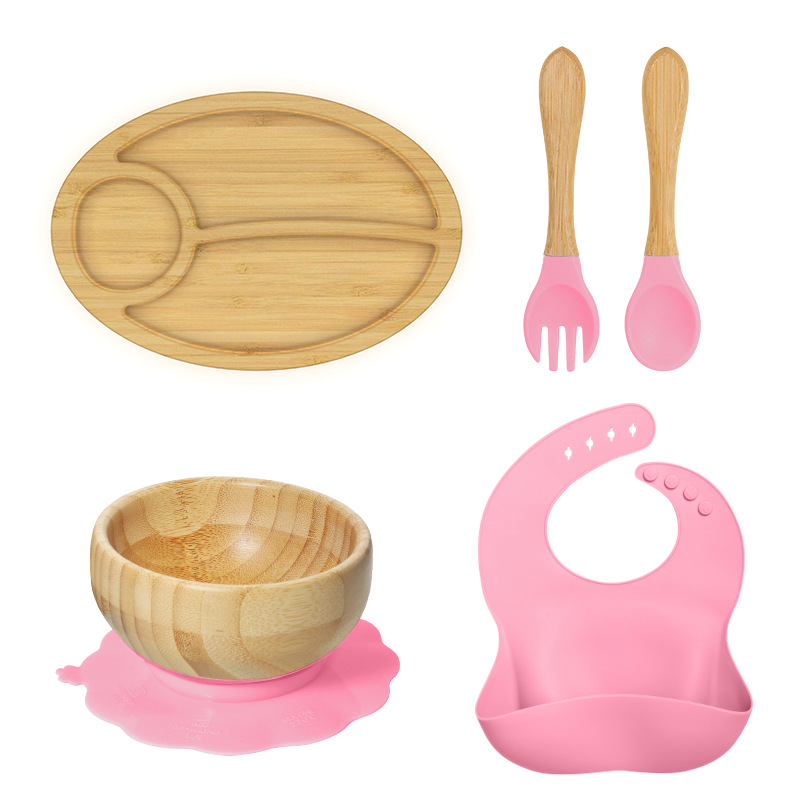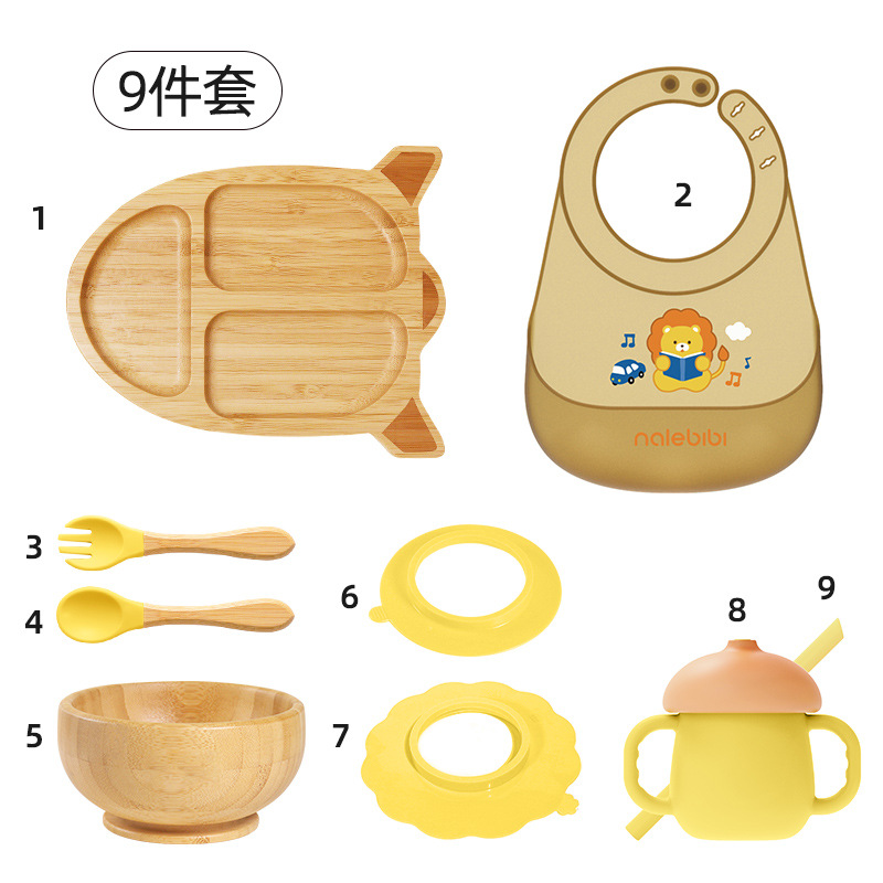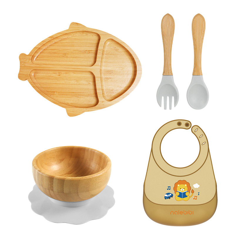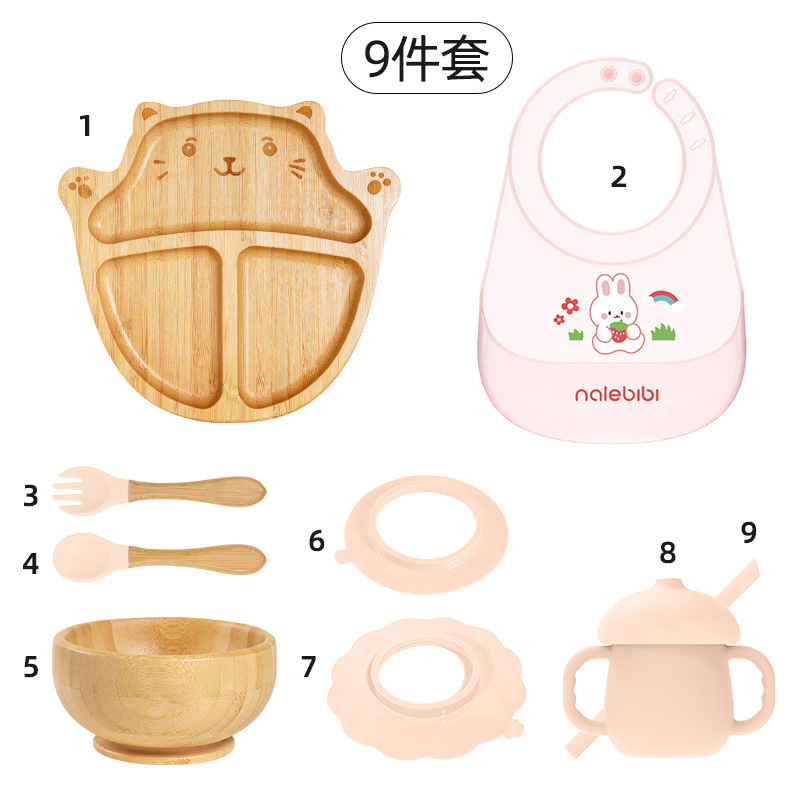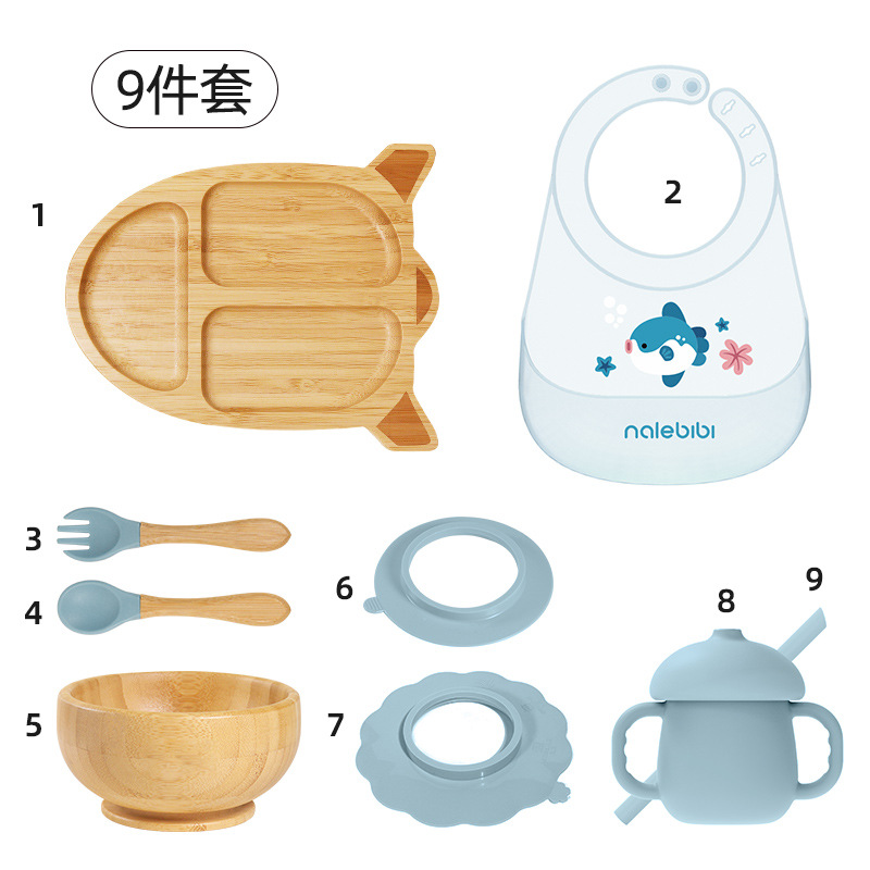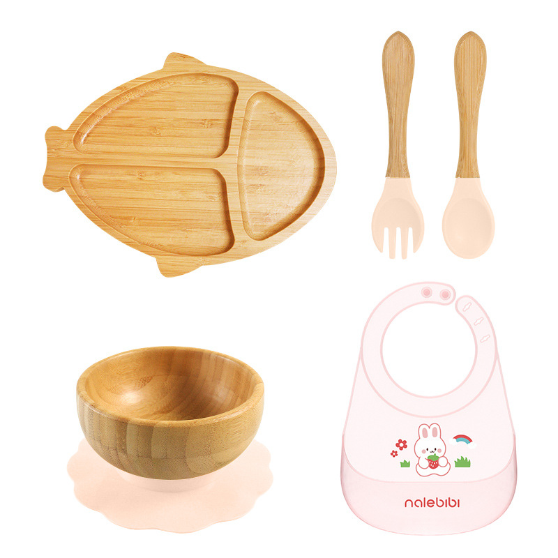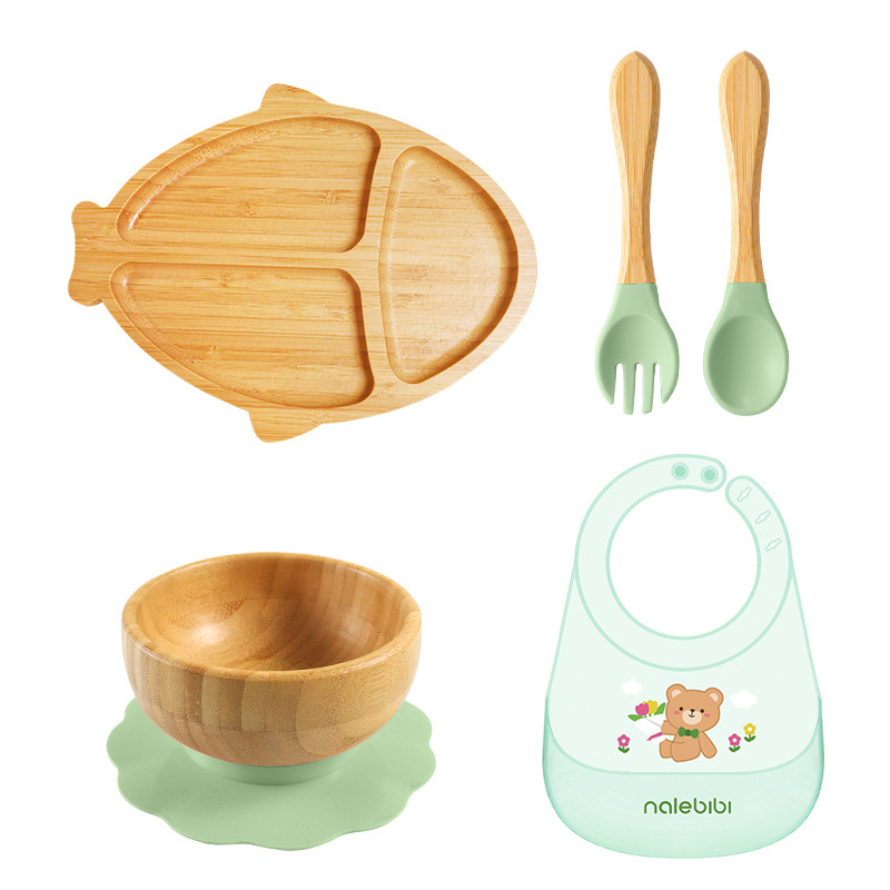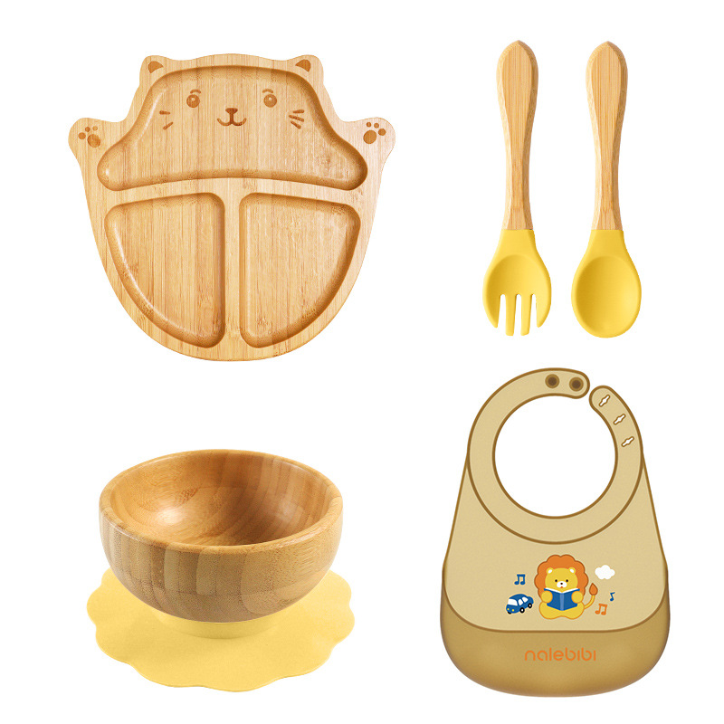 套装:7件(婴儿竹盘+竹碗+小圆吸盘+大花吸盘+竹勺+竹叉+围兜套装