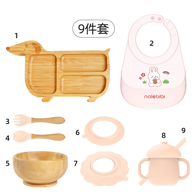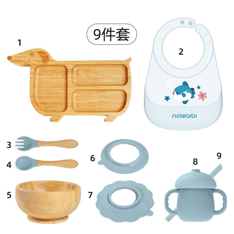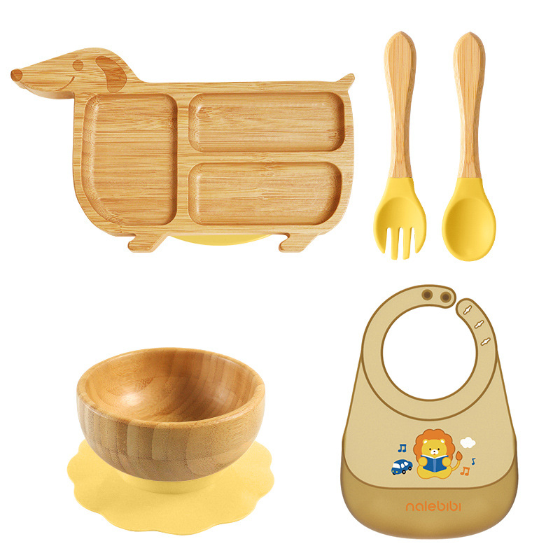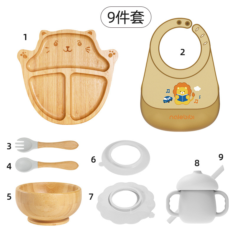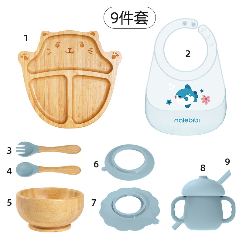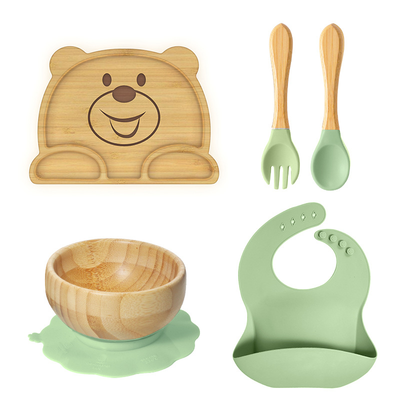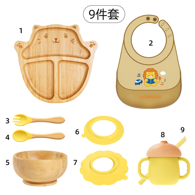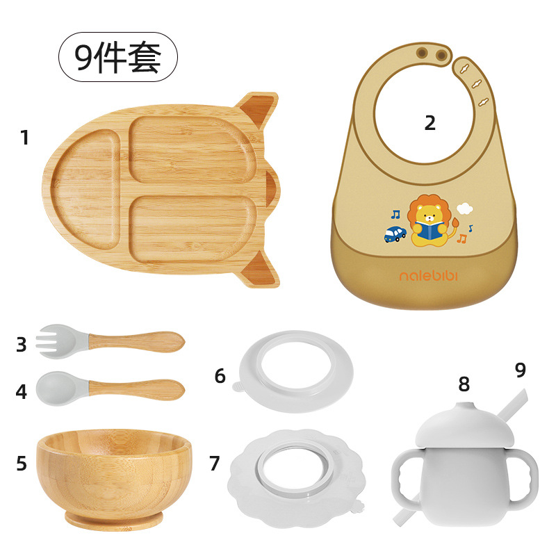 套装:7件(婴儿竹盘+竹碗+小圆吸盘+大花吸盘+竹勺+竹叉+围兜套装