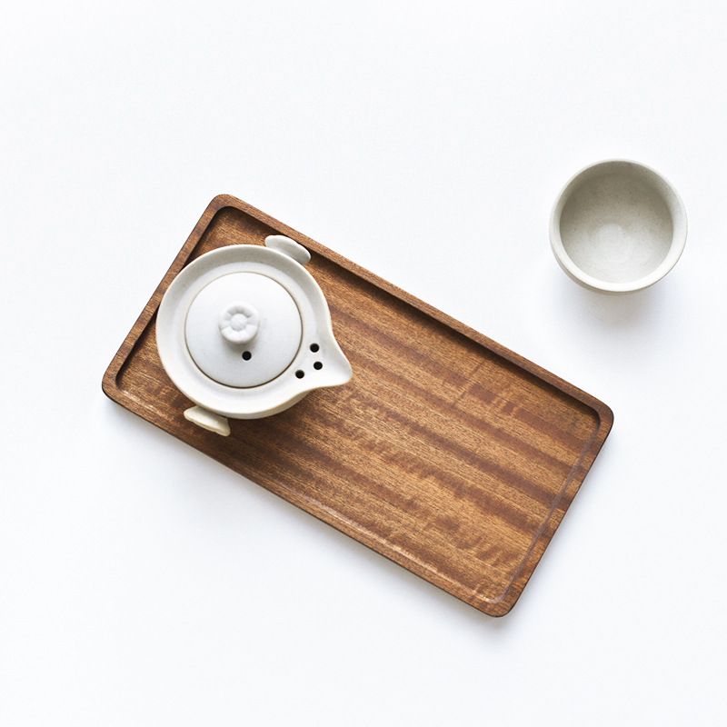 Miaowu 일본식 단단한 나무 직사각형 전체 나무 트레이 디저트 트레이 티 트레이 컵 홀더 음식 사진 소품스토어 가기