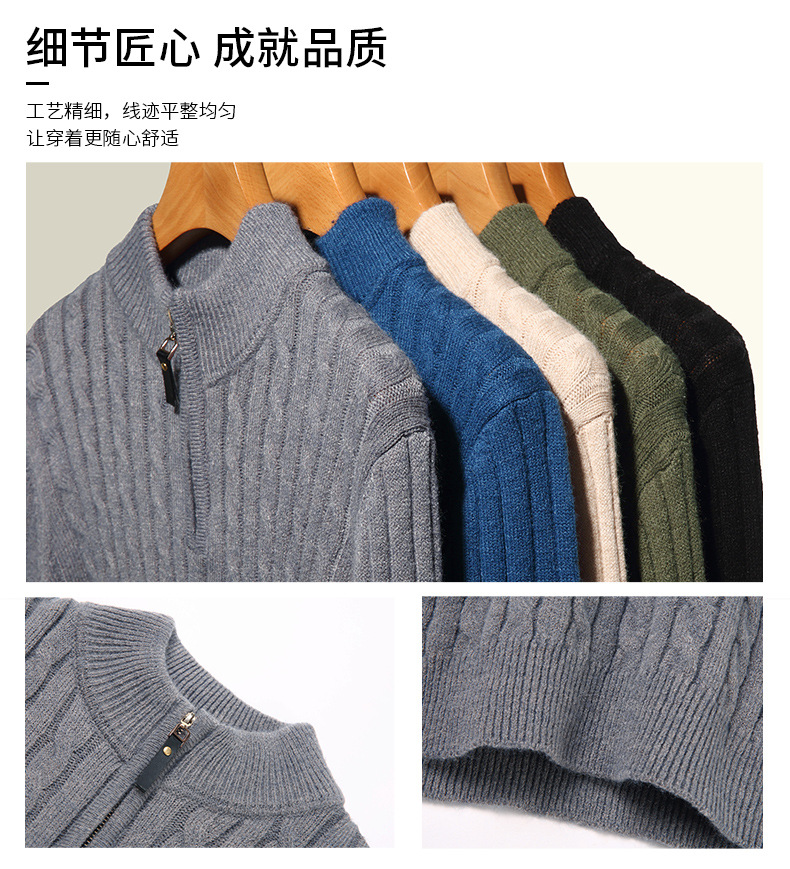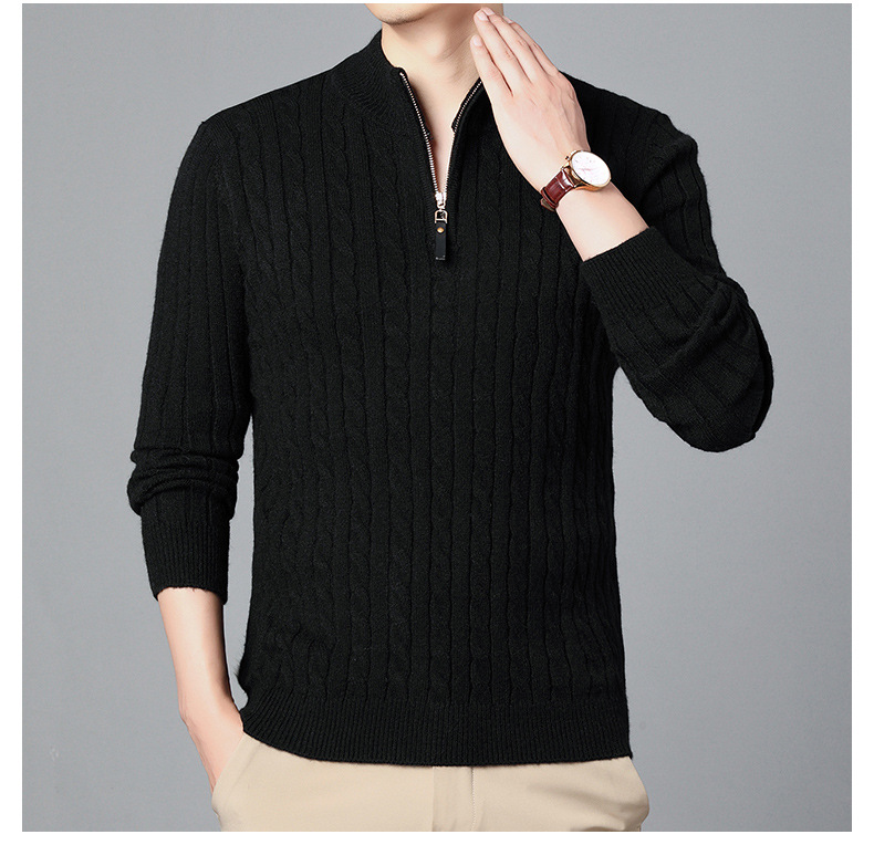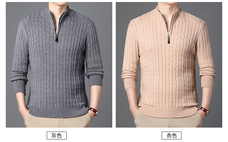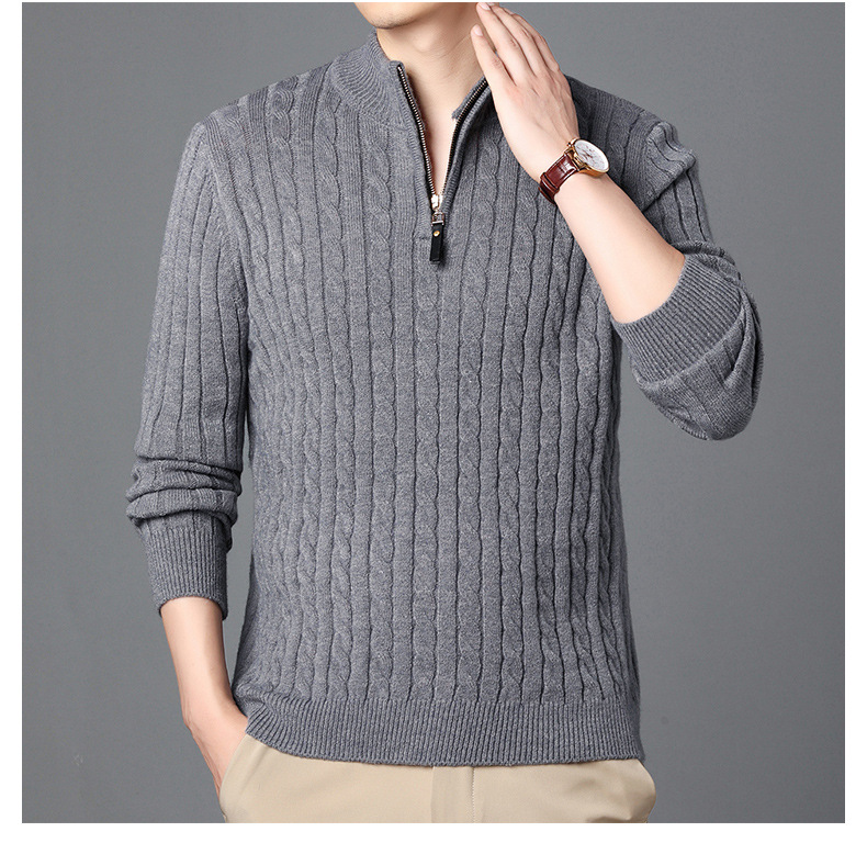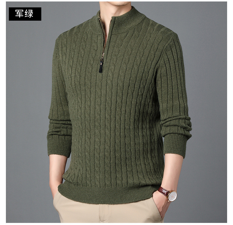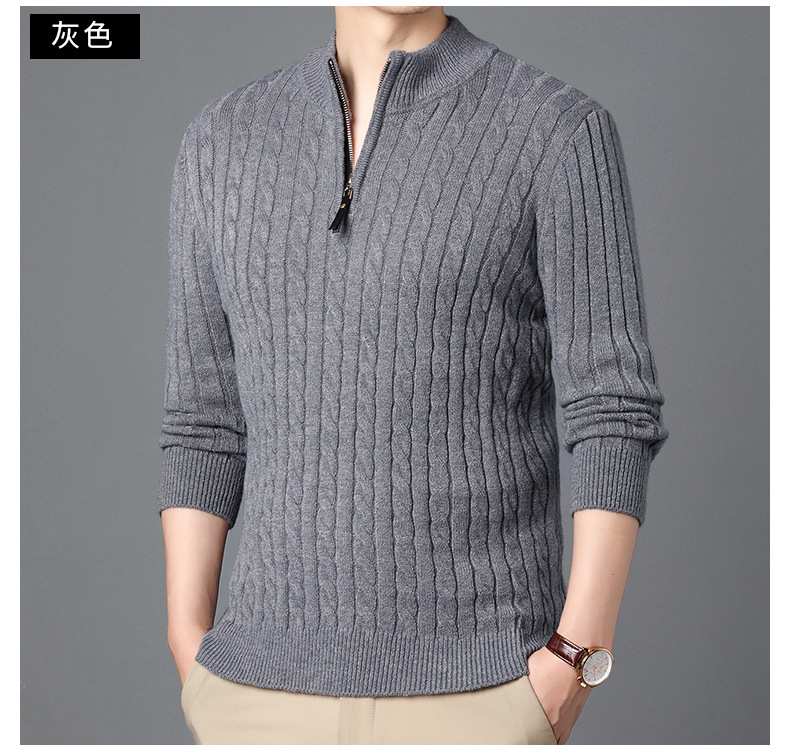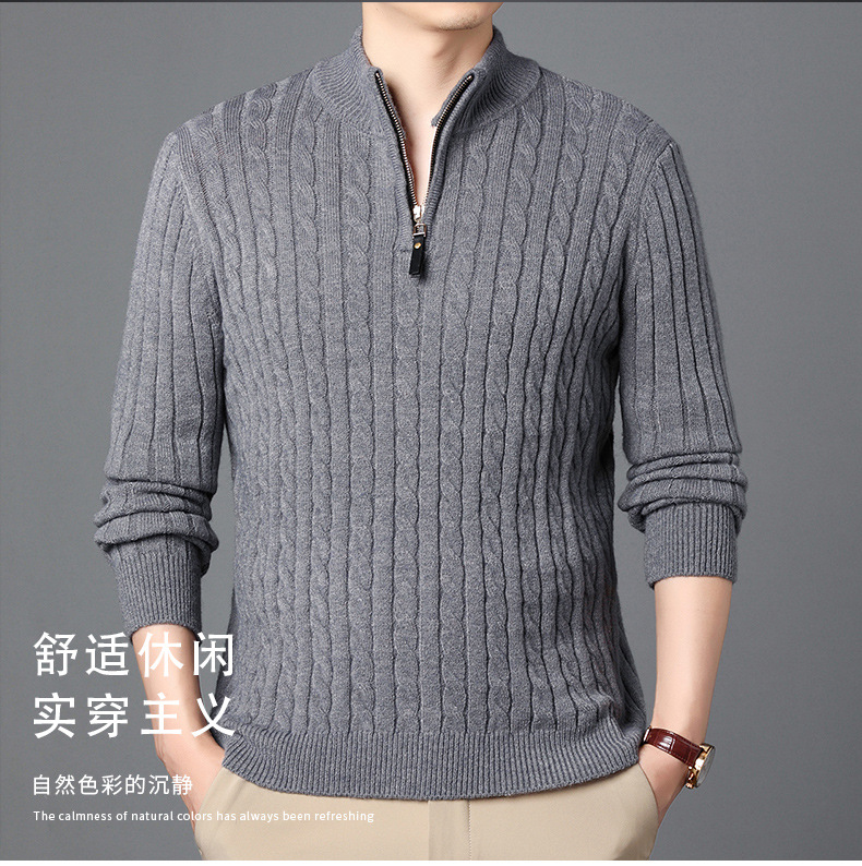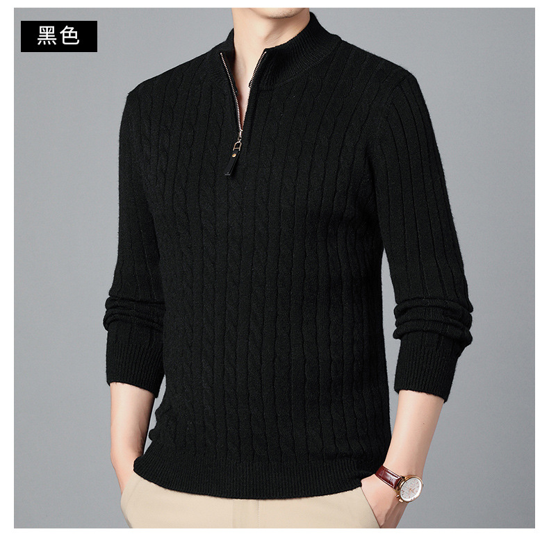 대외 무역 크로스 보더 니트 스웨터 남성용 단색 트위스트 스웨터 반 터틀넥 지퍼 터틀넥 중년 스웨터 남성용 기본 셔츠