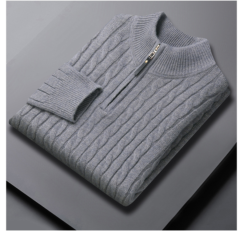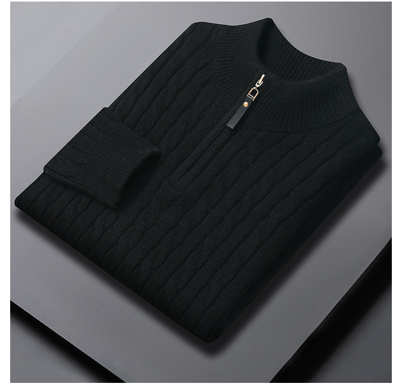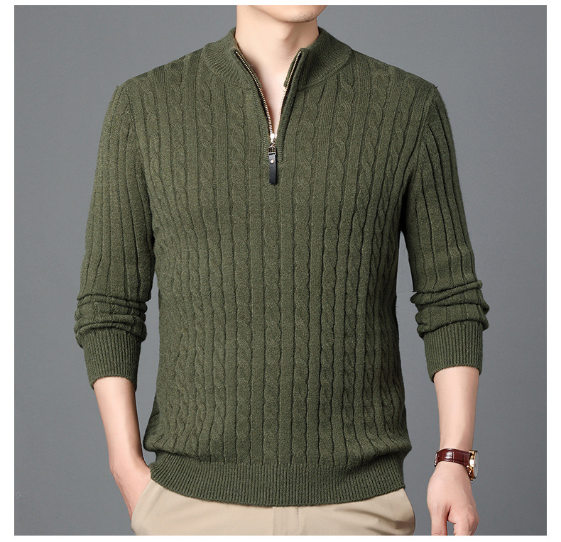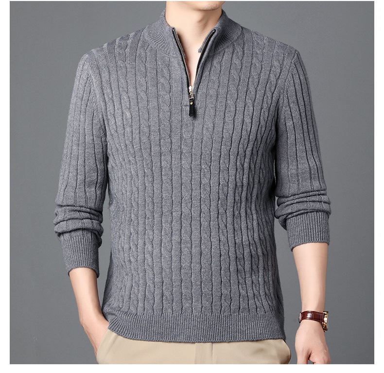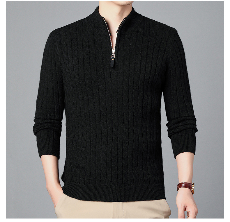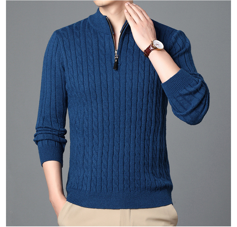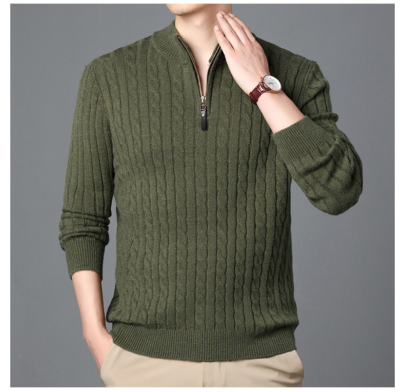대외 무역 크로스 보더 니트 스웨터 남성용 단색 트위스트 스웨터 반 터틀넥 지퍼 터틀넥 중년 스웨터 남성용 기본 셔츠