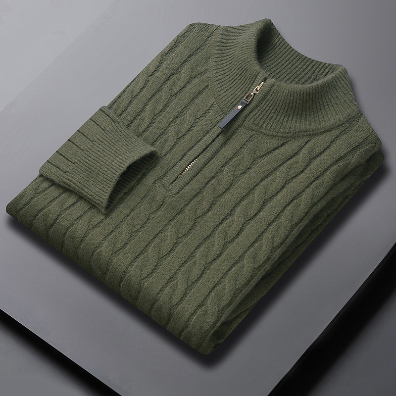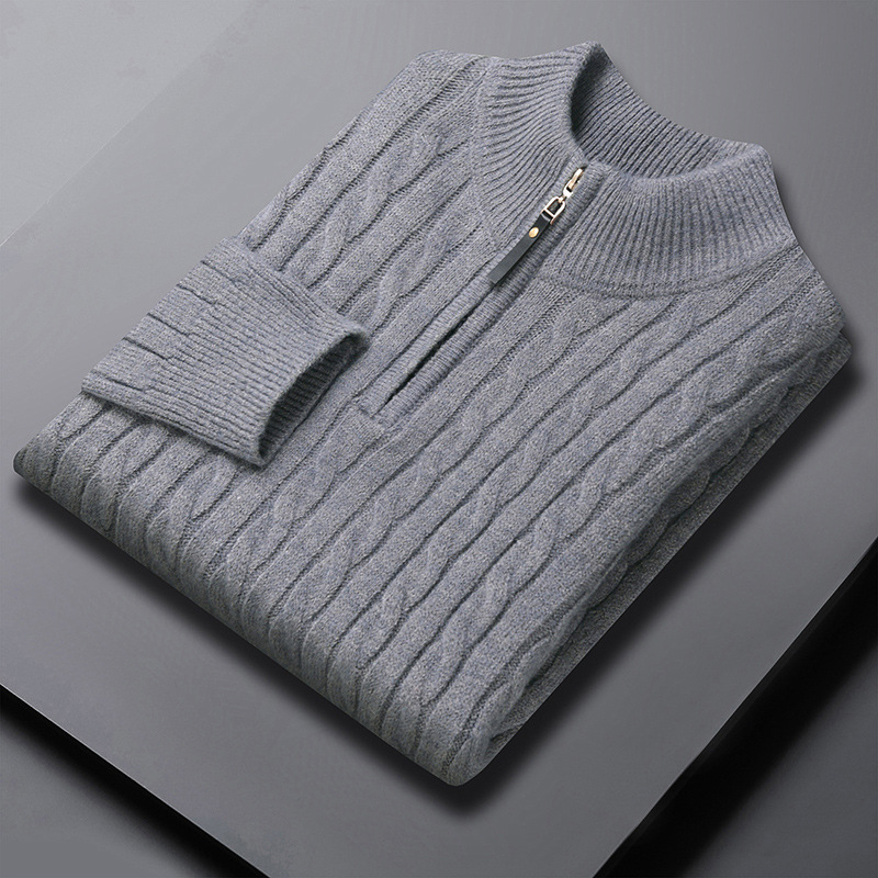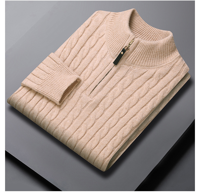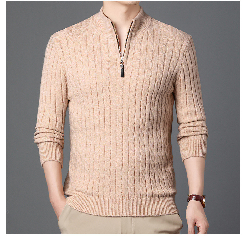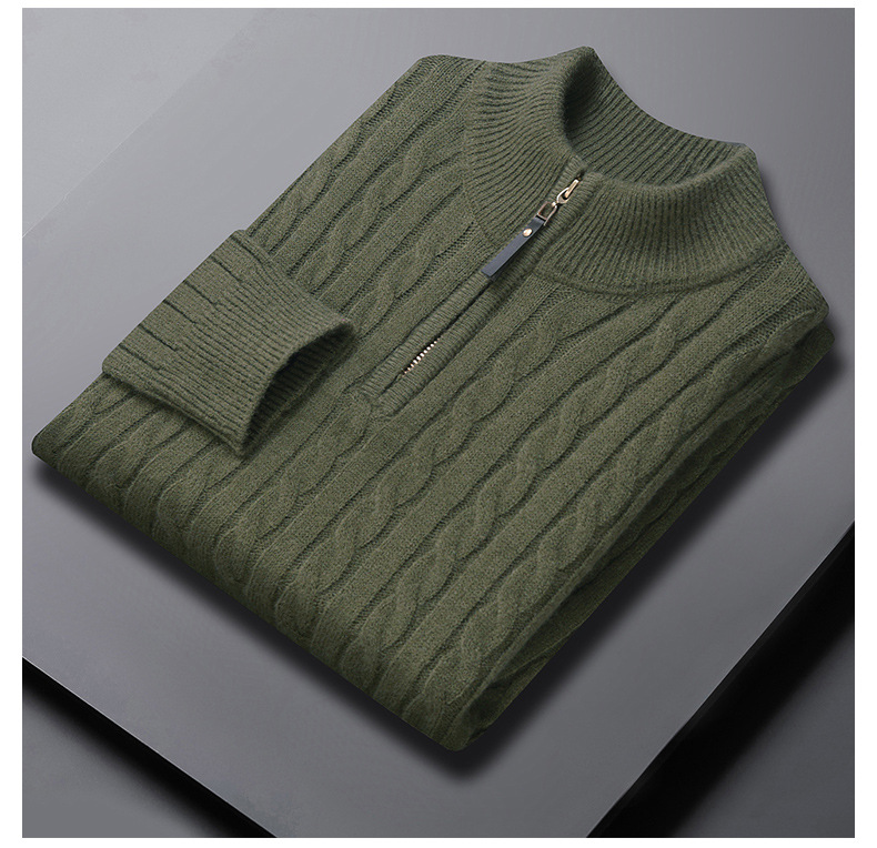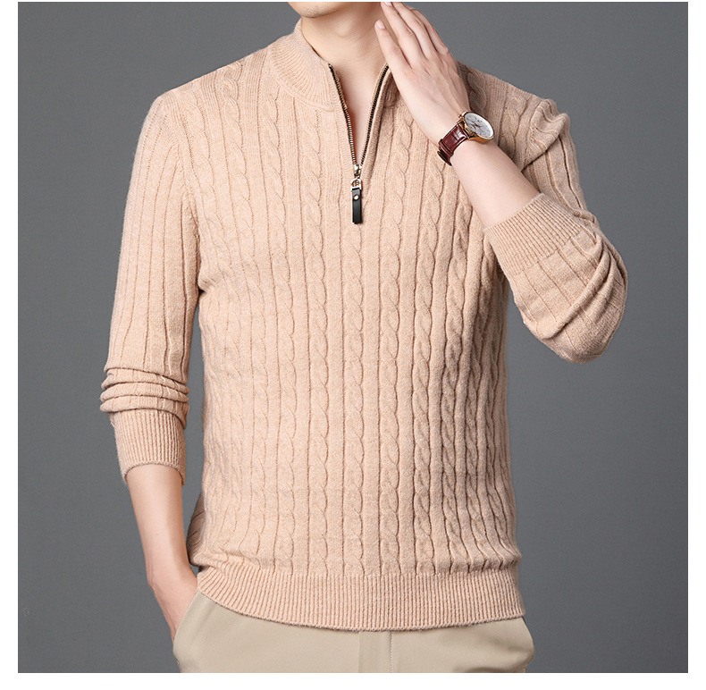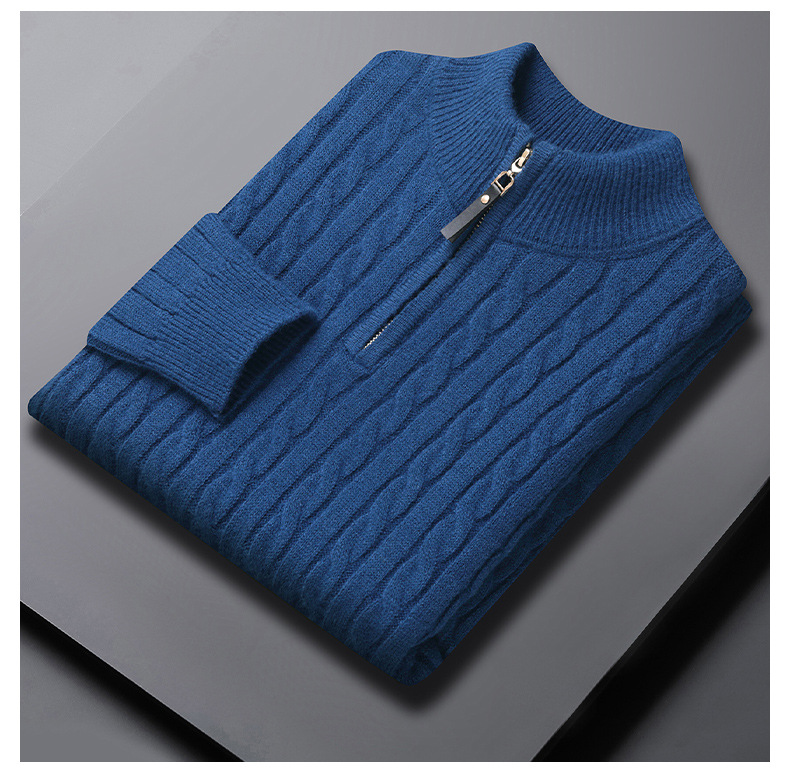 대외 무역 크로스 보더 니트 스웨터 남성용 단색 트위스트 스웨터 반 터틀넥 지퍼 터틀넥 중년 스웨터 남성용 기본 셔츠