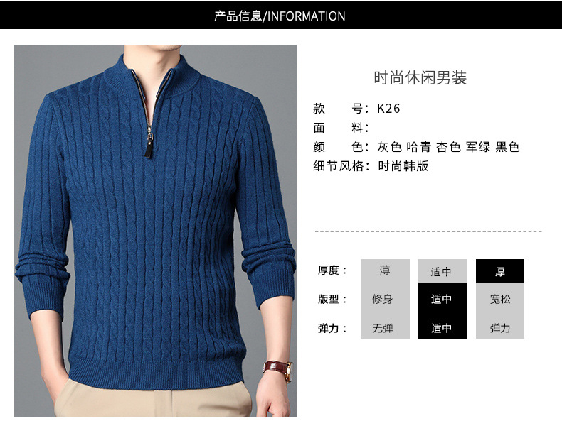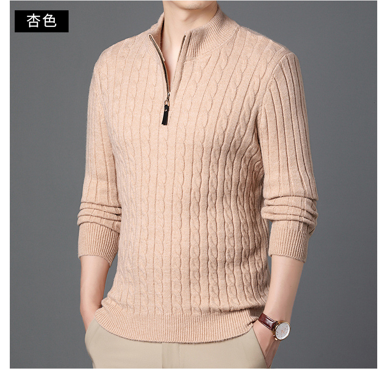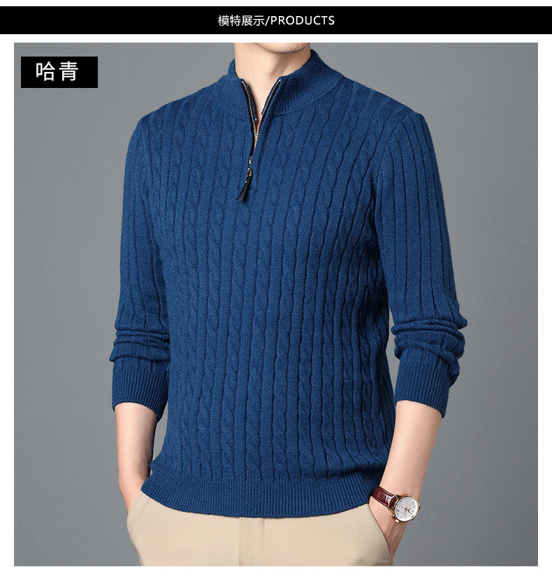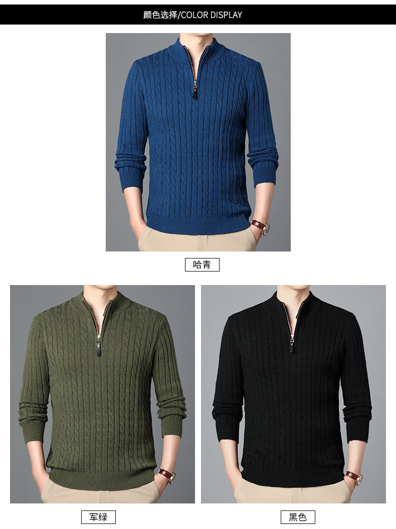 대외 무역 크로스 보더 니트 스웨터 남성용 단색 트위스트 스웨터 반 터틀넥 지퍼 터틀넥 중년 스웨터 남성용 기본 셔츠스토어 가기