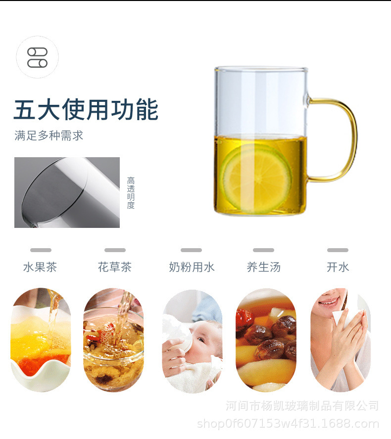 고온 저항하는 환대 컵 가족 물 컵 가정용 높은 붕규산 유리 광고 컵 물 컵을 가진 투명한 유리 컵