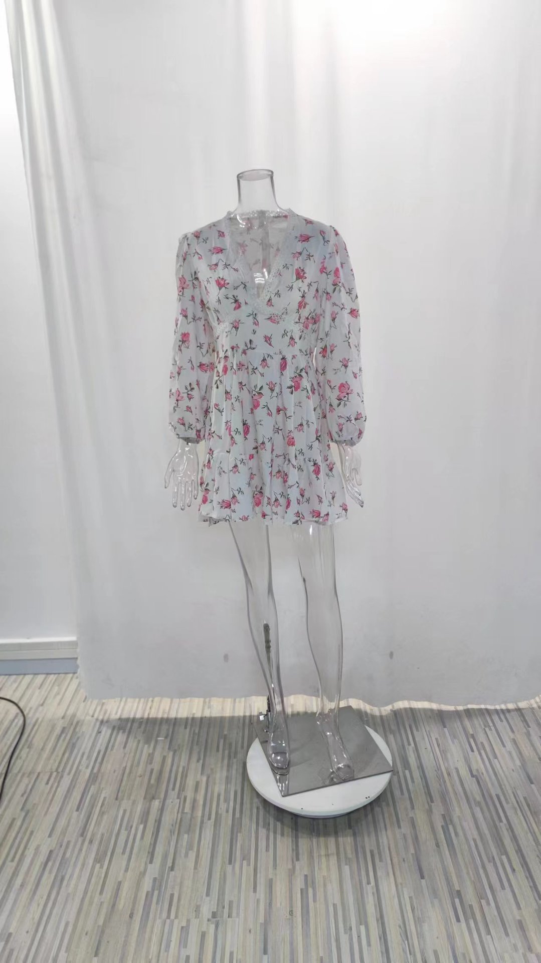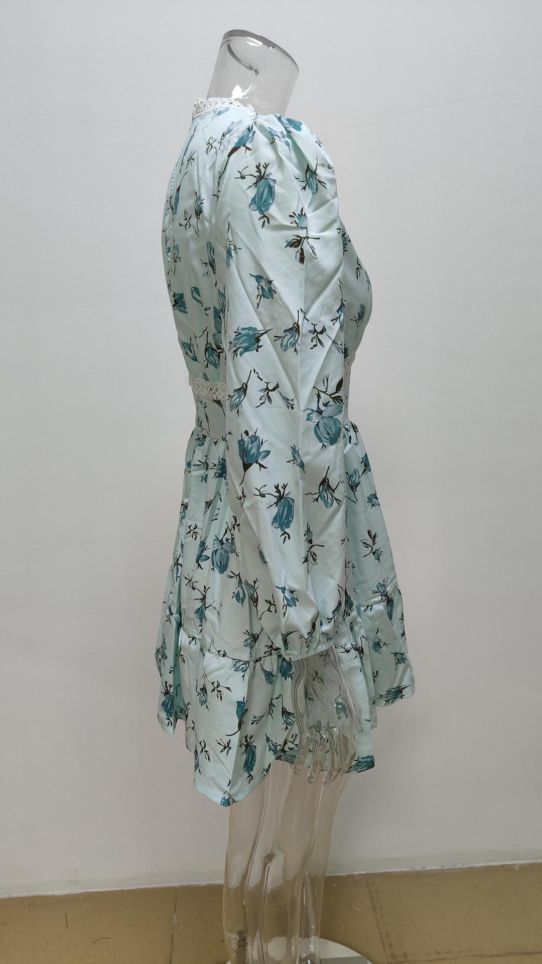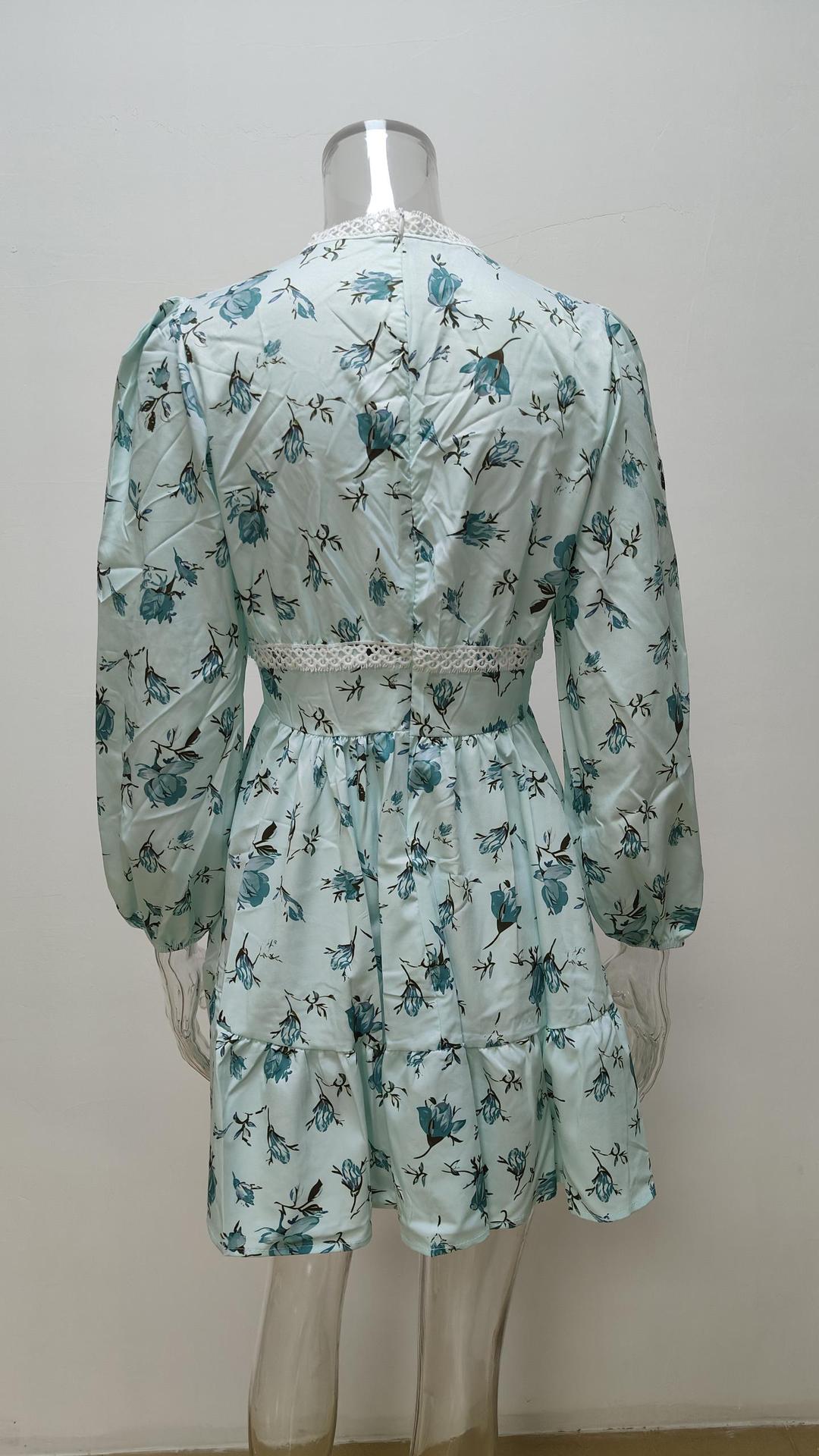 2026 봄 신상 여성복, 유럽 및 미국 스타일 드레스, 우아하고 달콤한 허리라인을 강조하는 프린트 레이스 미니스커트스토어 가기