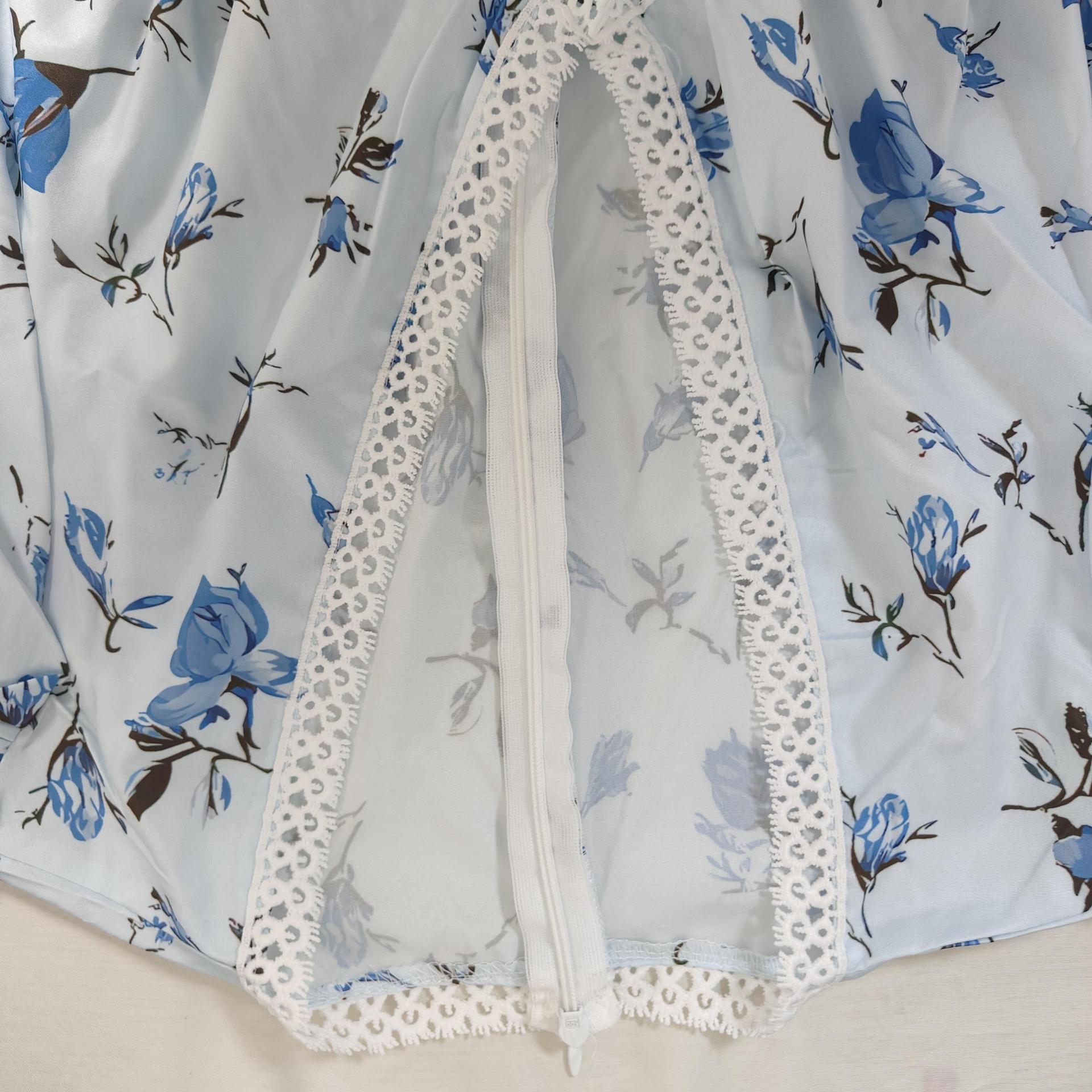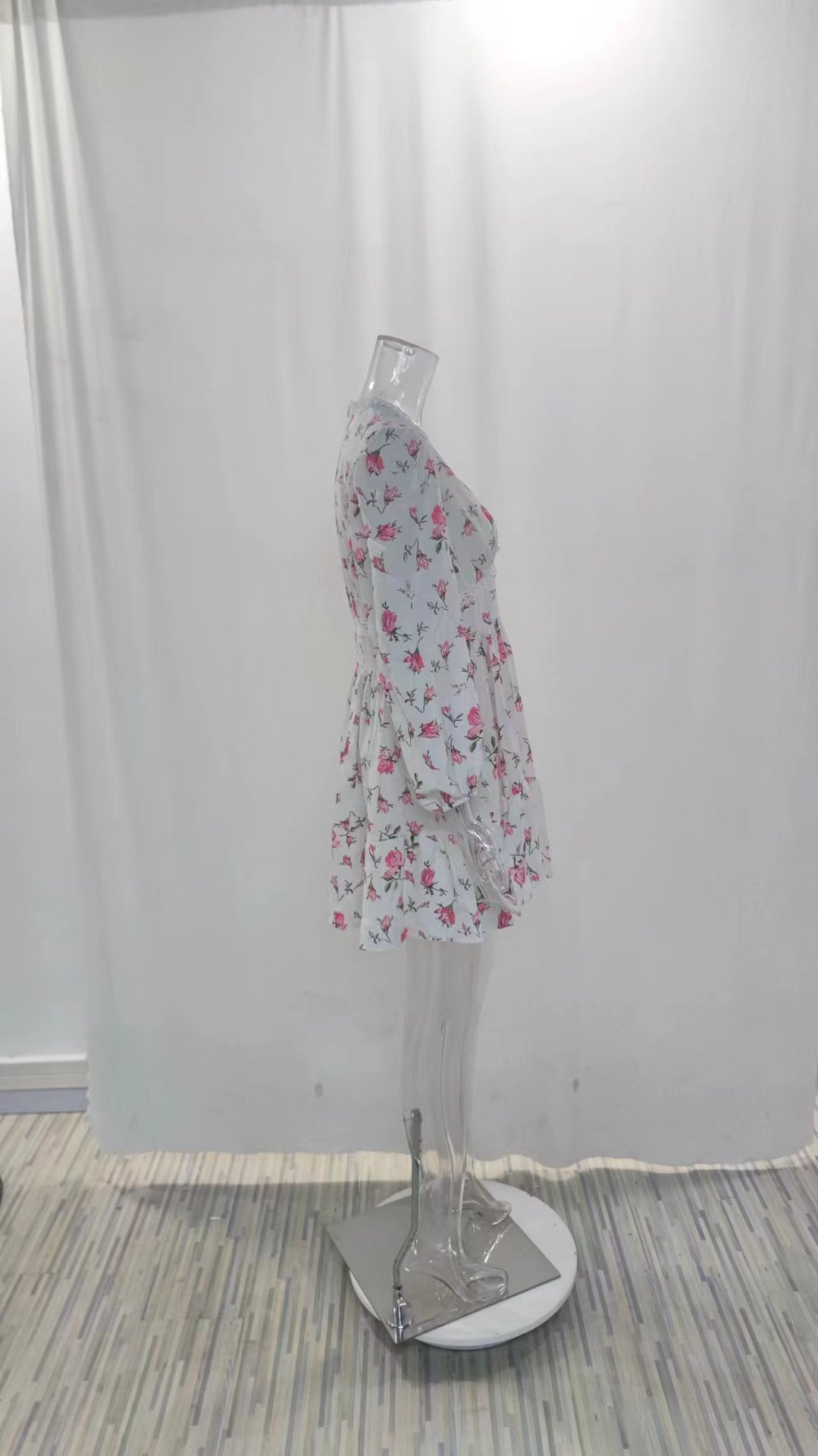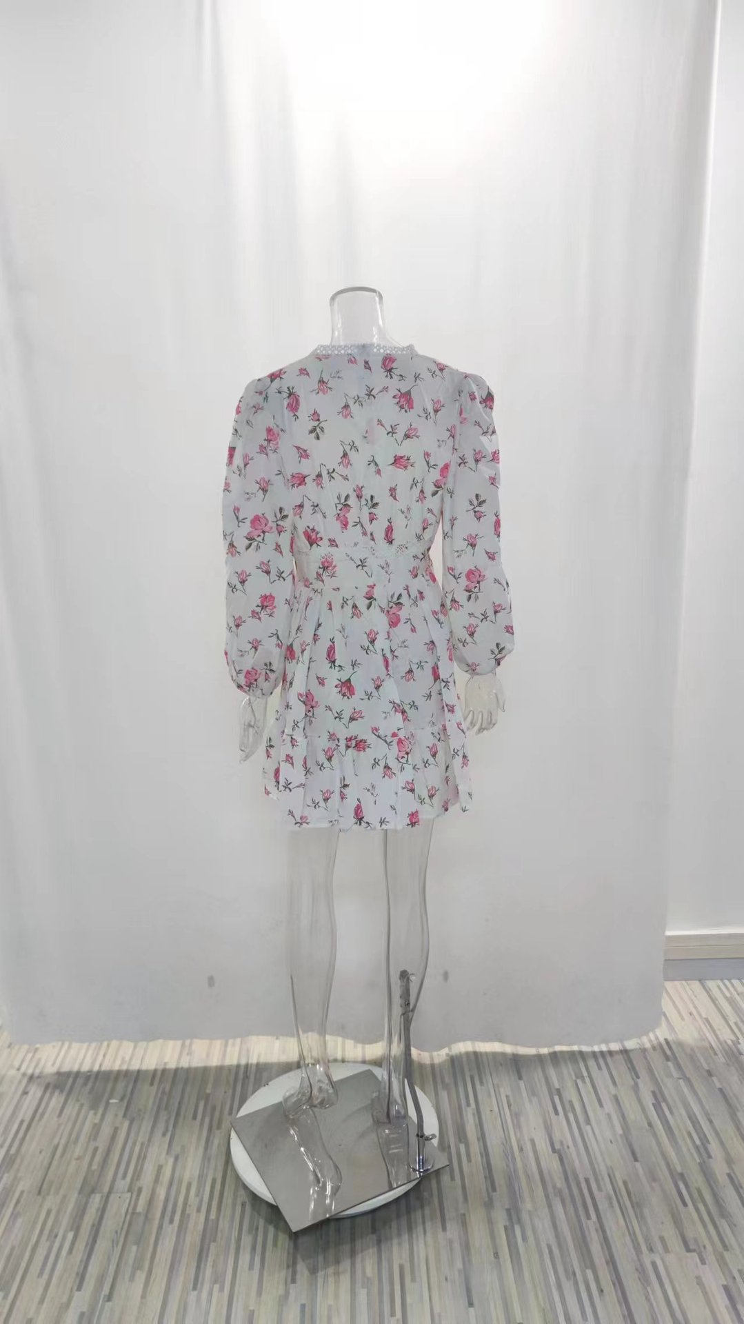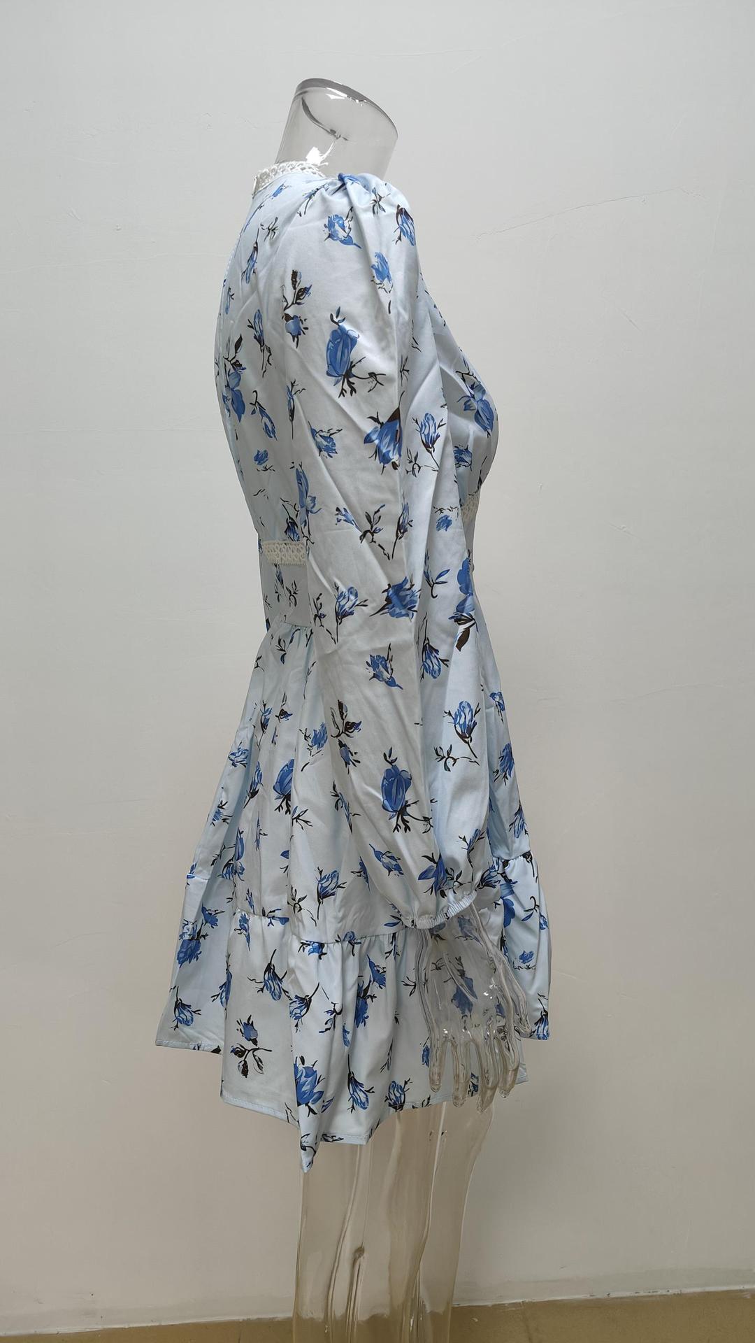 2026 봄 신상 여성복, 유럽 및 미국 스타일 드레스, 우아하고 달콤한 허리라인을 강조하는 프린트 레이스 미니스커트스토어 가기