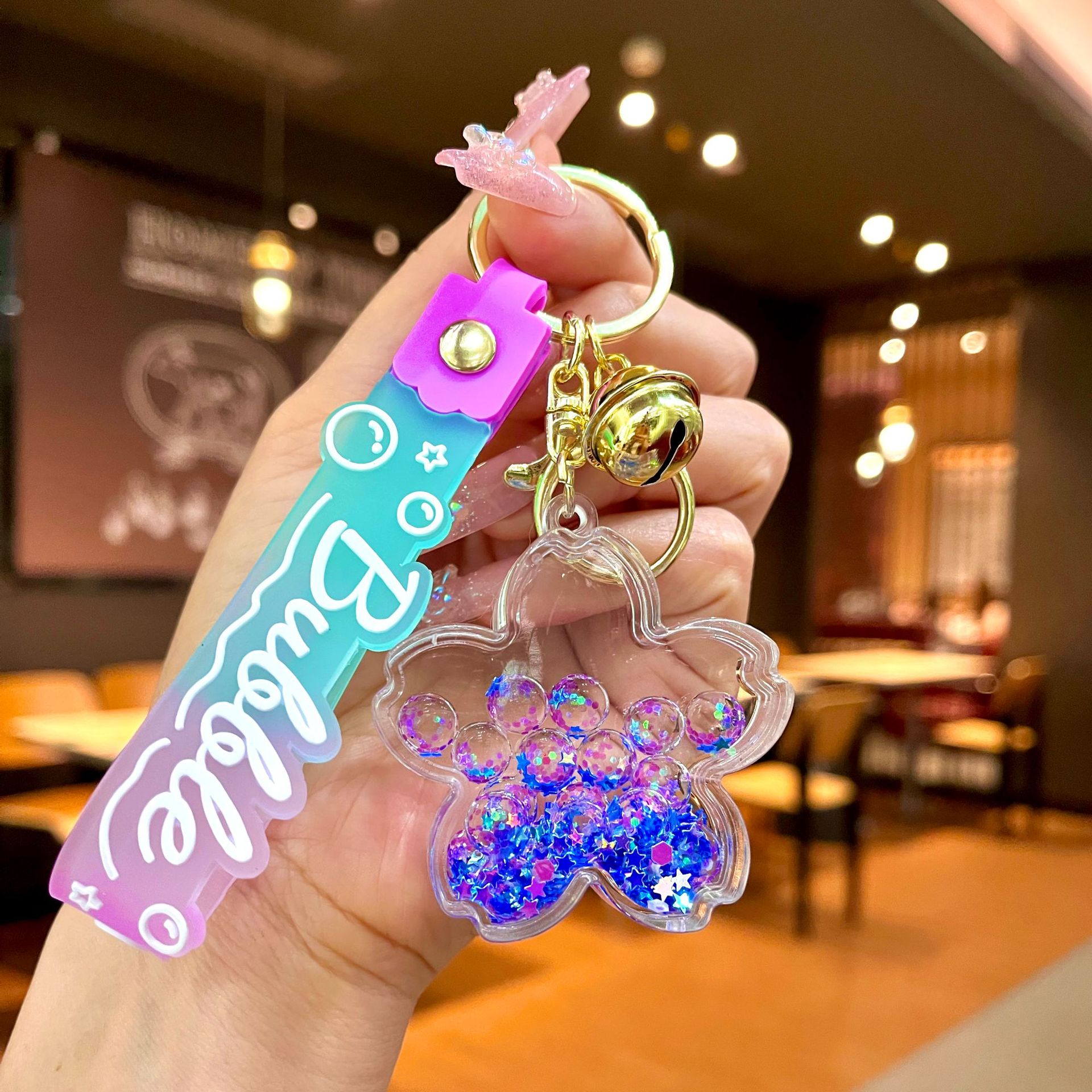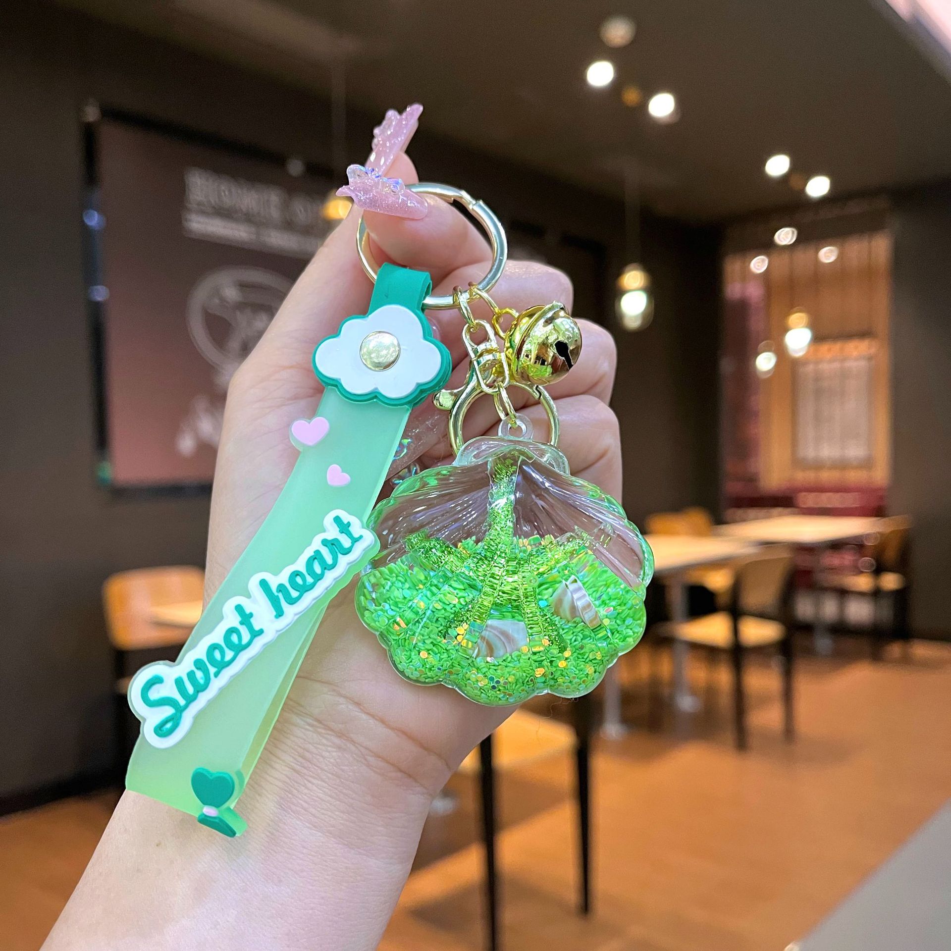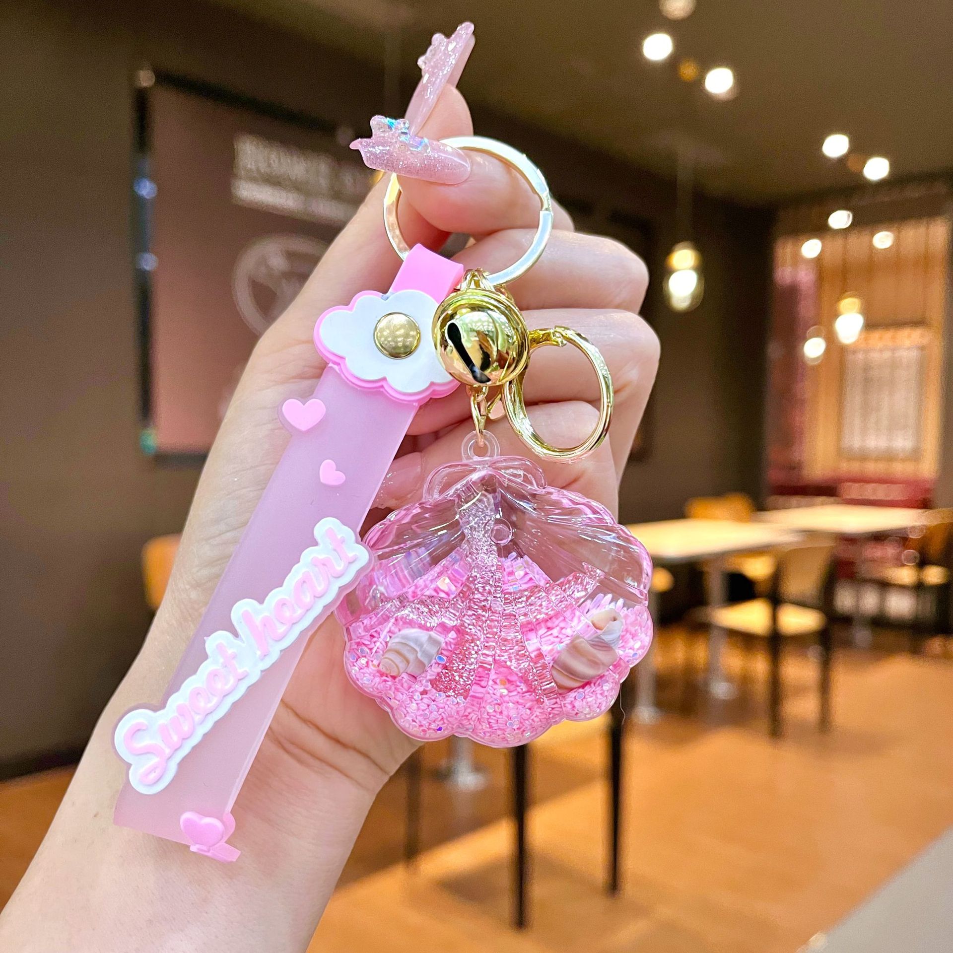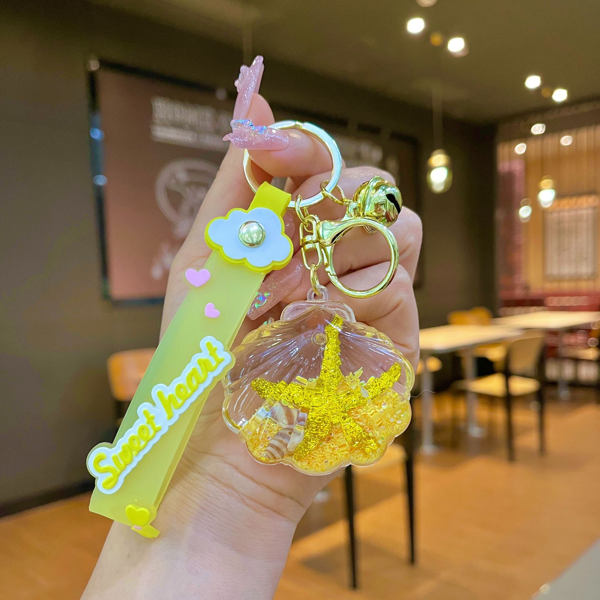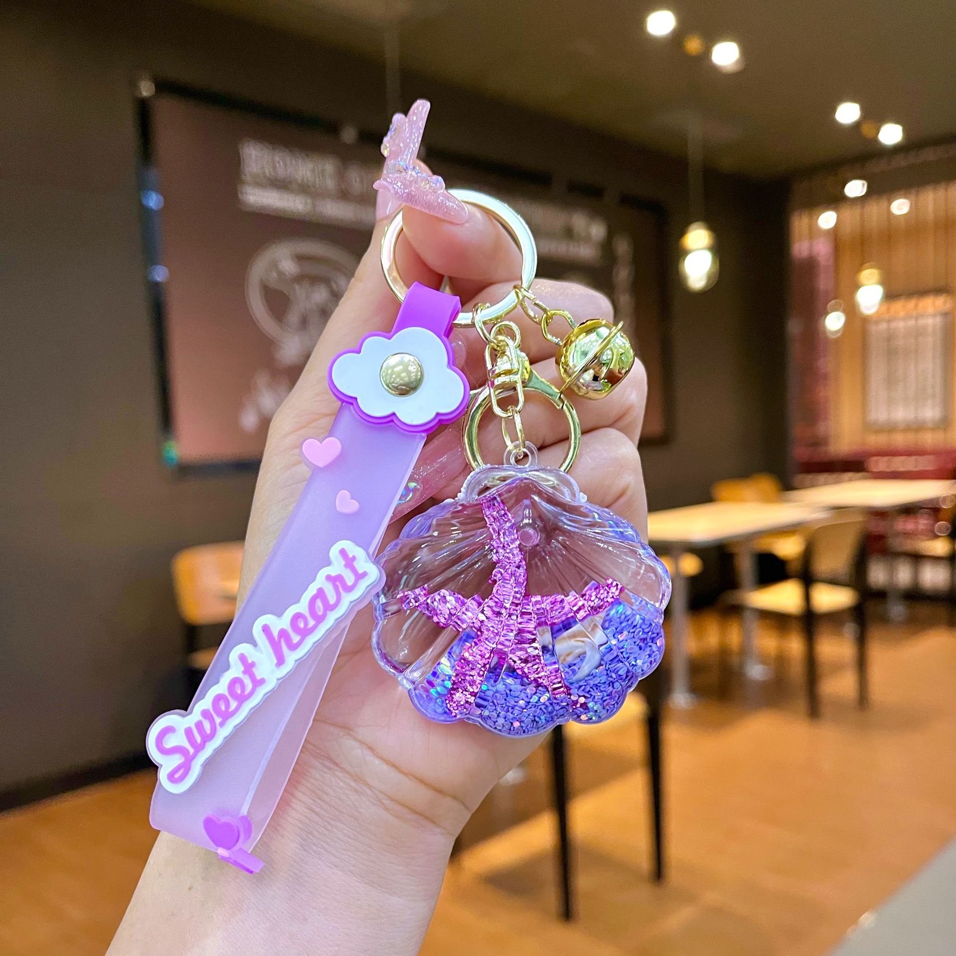 창의적인 불가사리 꽃 오일 키체인, 모래시계 병 키링, 가방 장식품, 소라 껍질 키체인스토어 가기