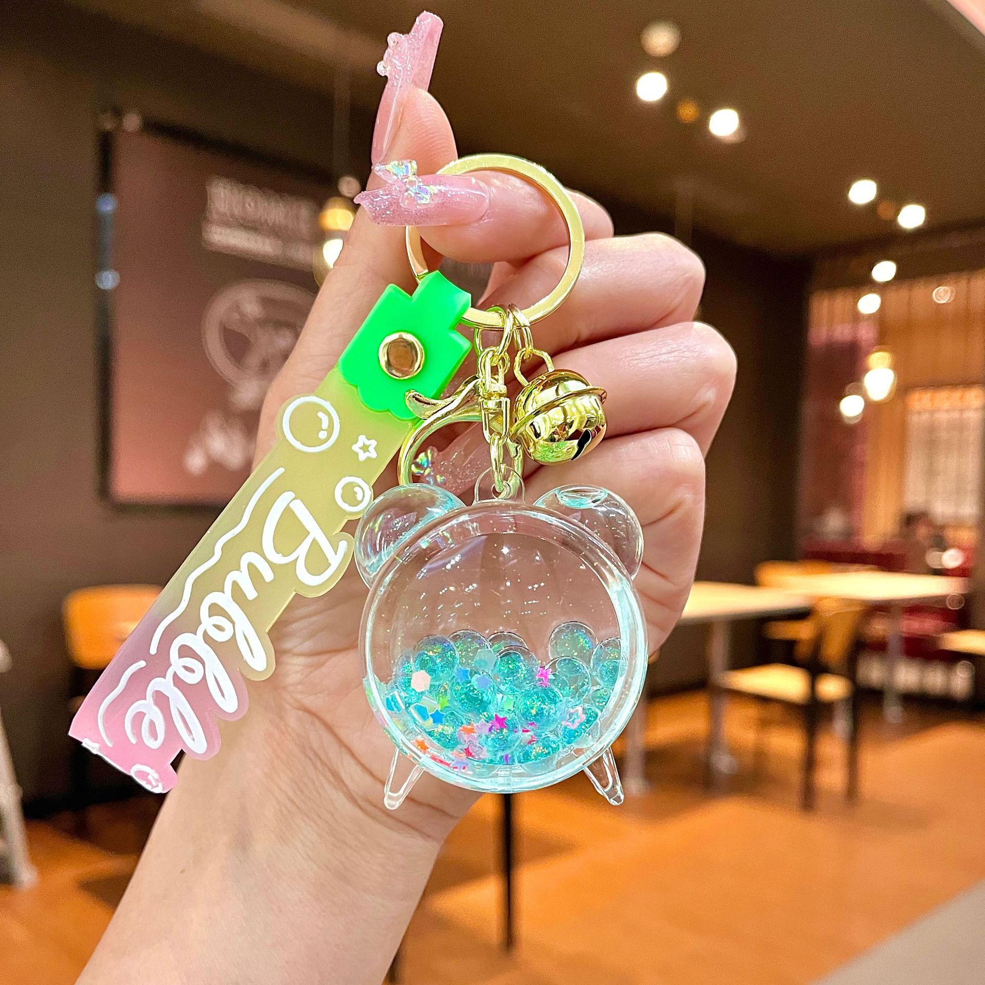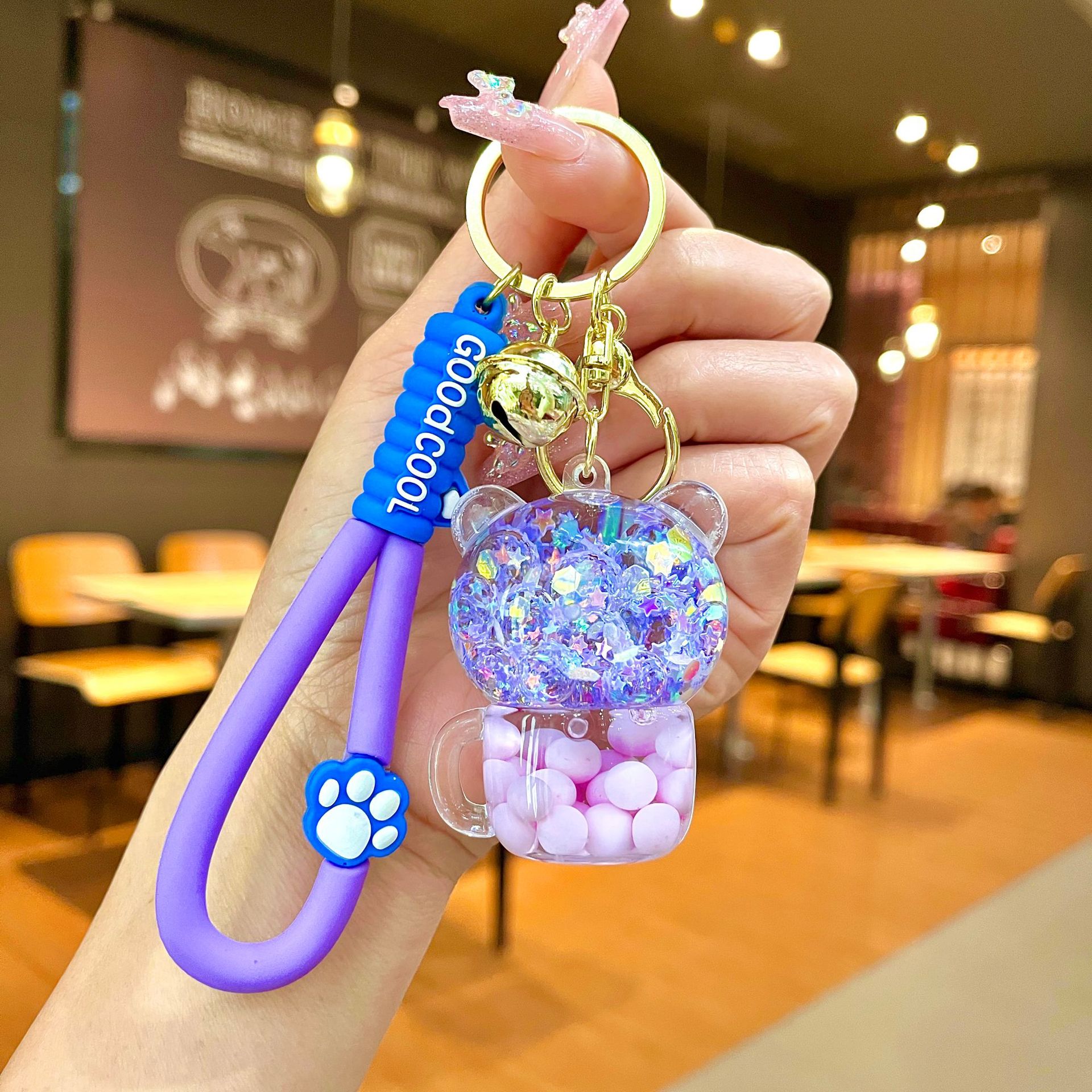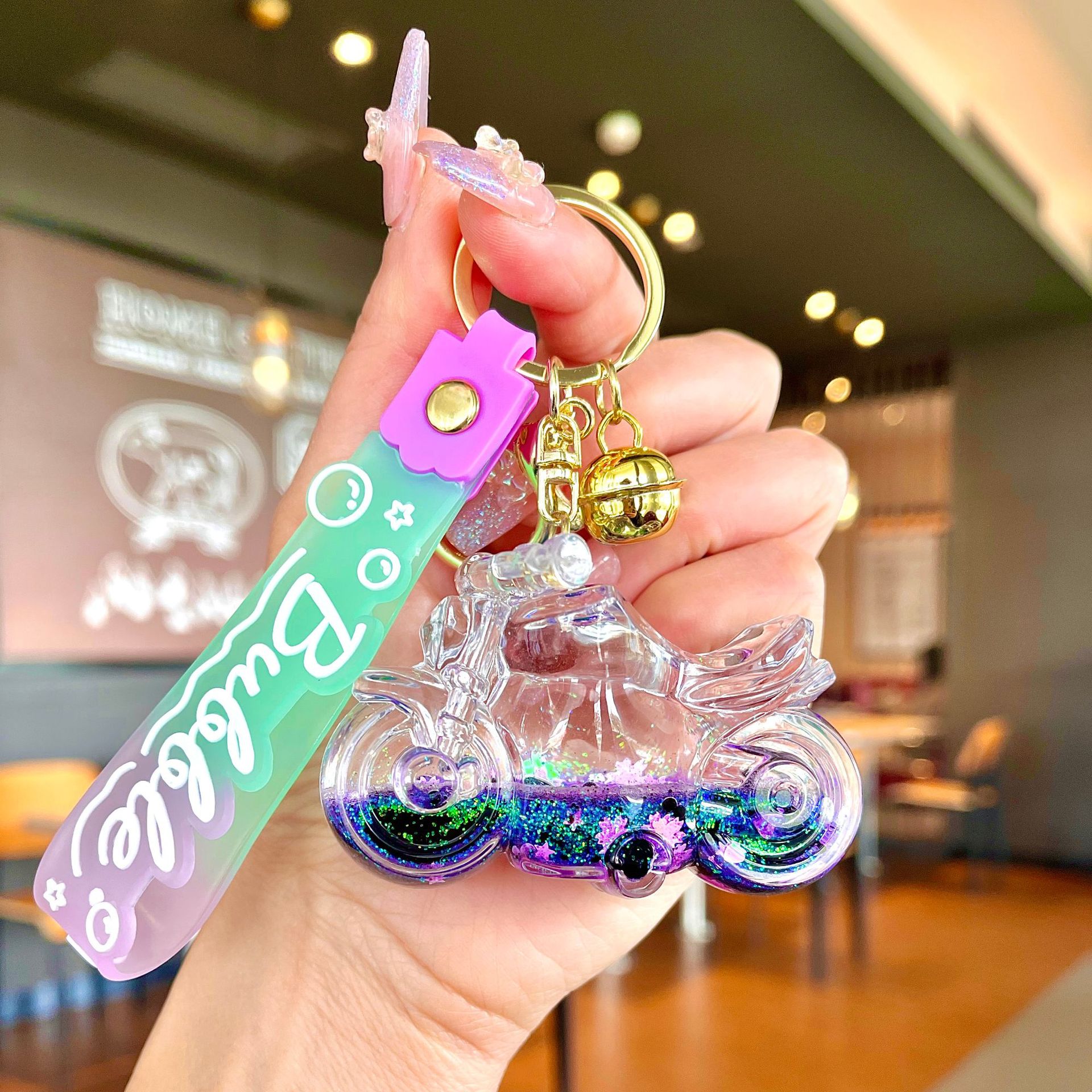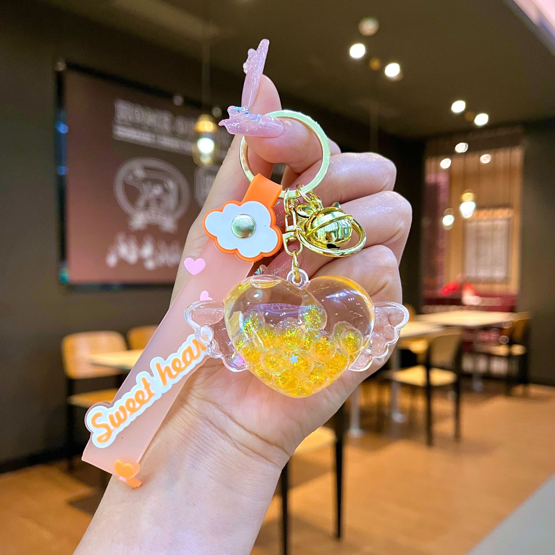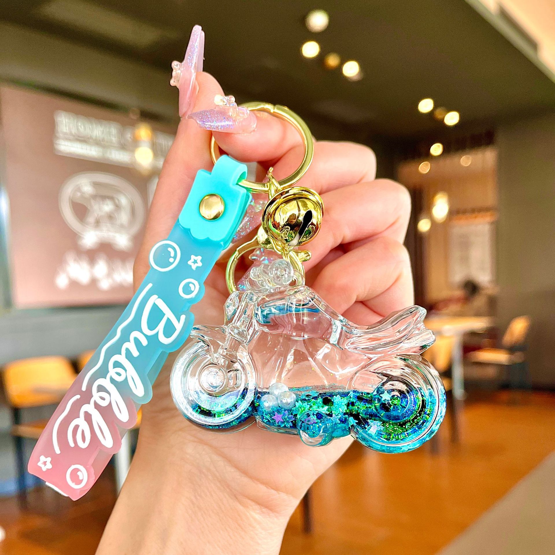 창의적인 불가사리 꽃 오일 키체인, 모래시계 병 키링, 가방 장식품, 소라 껍질 키체인스토어 가기