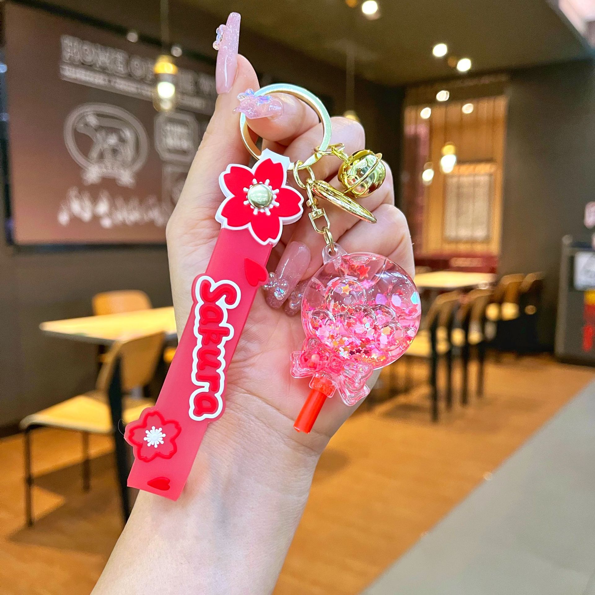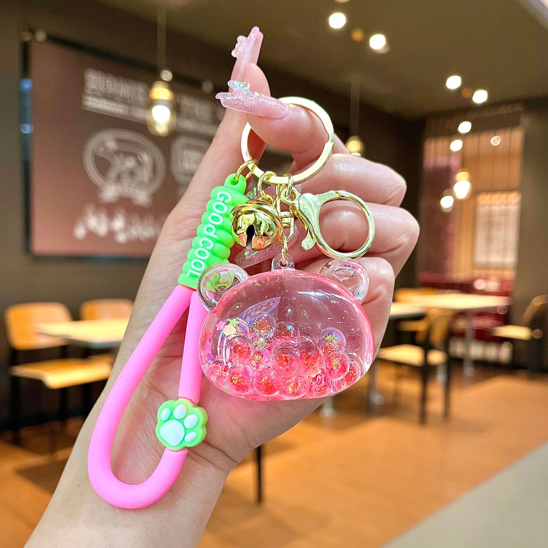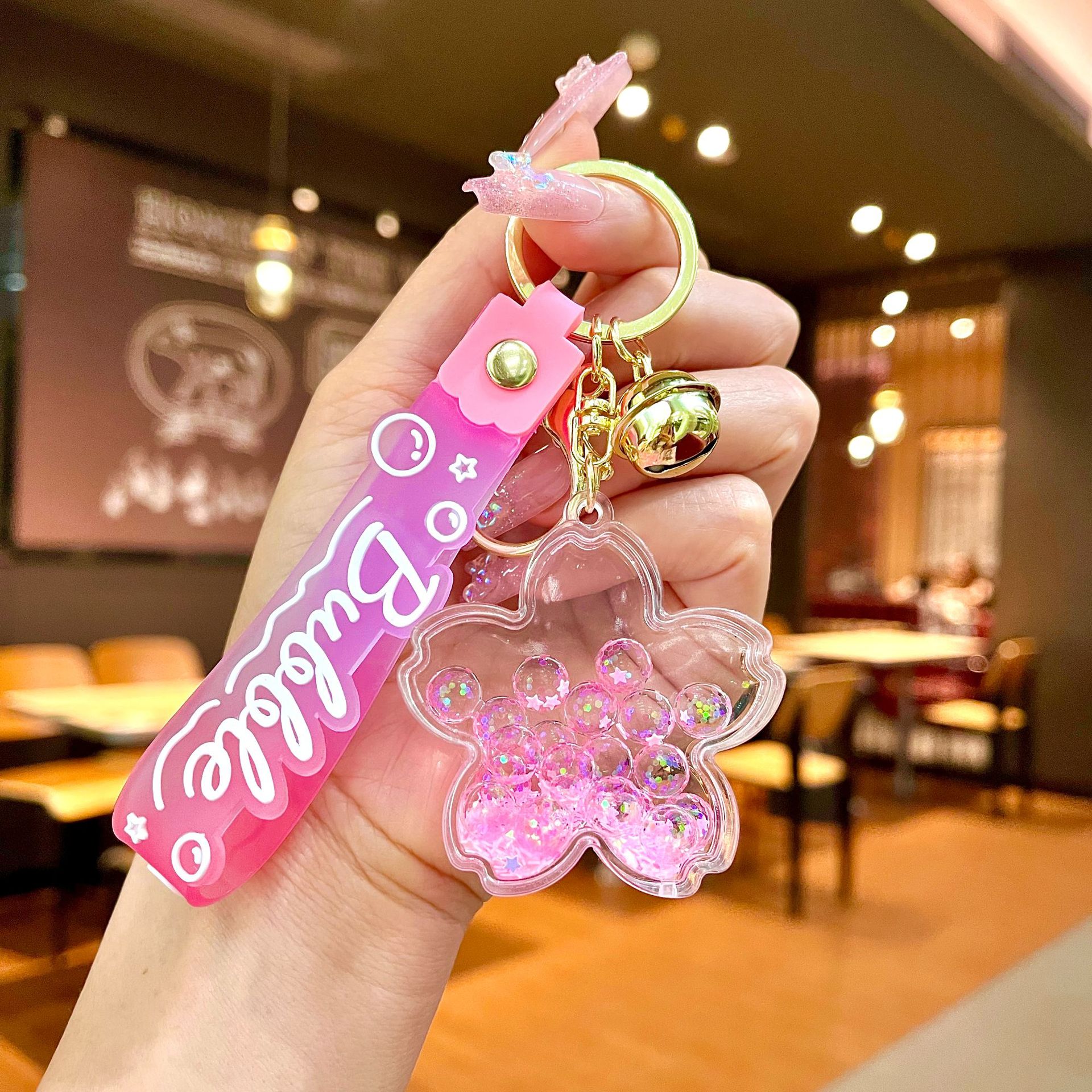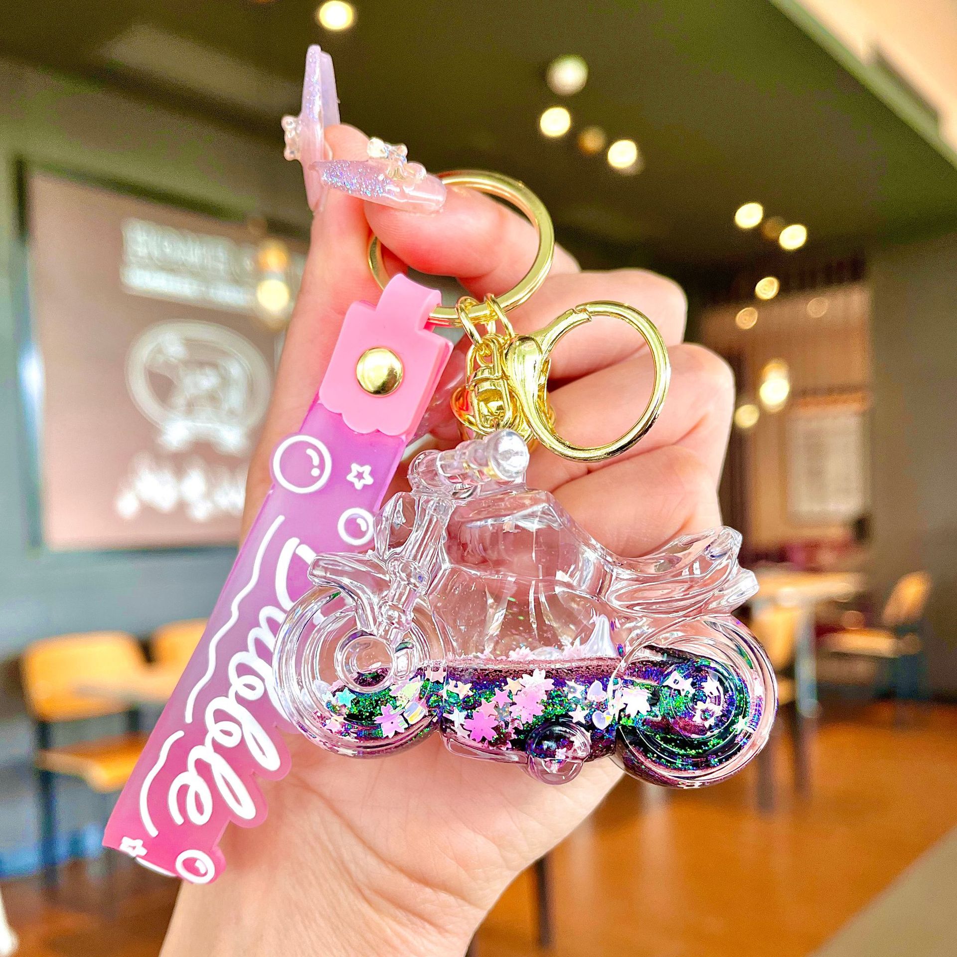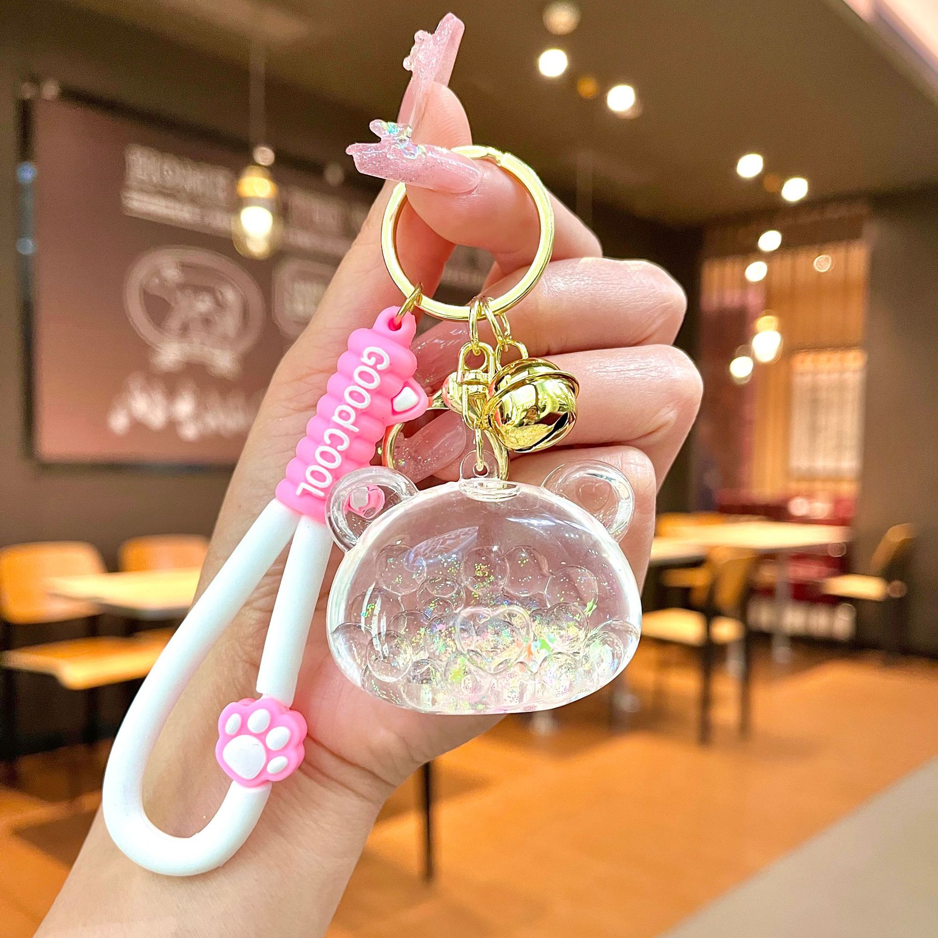 창의적인 불가사리 꽃 오일 키체인, 모래시계 병 키링, 가방 장식품, 소라 껍질 키체인스토어 가기